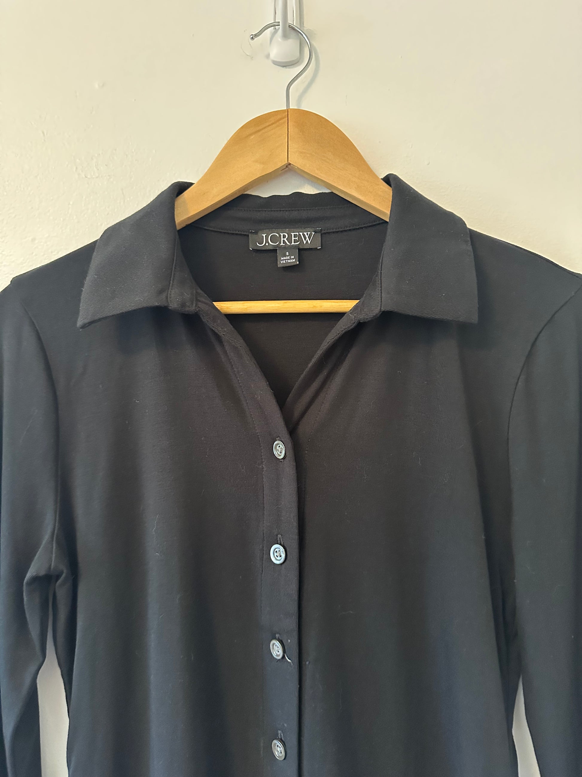 J. Crew Black Button-Up Long Sleeve Collared Top in Refined Rib | Size Small