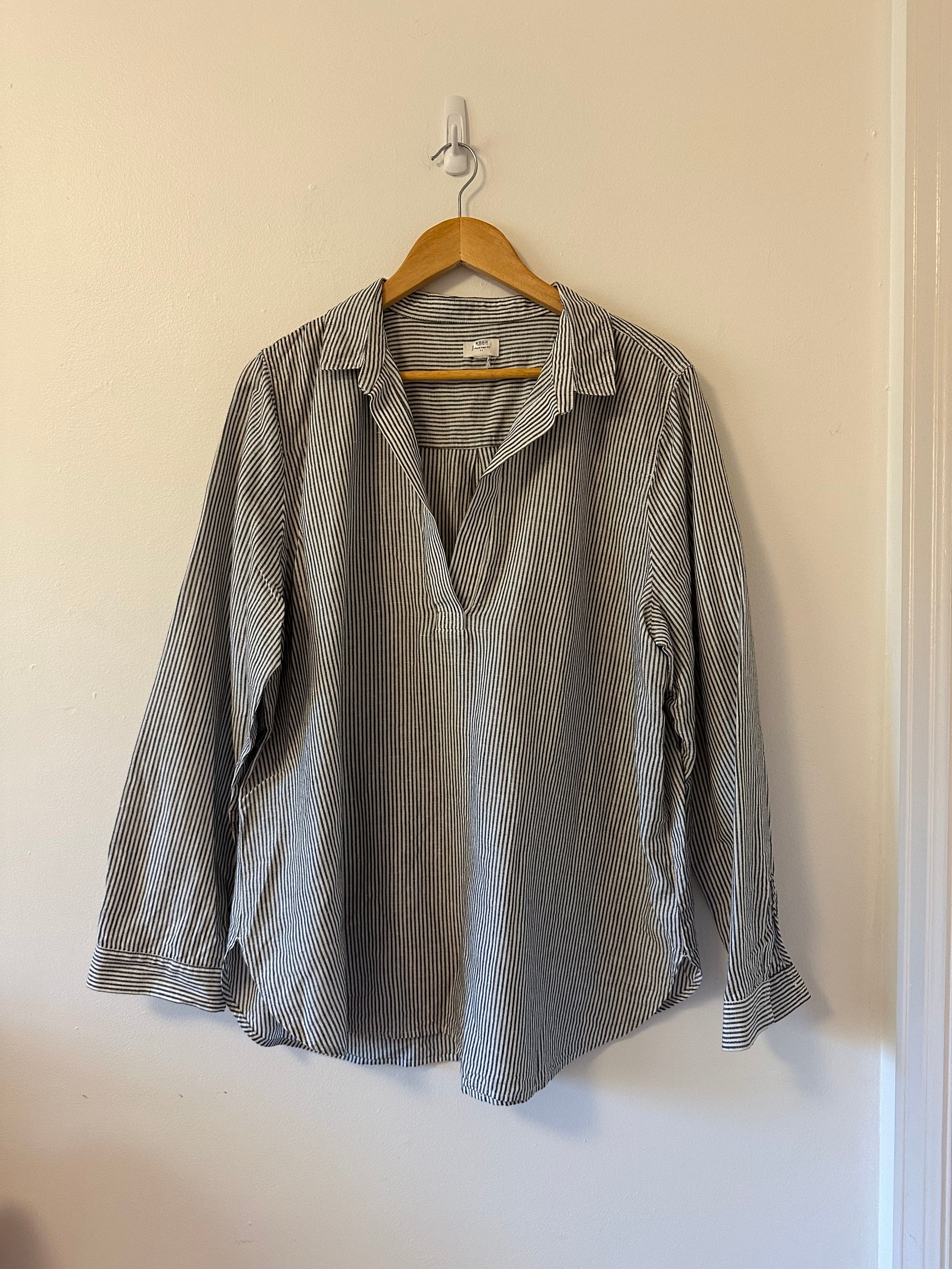 J. Crew Navy and White Striped Cotton Linen Popover Top | Size XL
