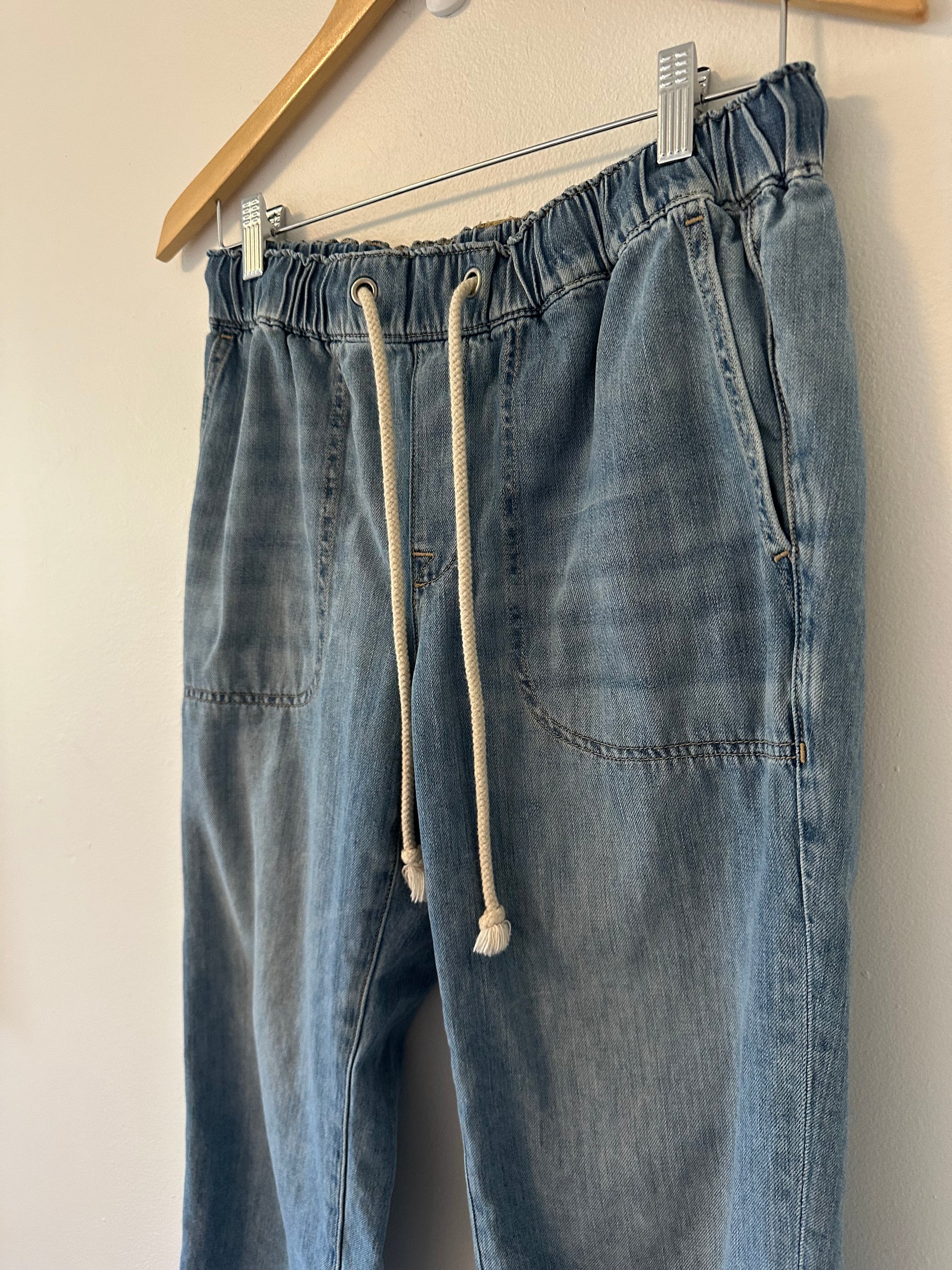 J. Crew Relaxed Fit Light Blue Jeans with Elastic Drawstring Waist | Size 26