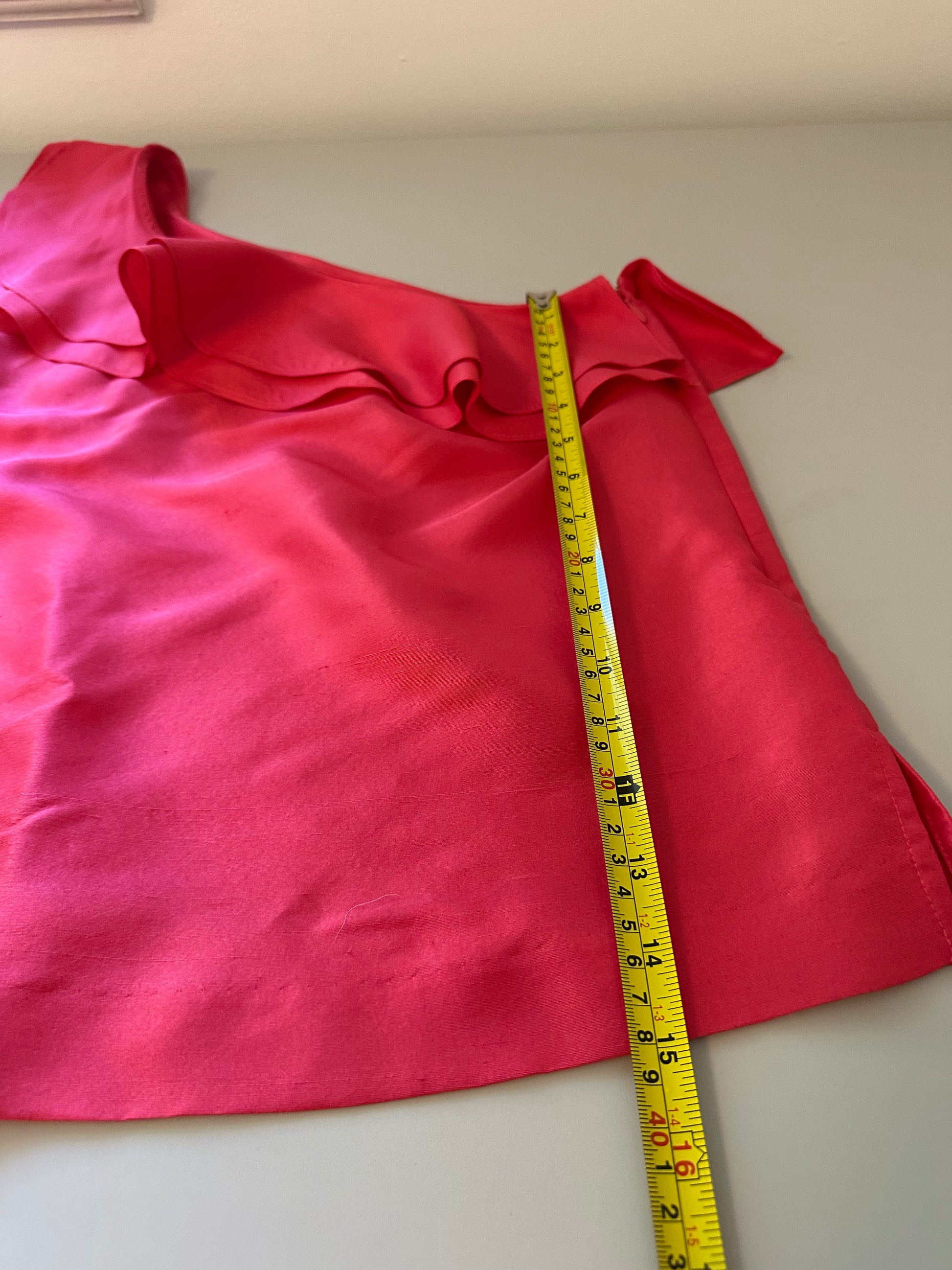 J. Crew Silk Shantung One-Shoulder Ruffle Blouse in Brilliant Poppy