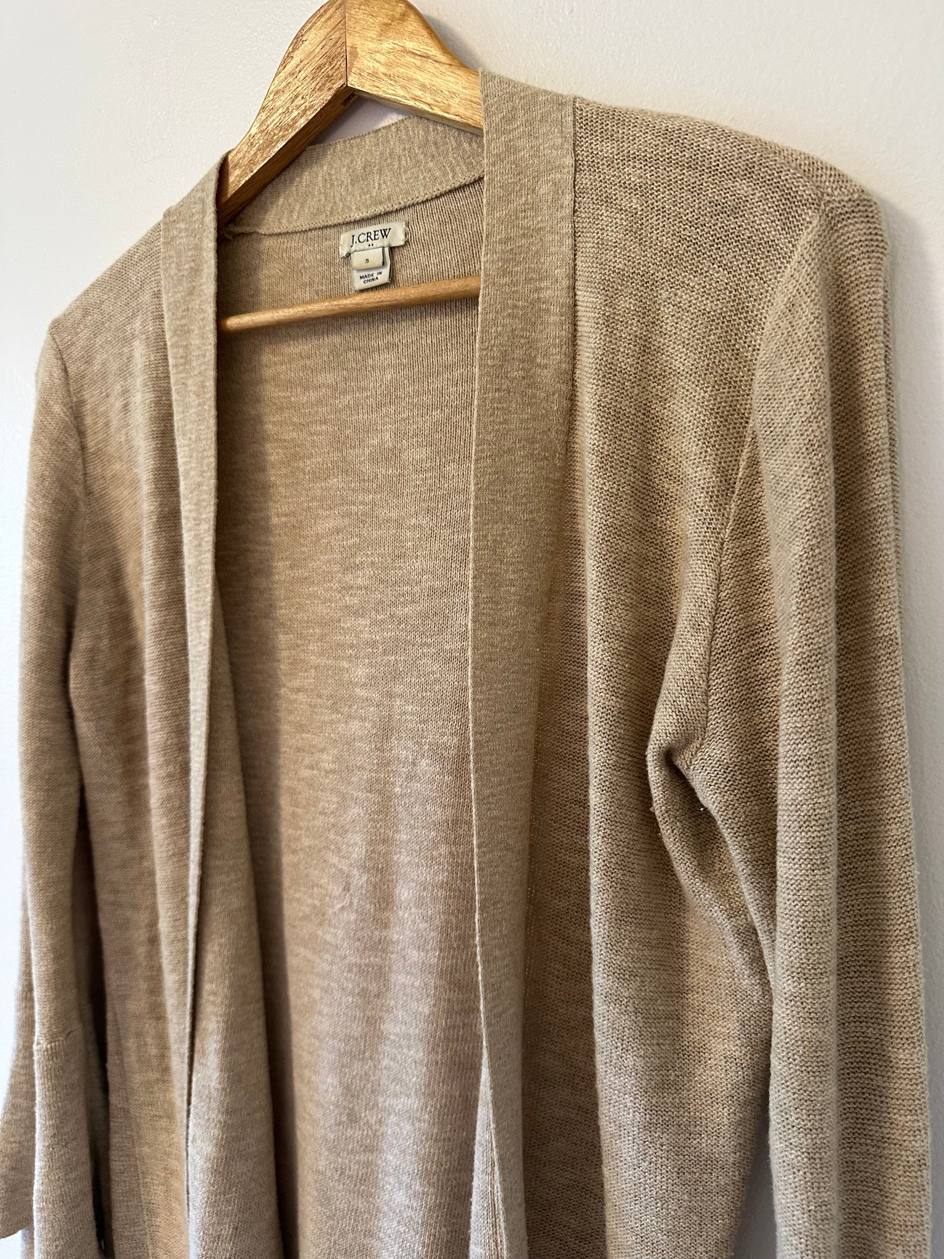 J. Crew Tiered Ruffle Sleeve Tan Open Cardigan Sweater | Size Small