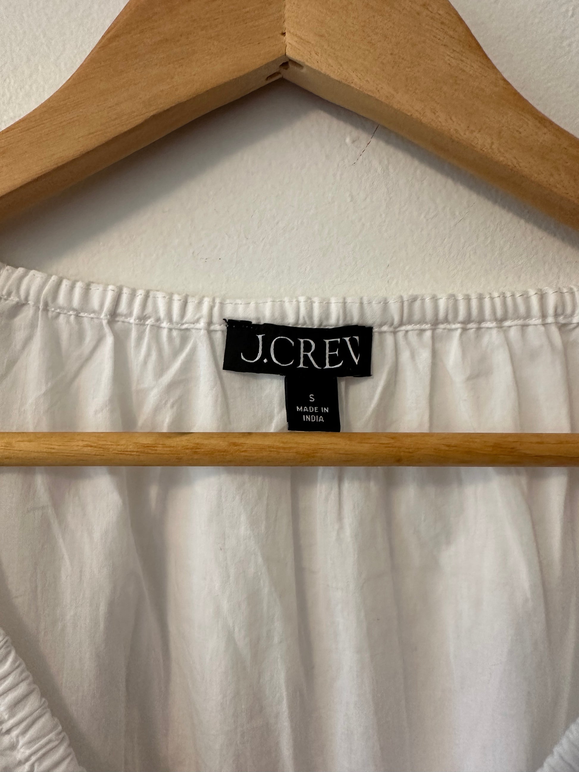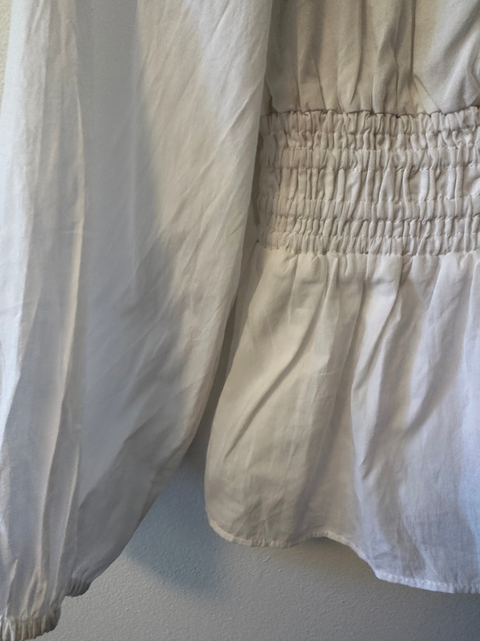 J. Crew V-Neck Cotton Blouse with Smocked Waist in White | Size Small