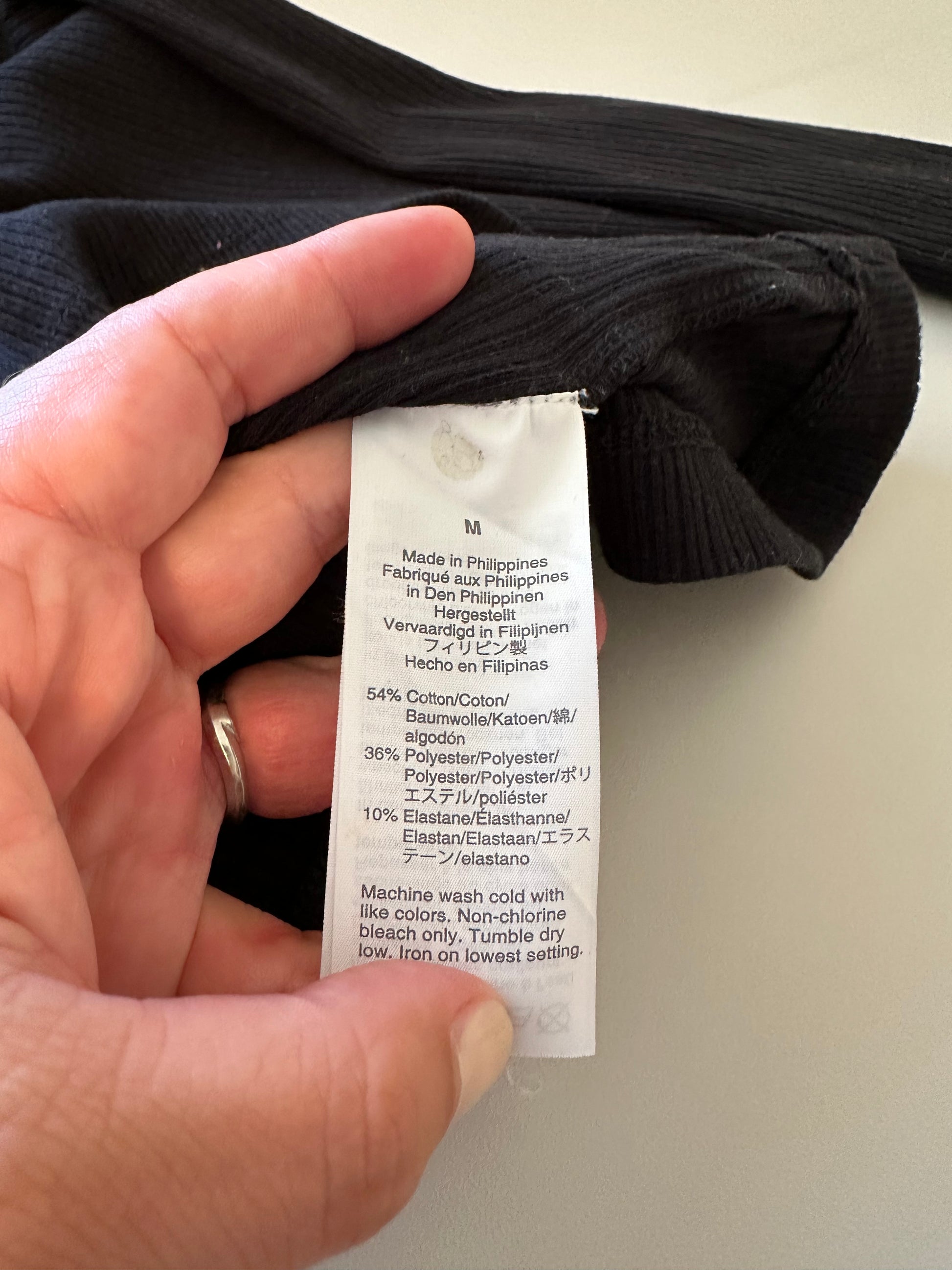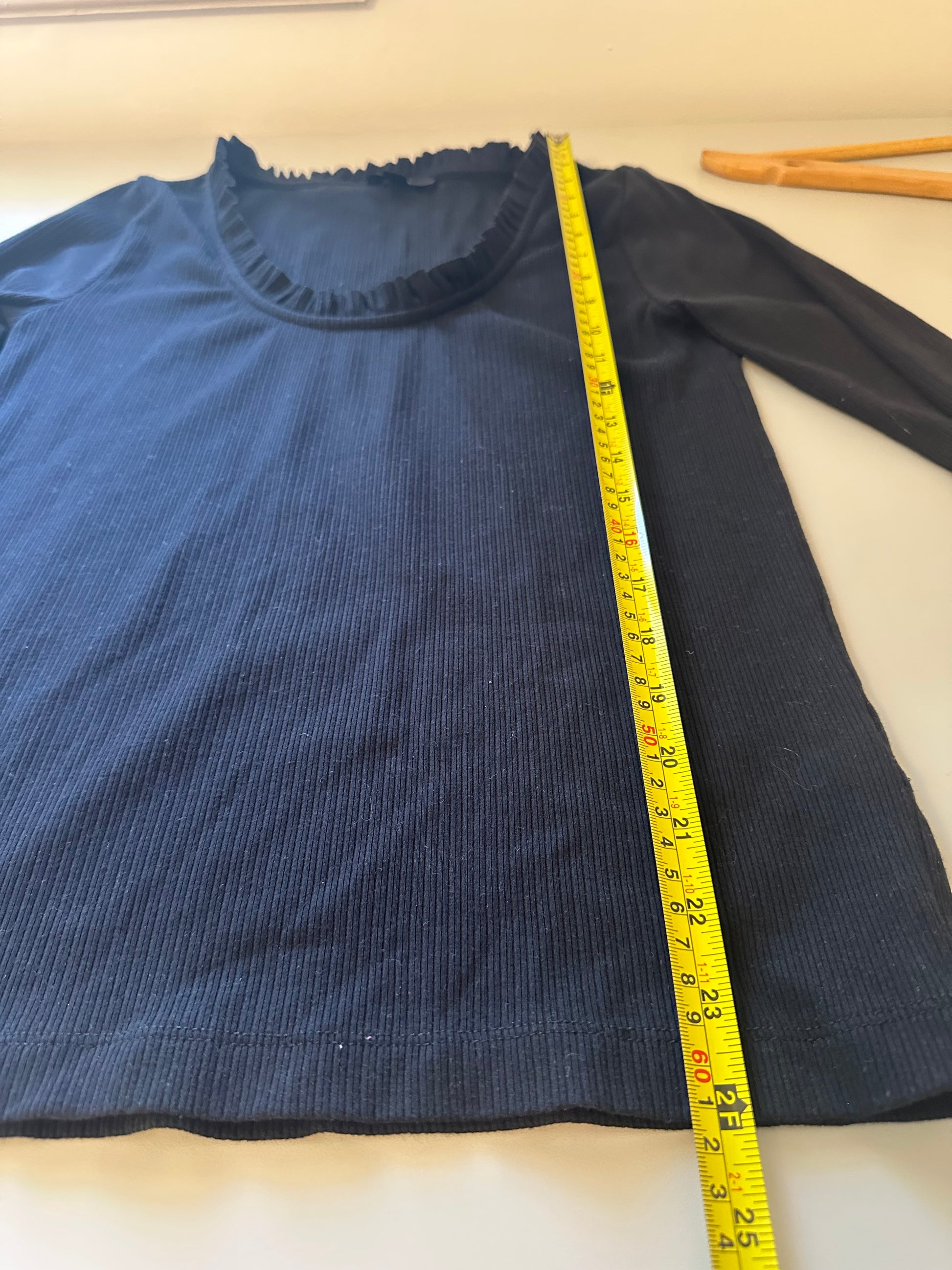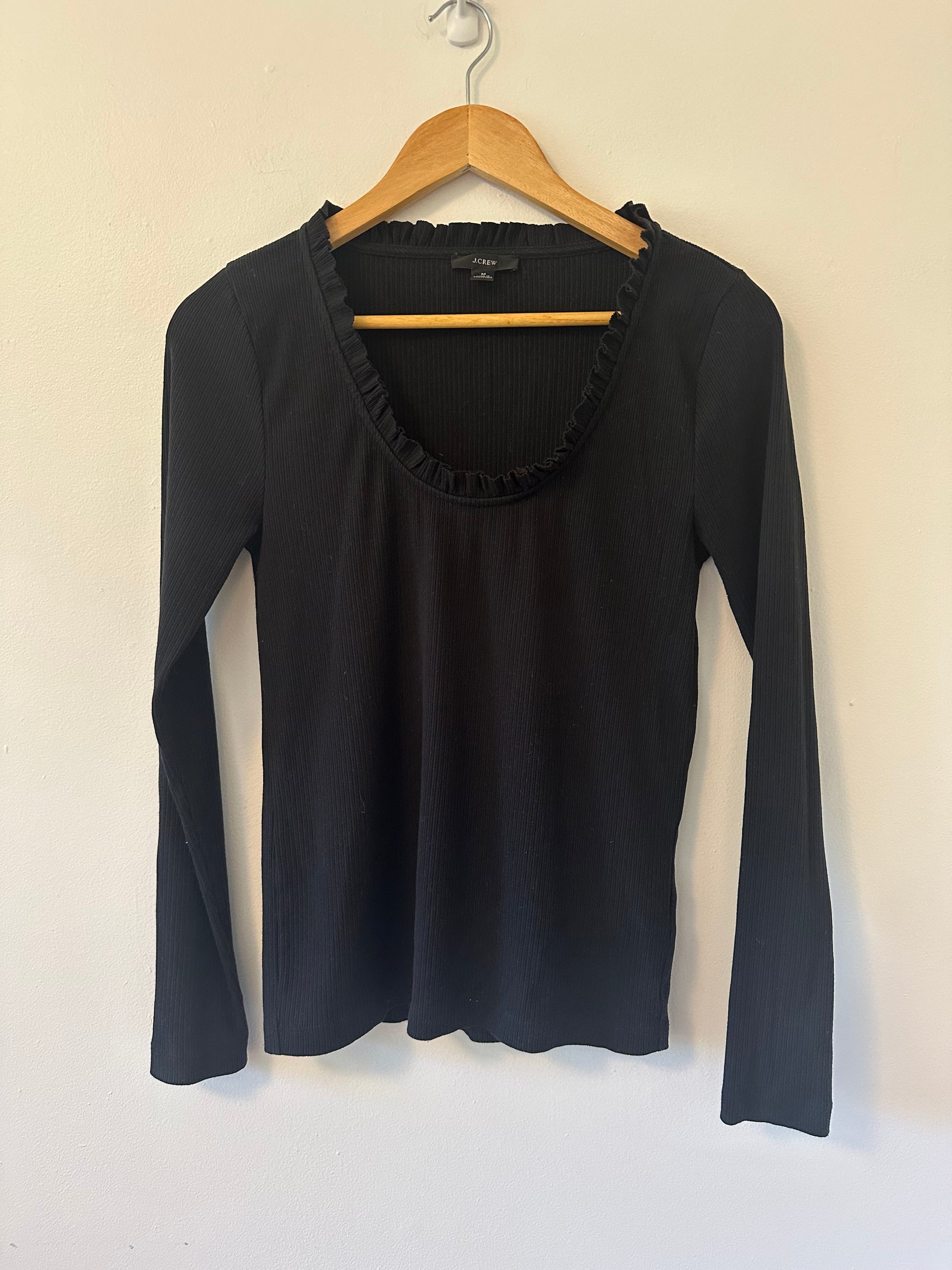 J. Crew - Vintage Ribbed Black Ruffled Long Sleeve Scoop Neck T-Shirt | Size Medium