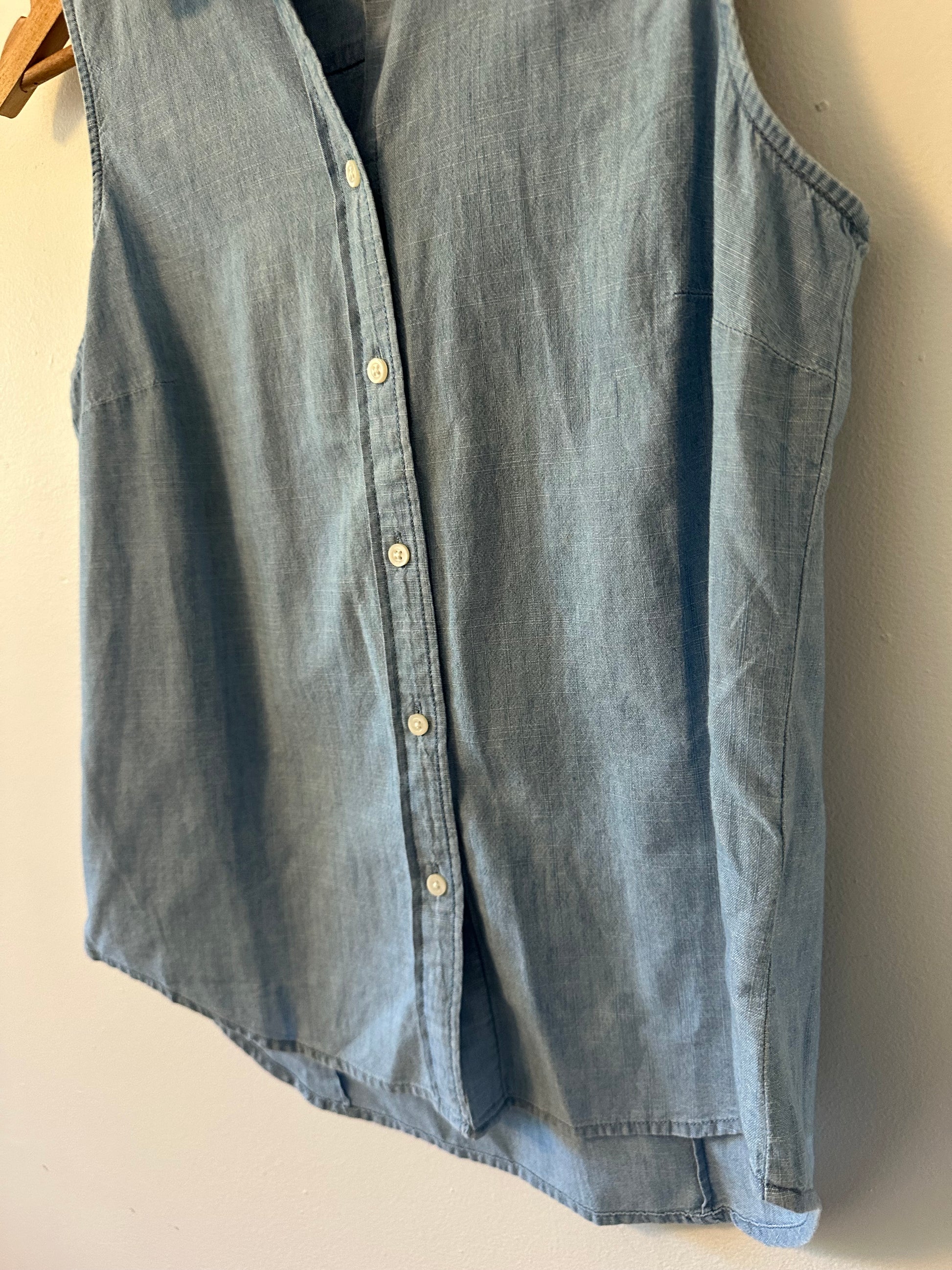 J. Crew Women's Blue Sleeveless Button Down Cotton Shirt | Size Small