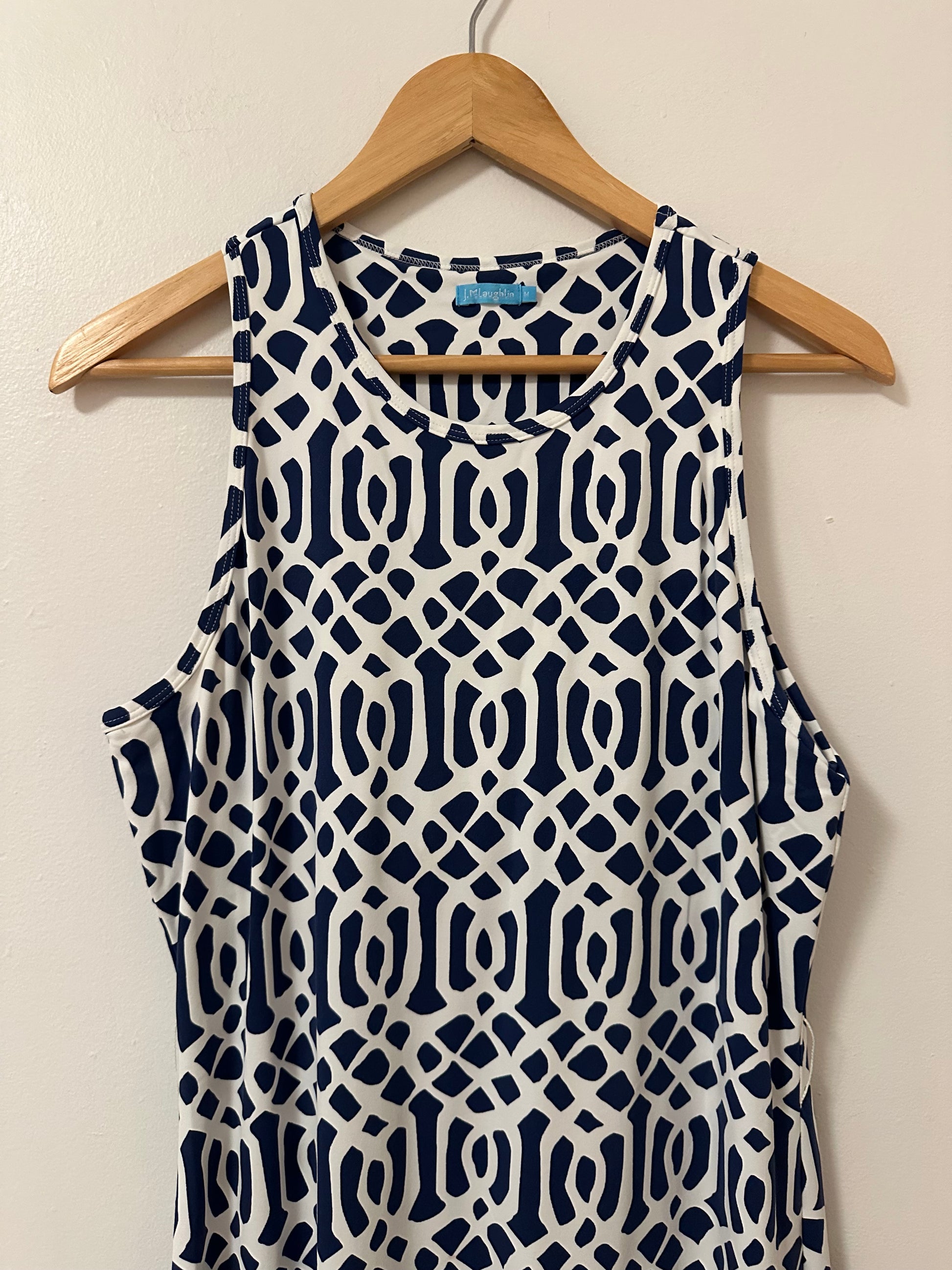 J. McLaughlin Blue and White Patterned Maxi Dress | Size Medium