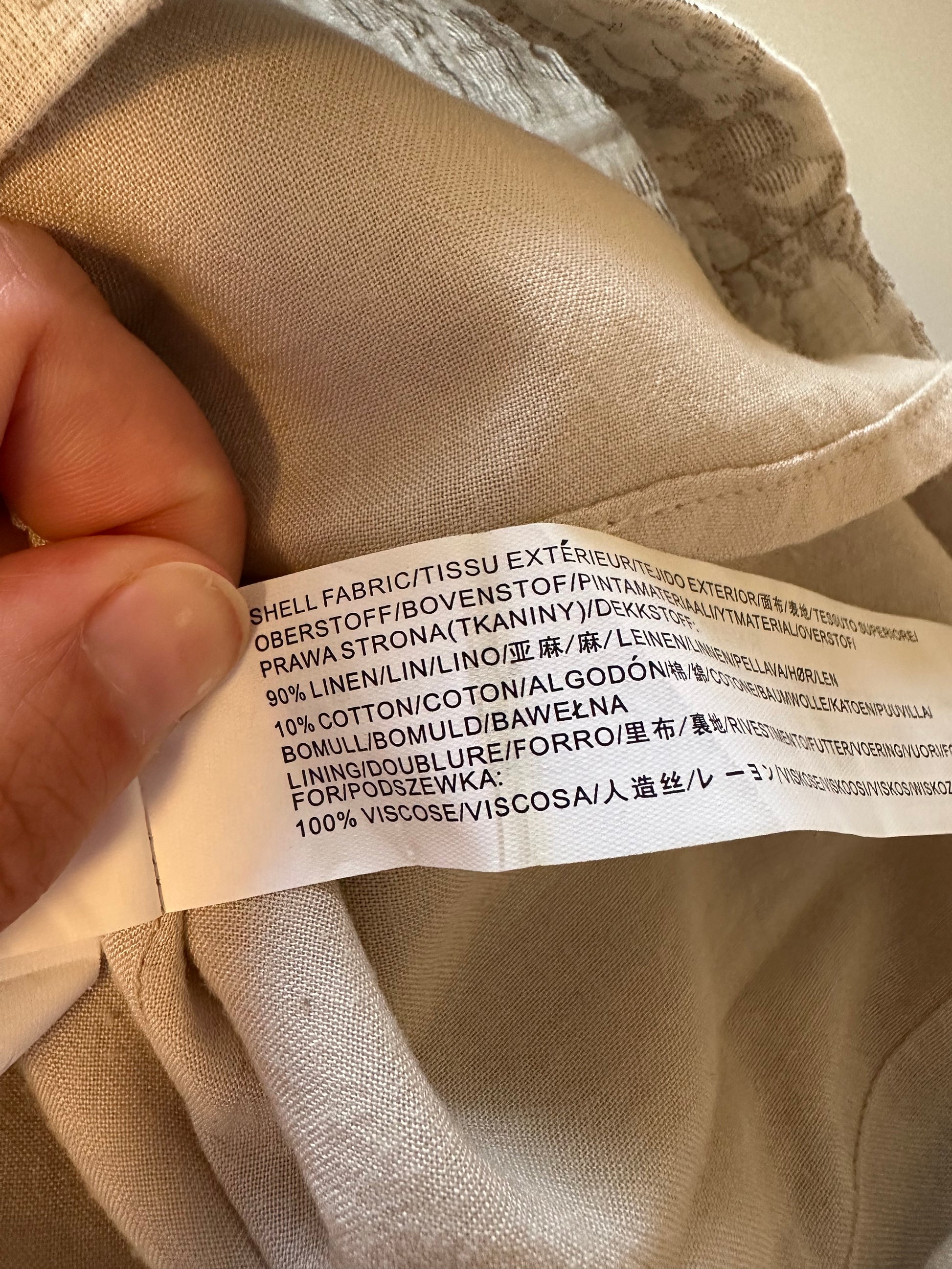 J.O.A. Cream and Beige Floral Linen and Cotton Mini Dress | Size Small