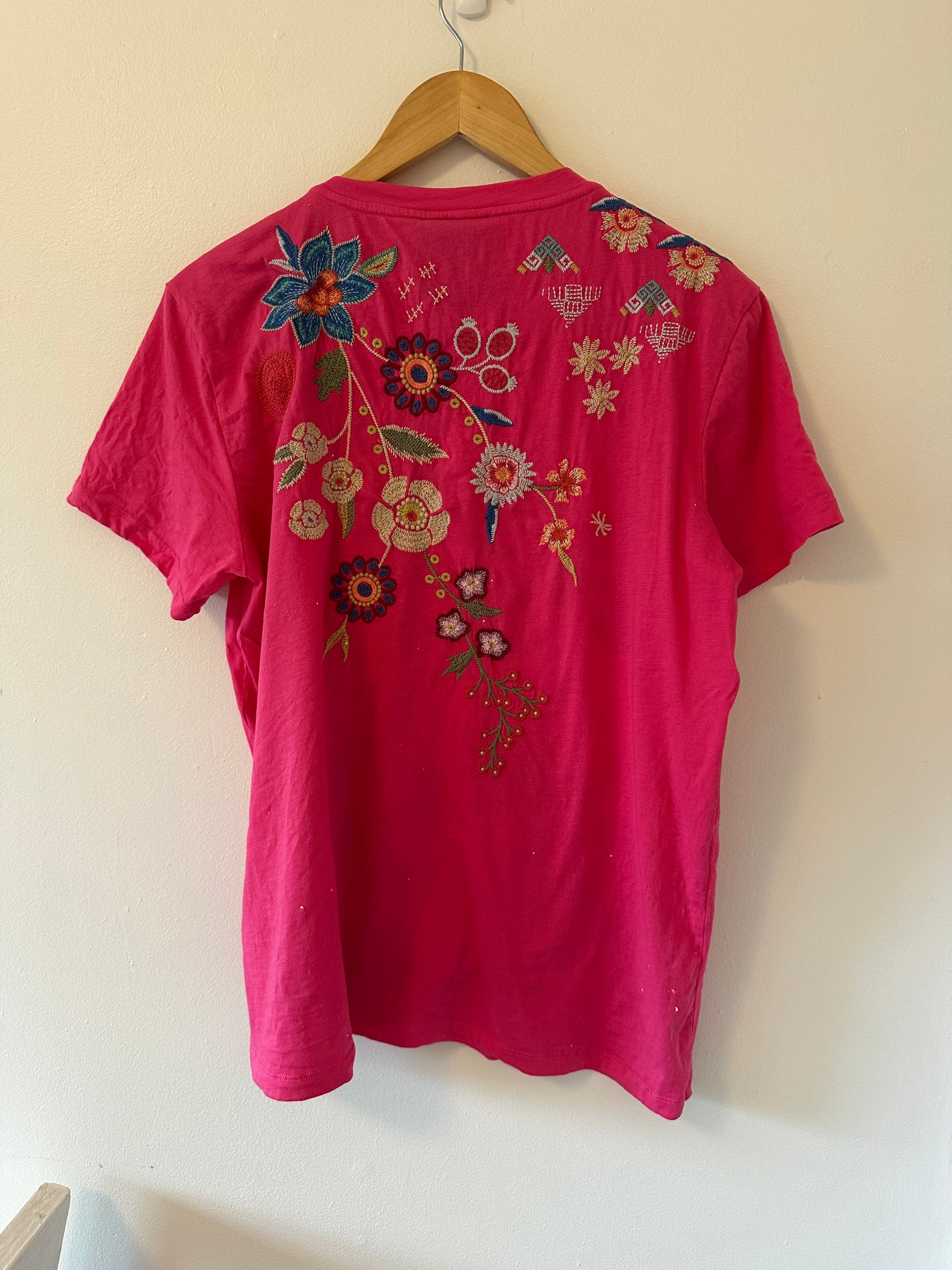 Johnny Was Griffin Easy Fit Tee in Flamingo Pink - Medium