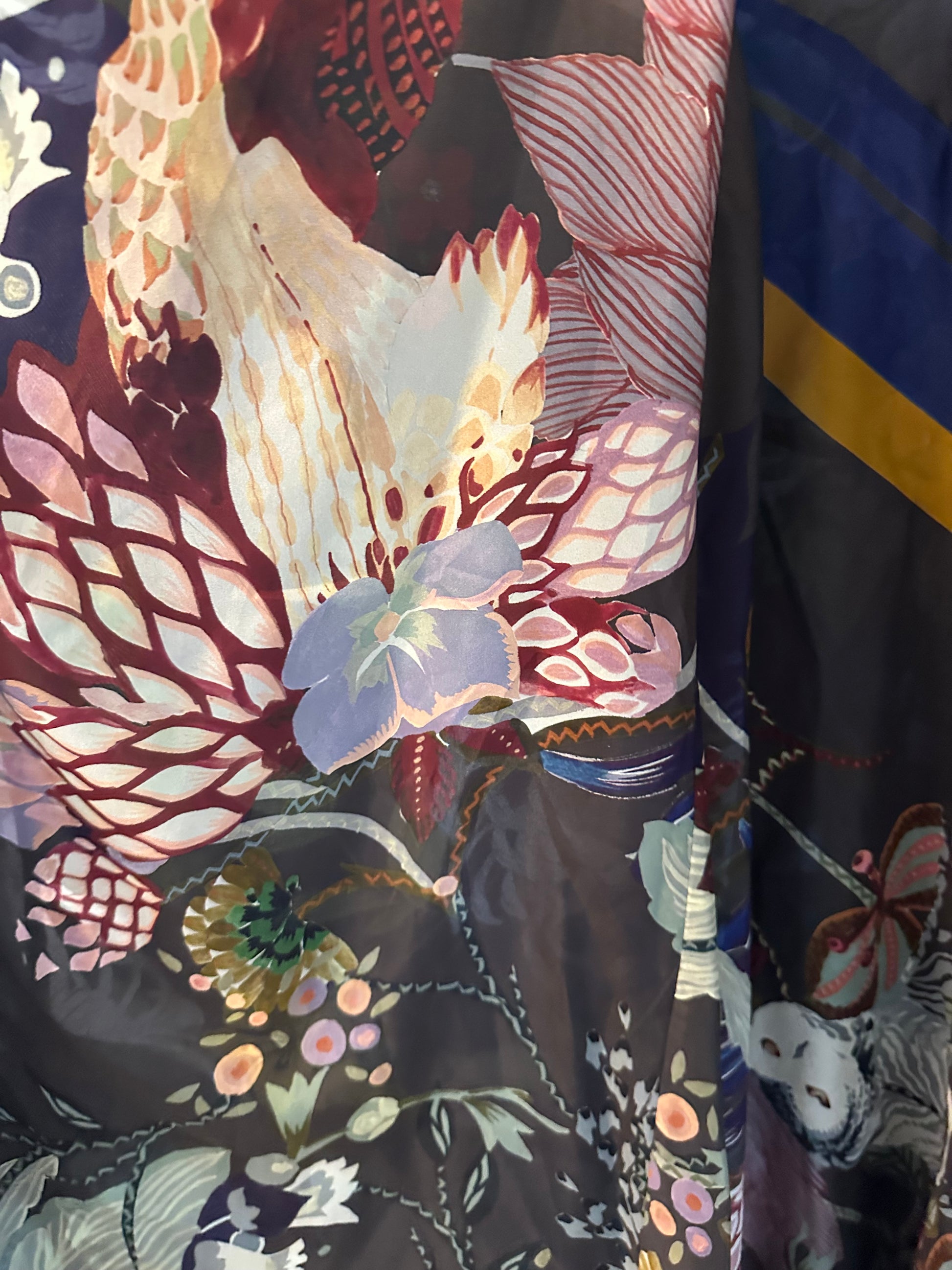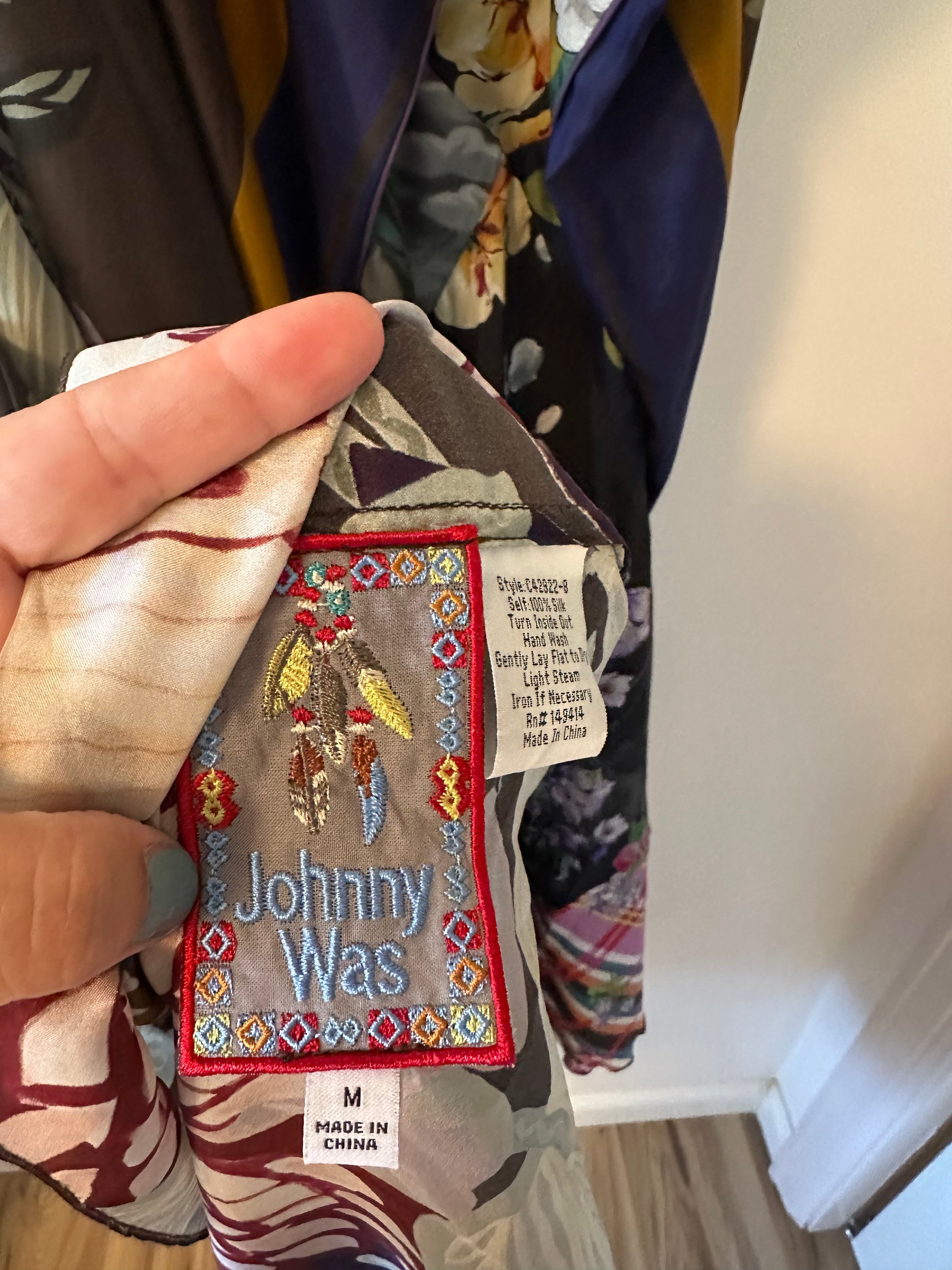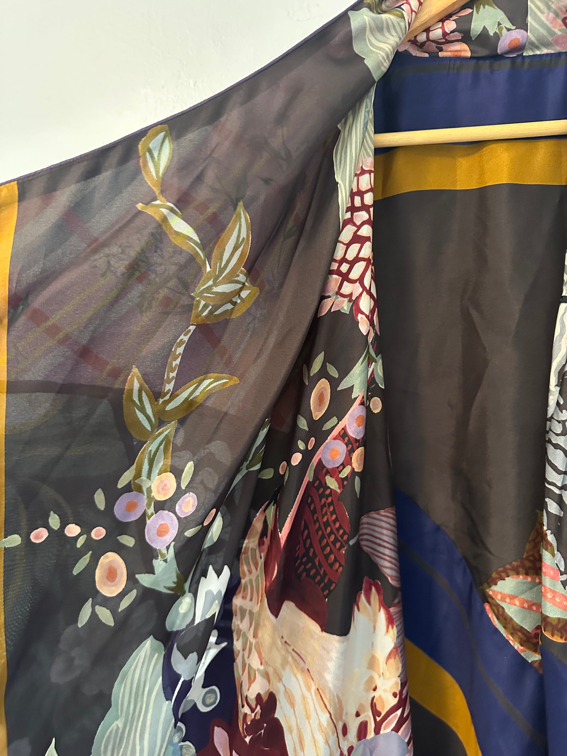 Johnny Was Multicolor Floral Silk Owl Gale Kimono Long Cardigan | Size Medium