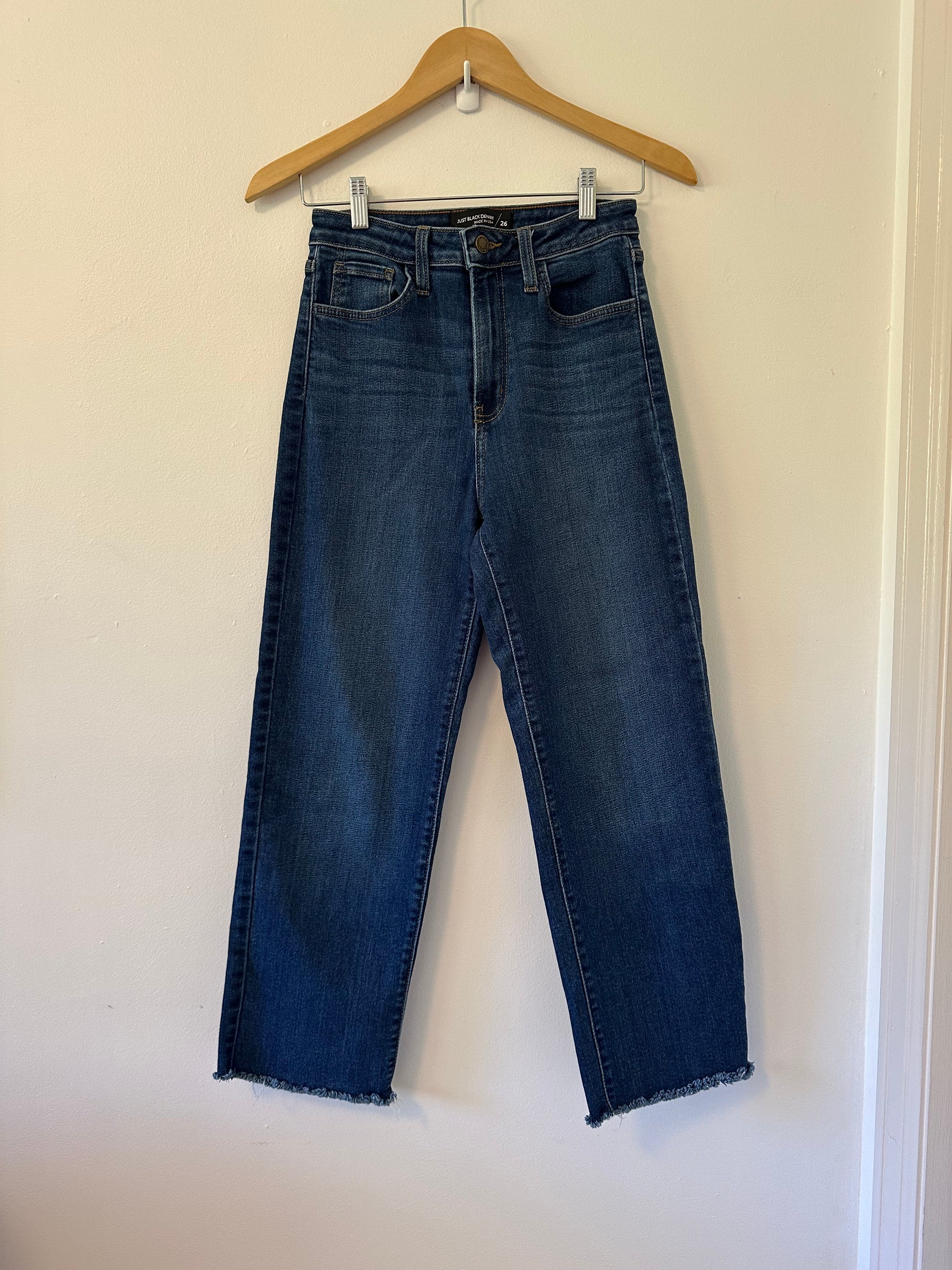 Just Black Vintage Straight Leg Raw Hem Jeans in Deep Blue | Size 26