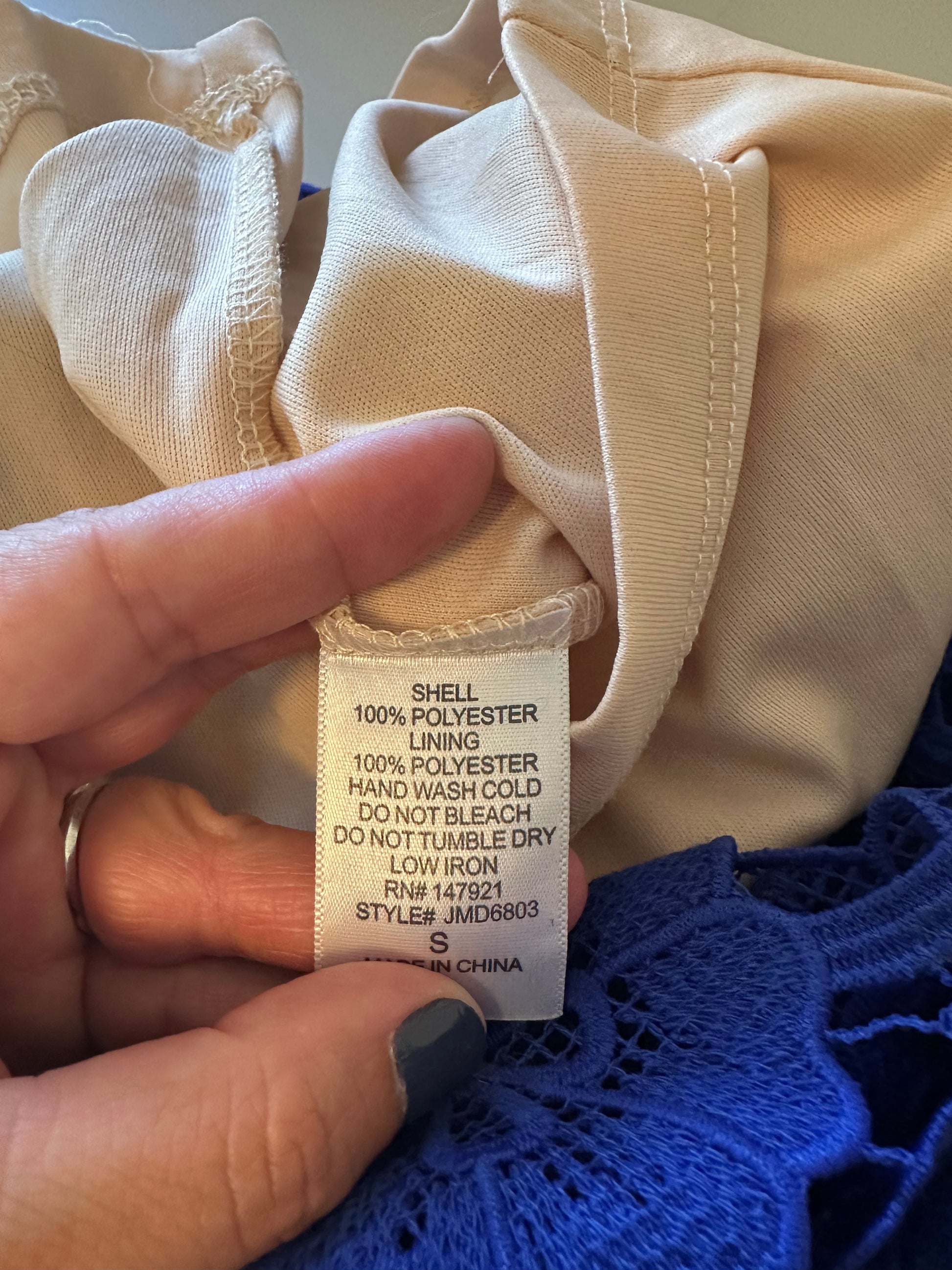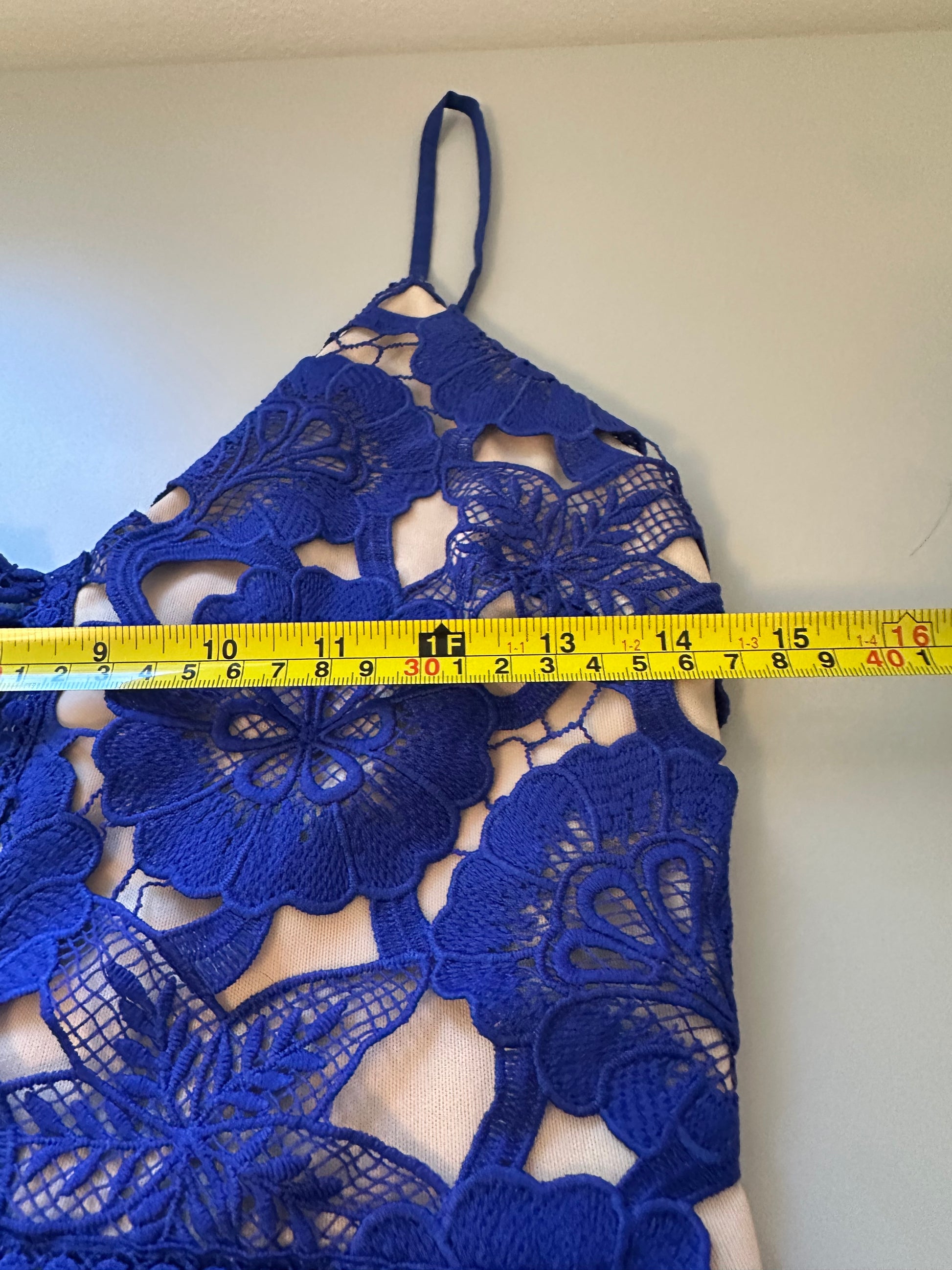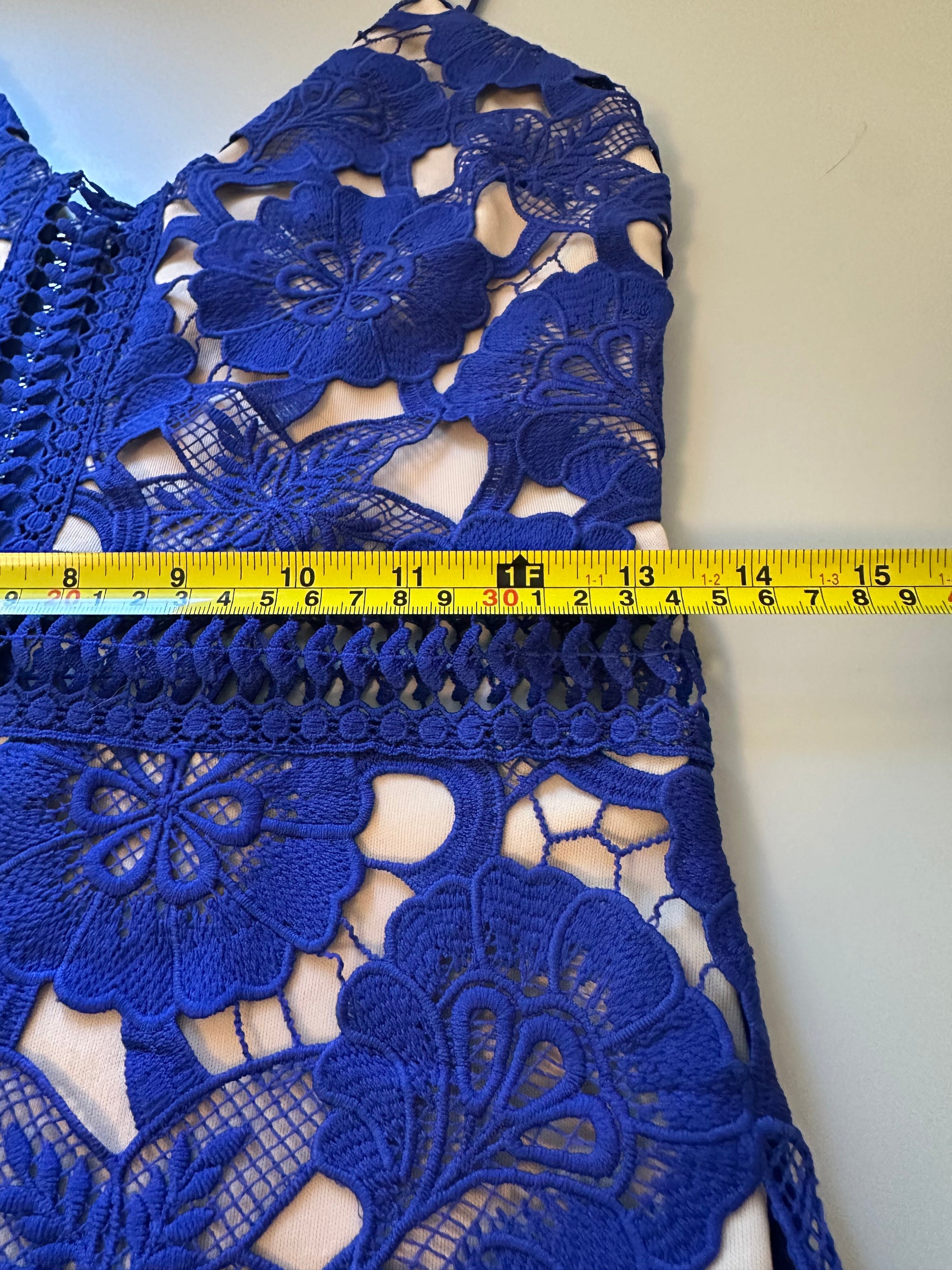 Just Me Mermaid Lace Crochet Midi Dress in Blue | Size Small