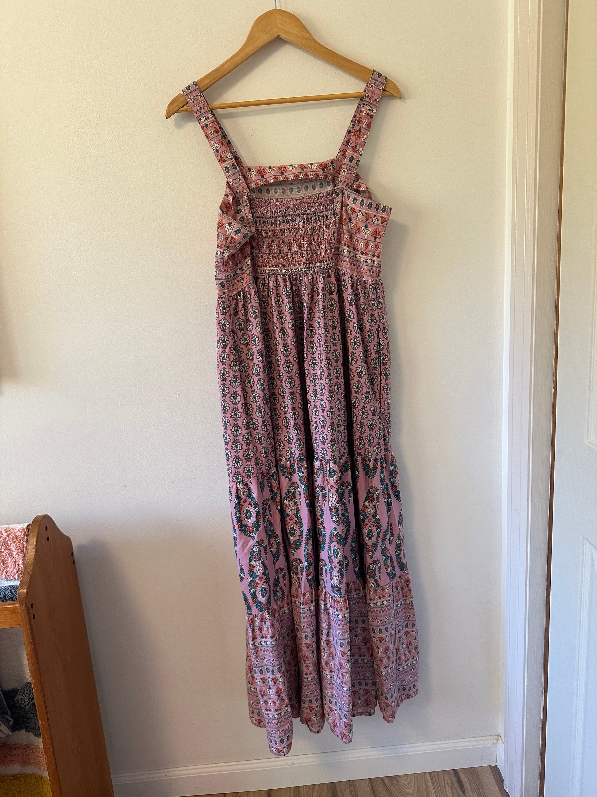 Knox Rose Boho Smocked Maxi Dress in Pink Print | Size Medium