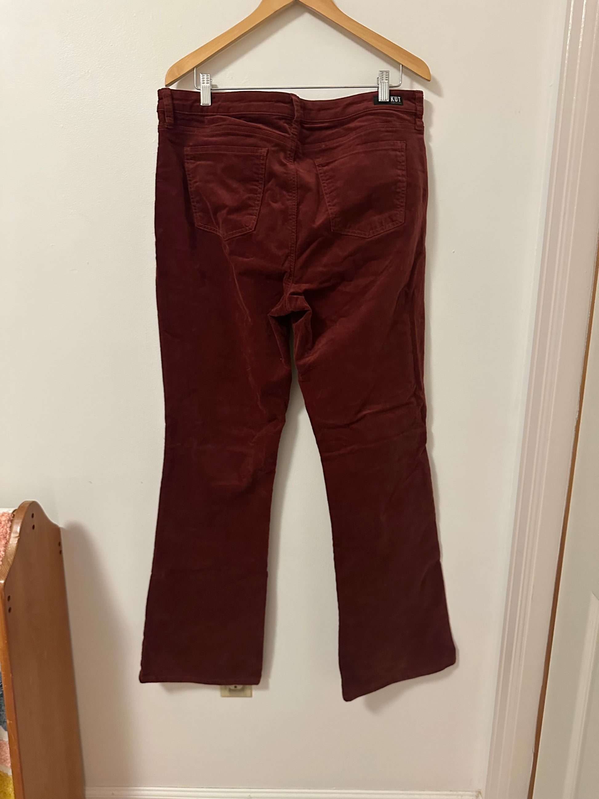Kut from the Kloth Karen Baby Bootcut Corduroy Jeans in Burgundy Red | Size 16