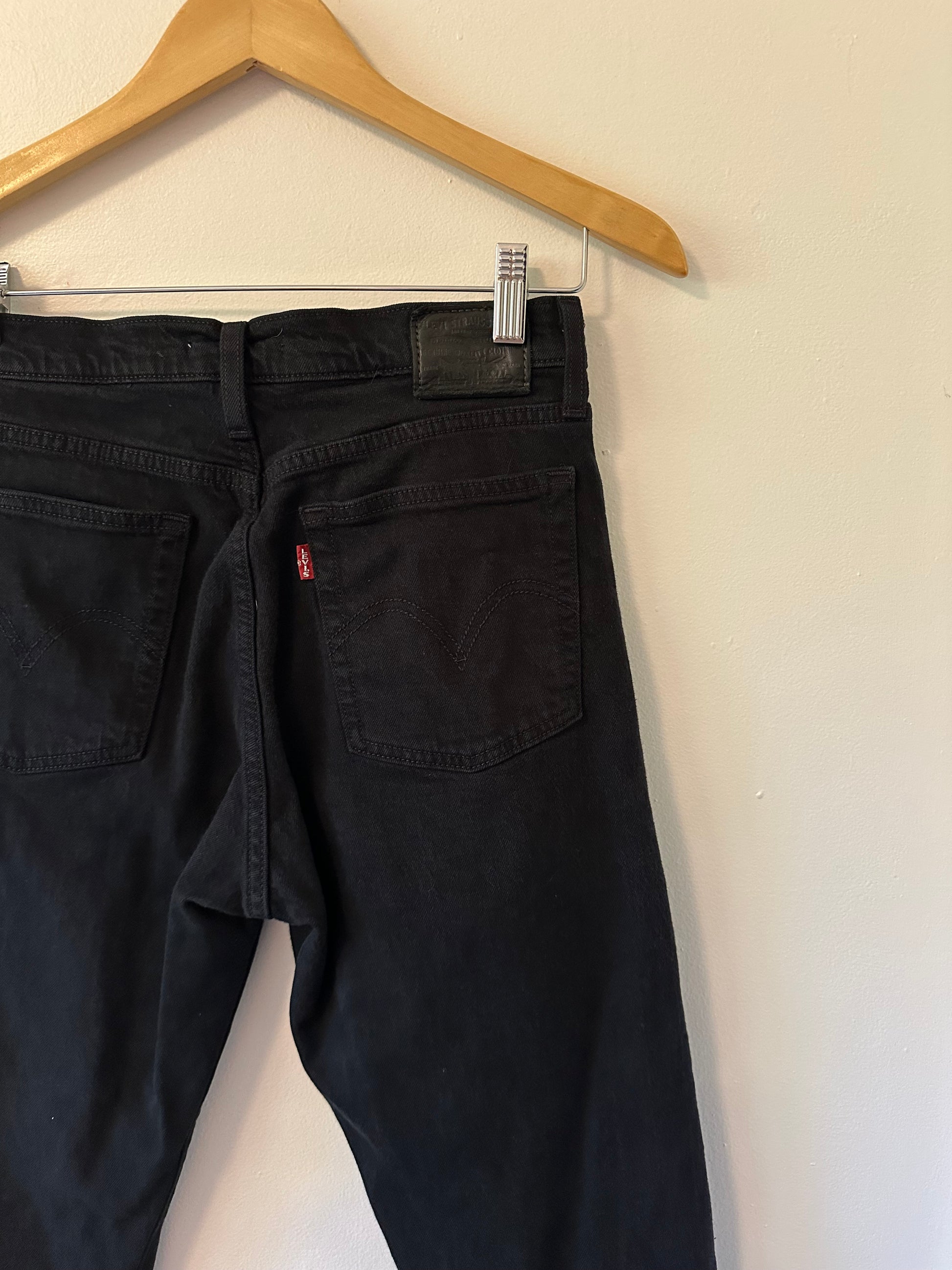 Levi's - Black Ripped and Distressed Wedgie Tapered Jeans with Raw Hem | Size 27