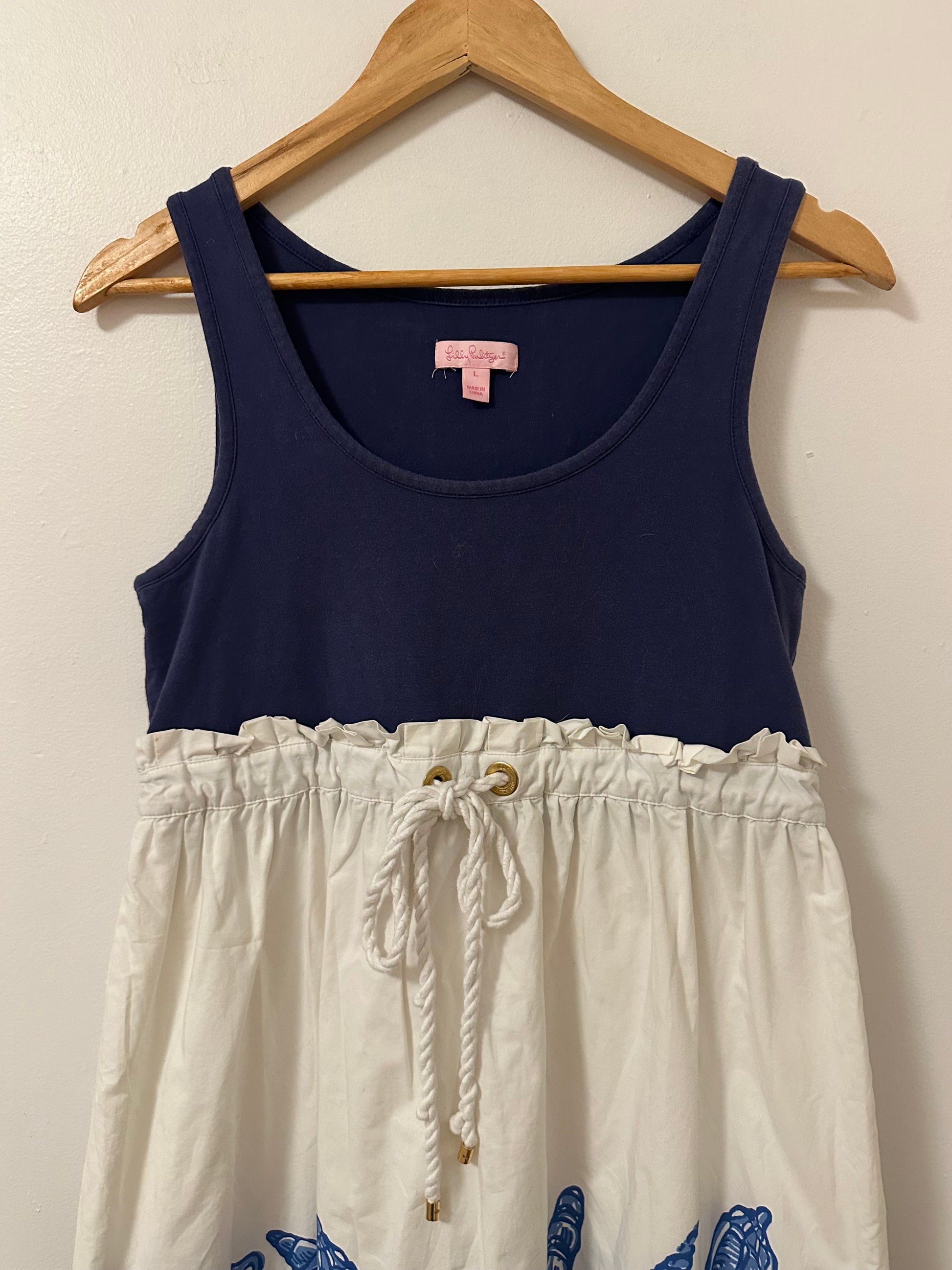 Lilly Pulitzer Nautical Mini Dress with Rope Tie and Seashell Pattern | Size Large