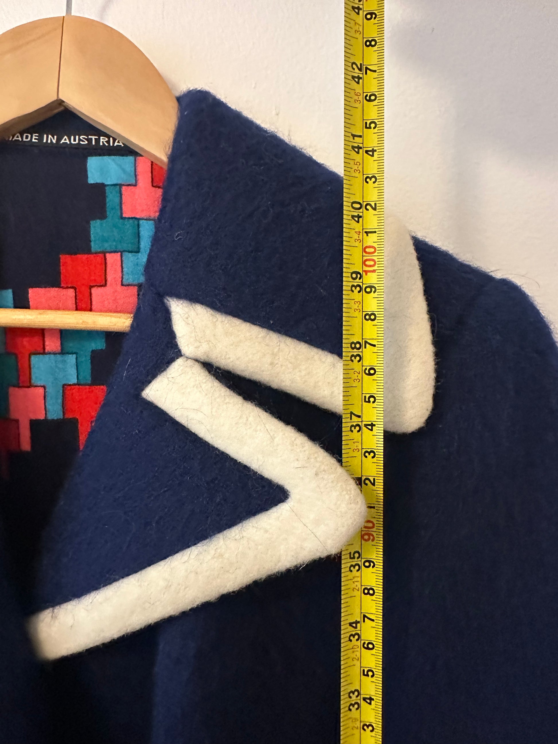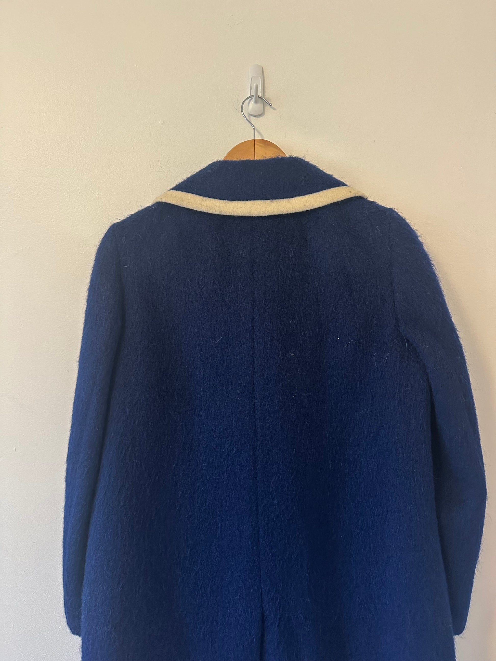 Lodenfrey Vintage Blue Wool Coat with Cream Trim