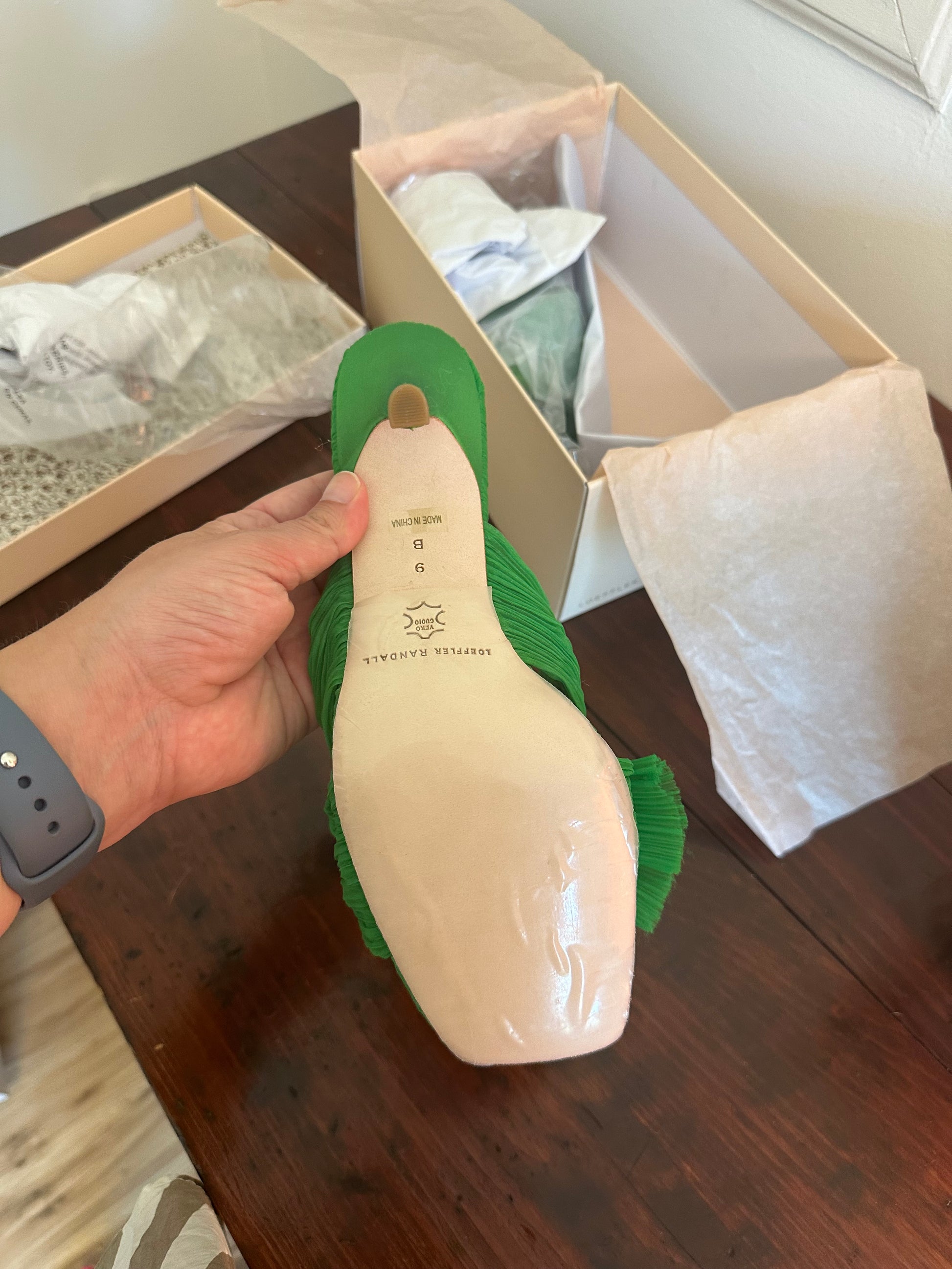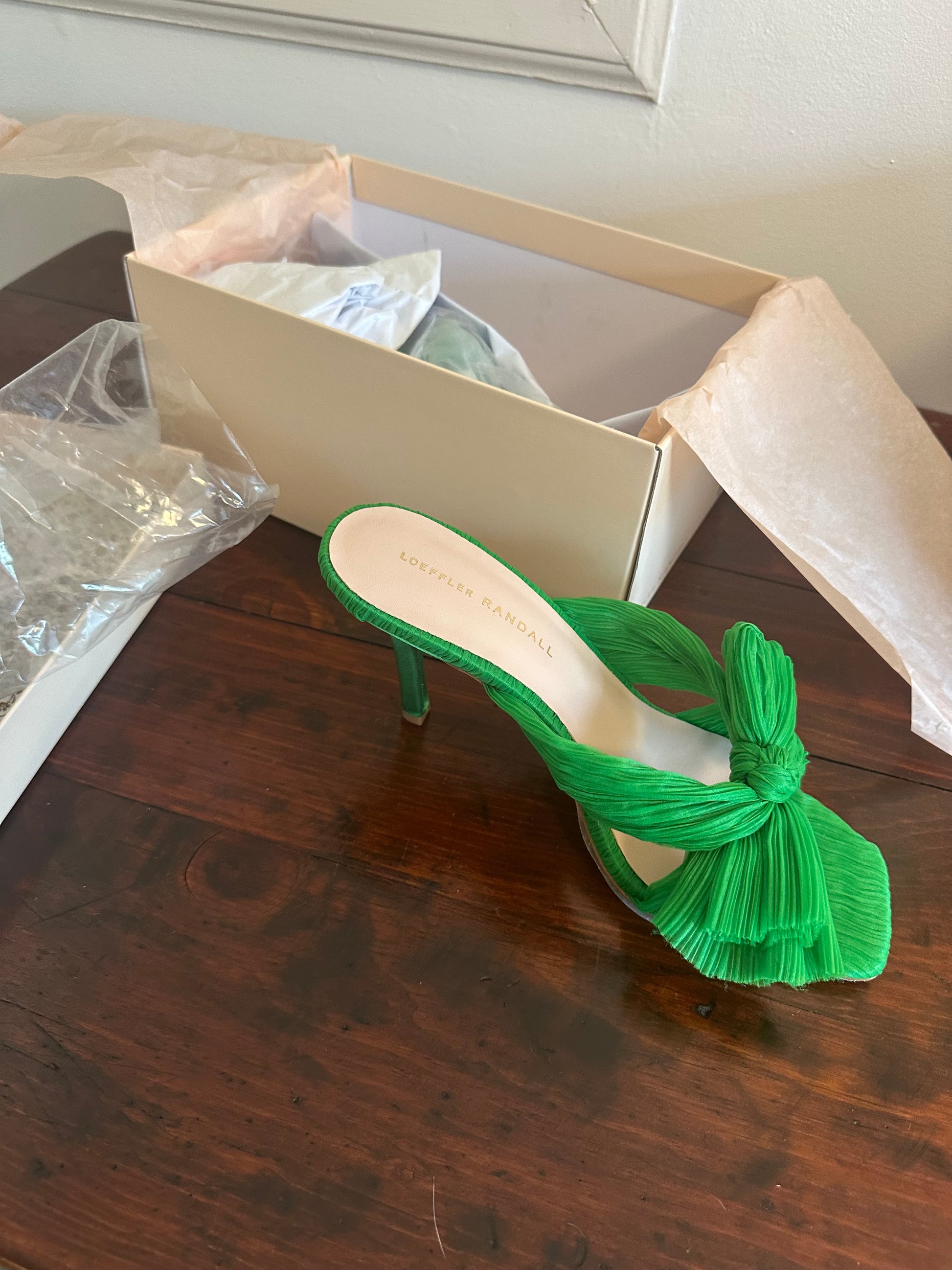 Loeffler Randall Women's Claudia Clover Pleated Bow Mule Sandals Size 9