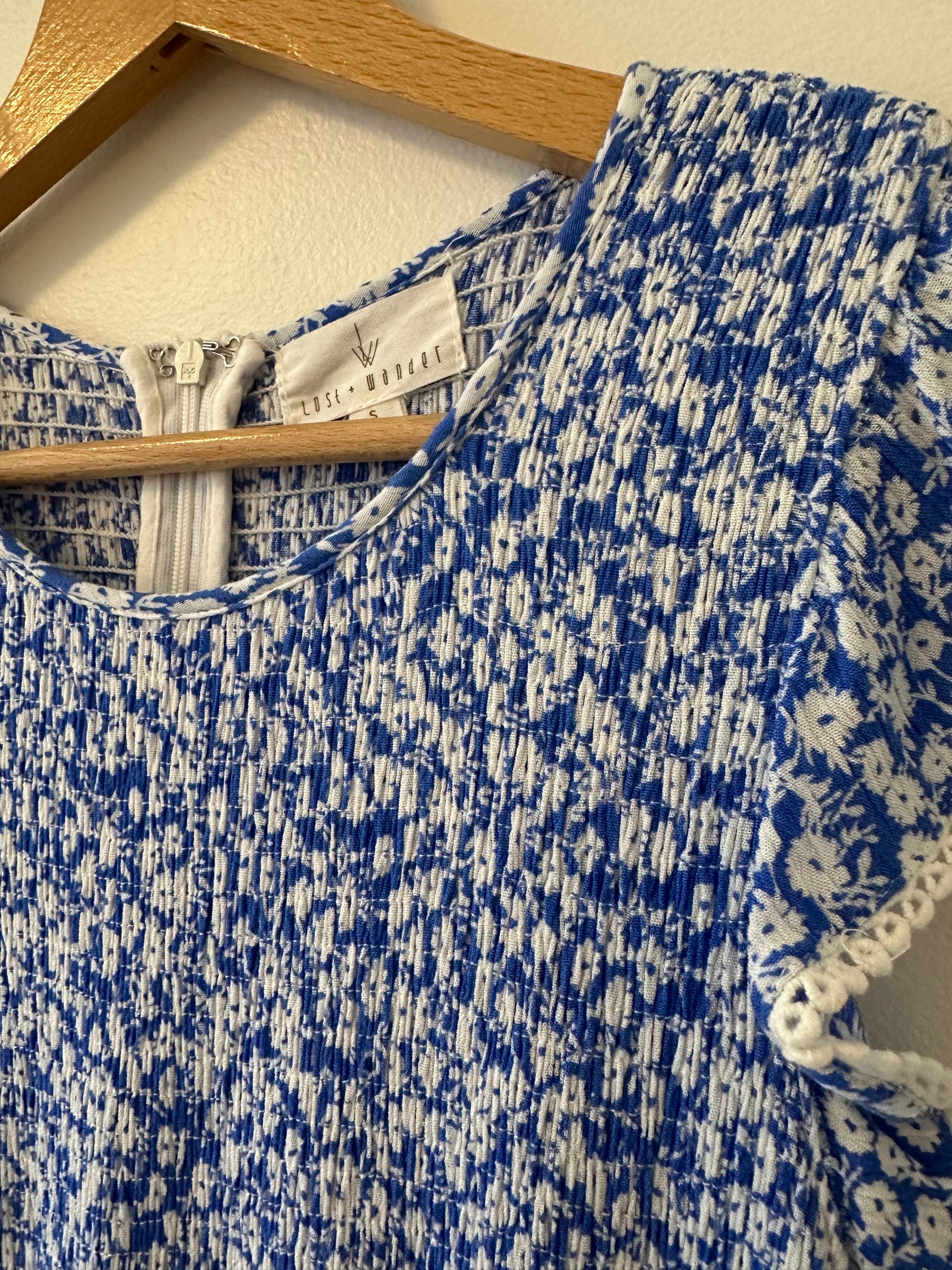 Lost + Wander Pick Me Blue Floral Print Midi Dress Size Small