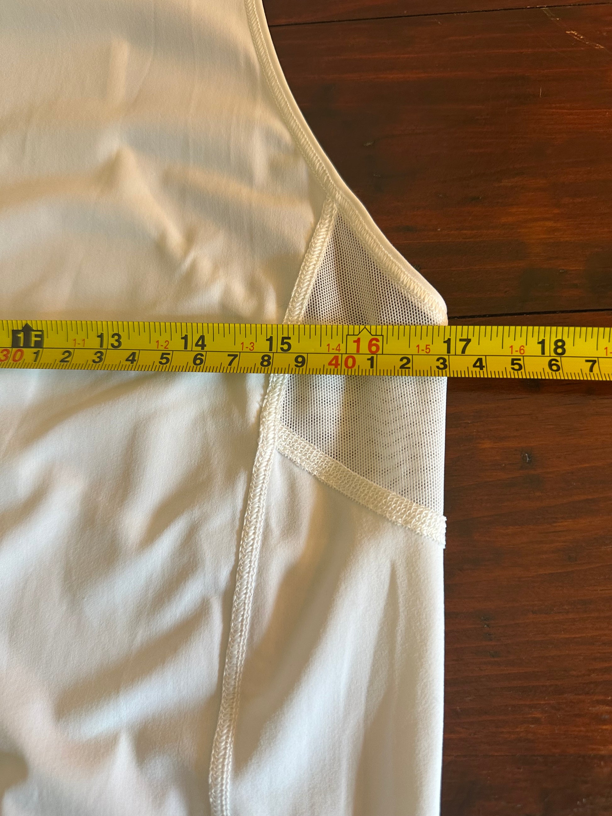 This lightweight, relaxed fitting tank provides breezy coverage during any of your sweaty endeavours. Mesh fabric paneling in the back helps keep you cool, while the high neckline and wide straps give you coverage where you want it most.