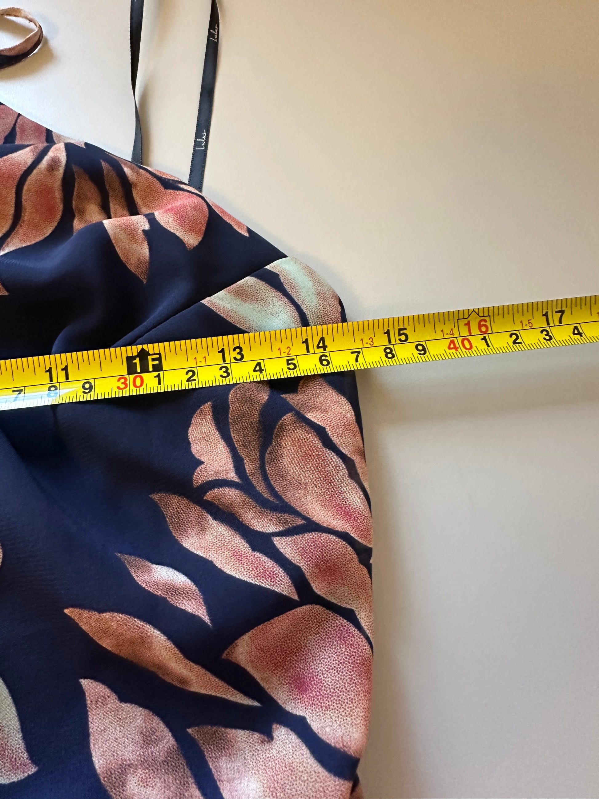 Measures approximately 50 inches from the top of the strap to the hem, but because the straps are adjustable the length is also