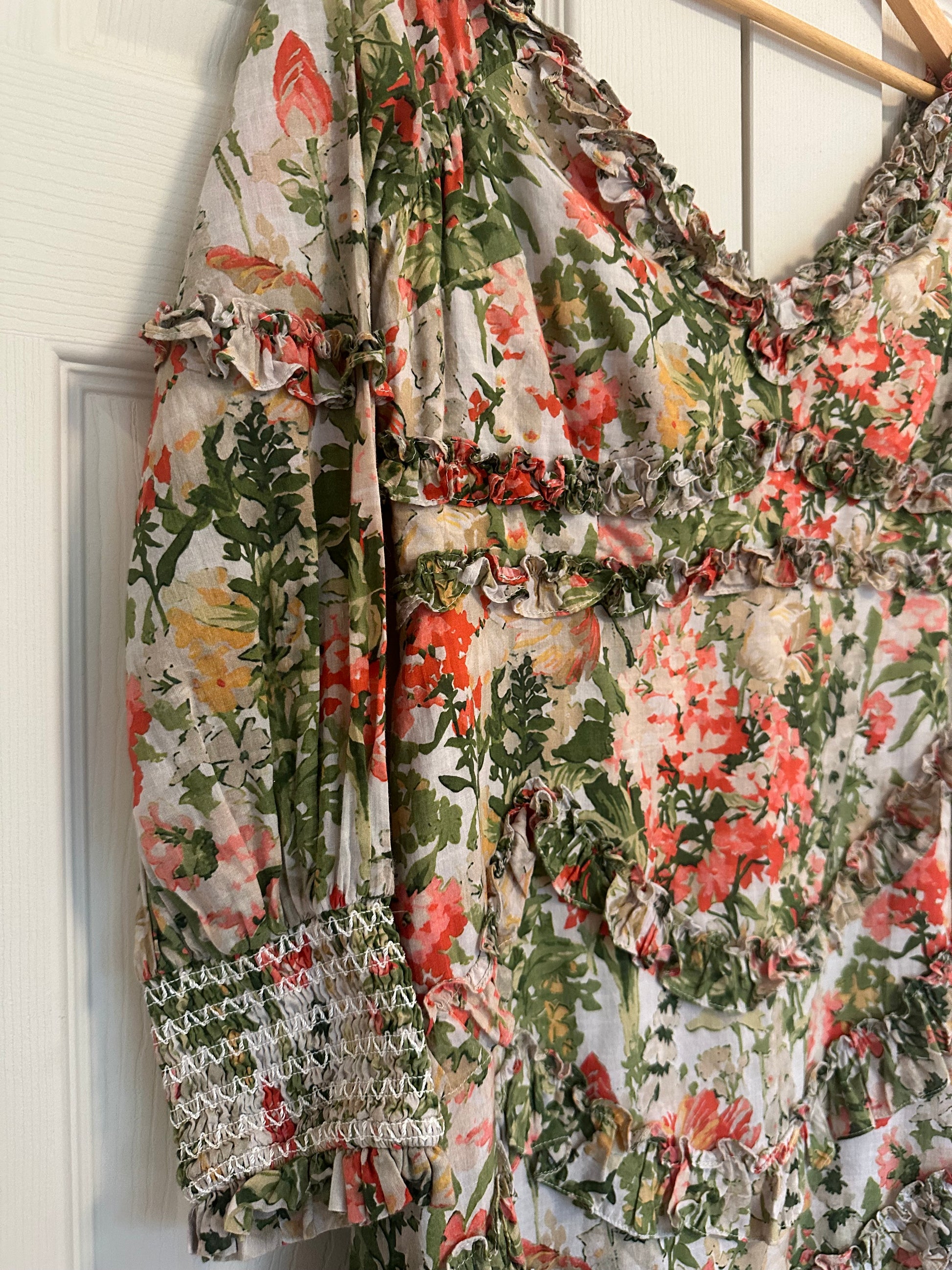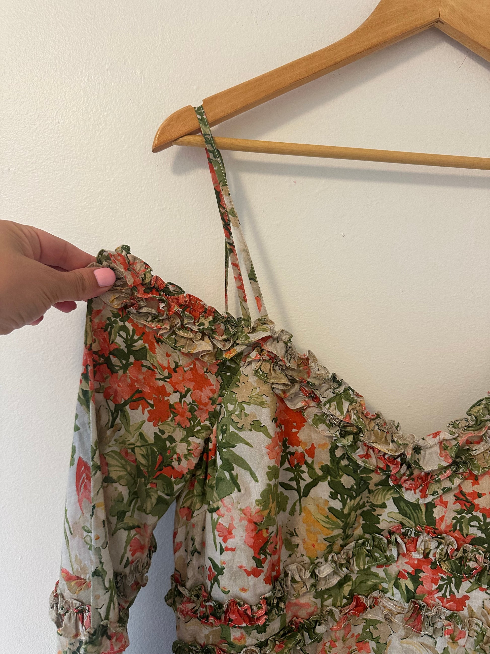 Mac Duggal Floral Long Sleeve Ruffle Detail Off-Shoulder Dress - Size 10