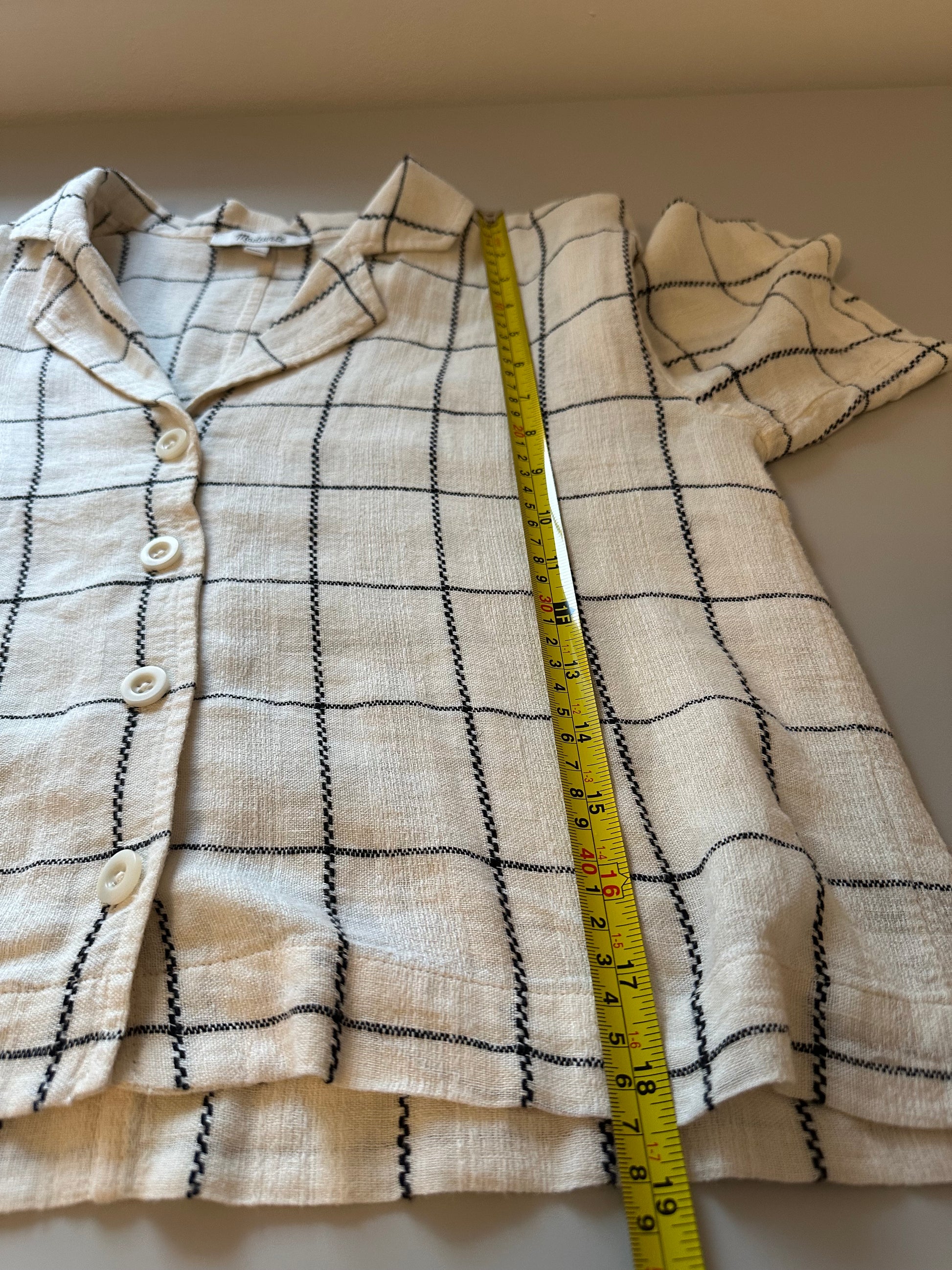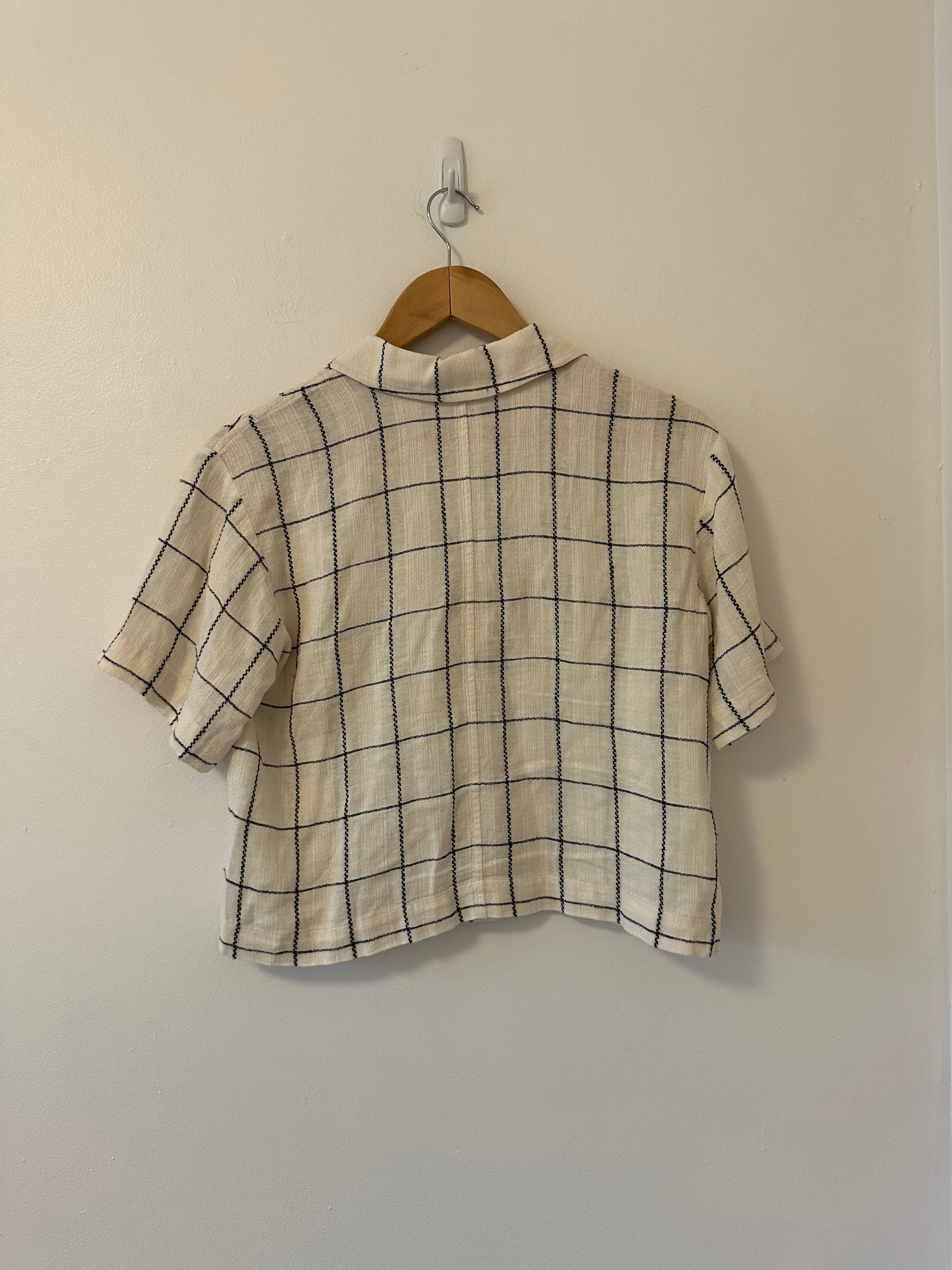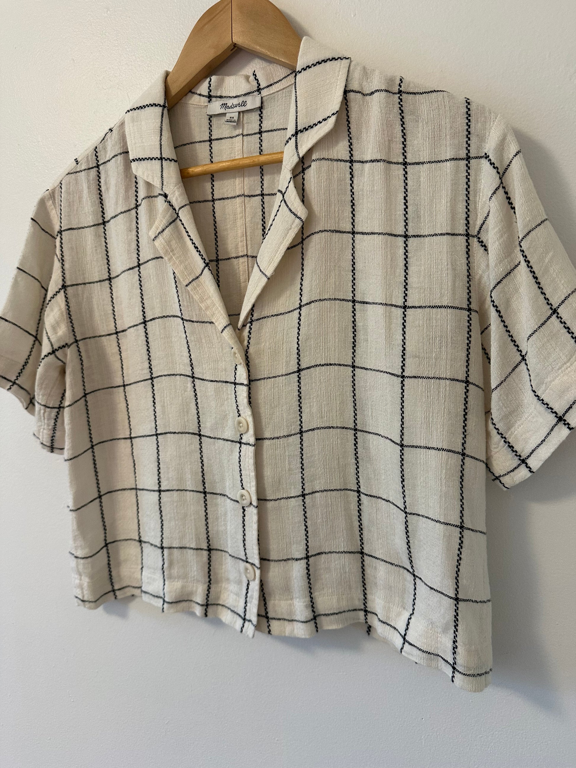 Madewell Linen-Blend Resort Crop Shirt in Windowpane | Size XS