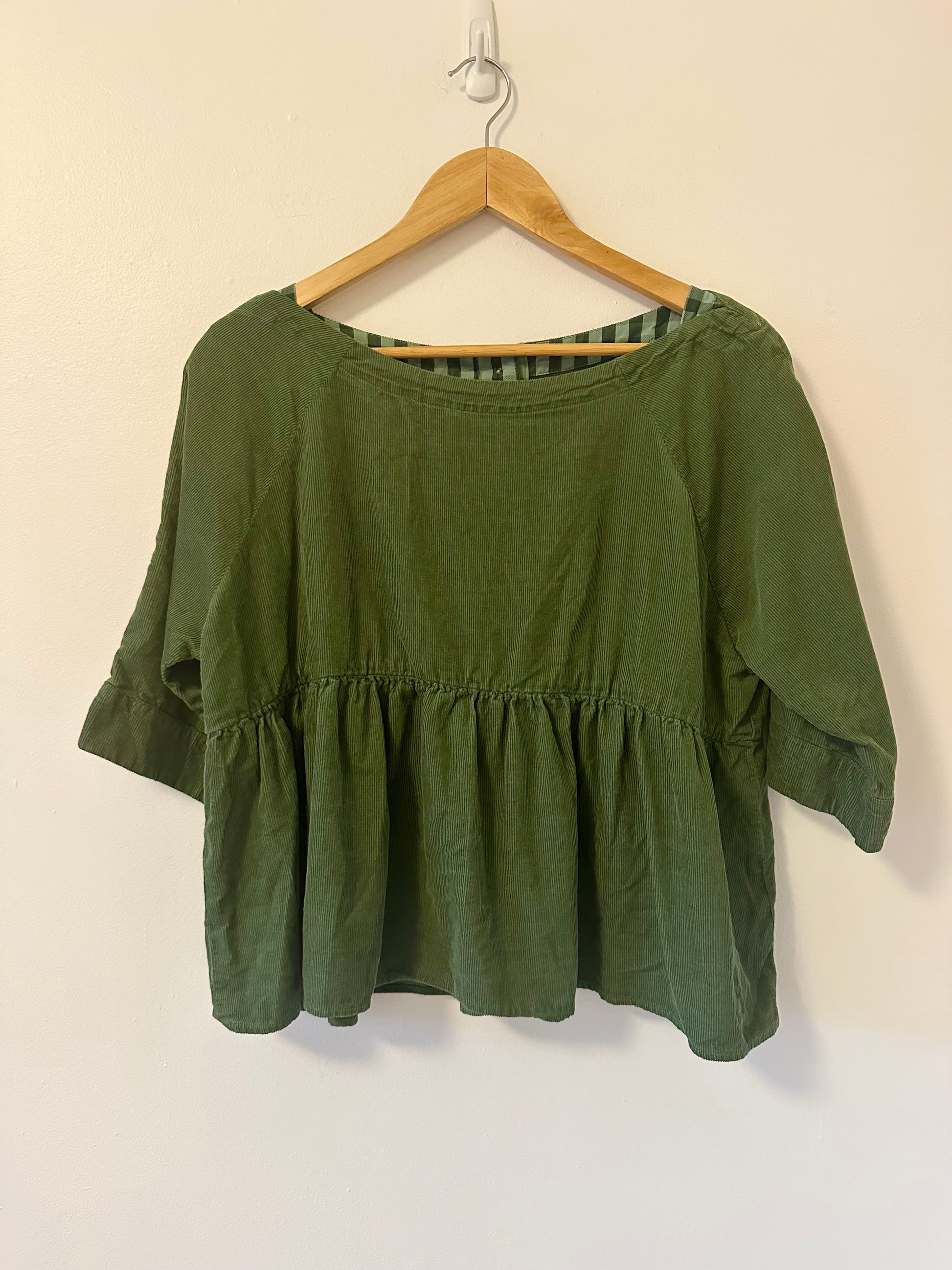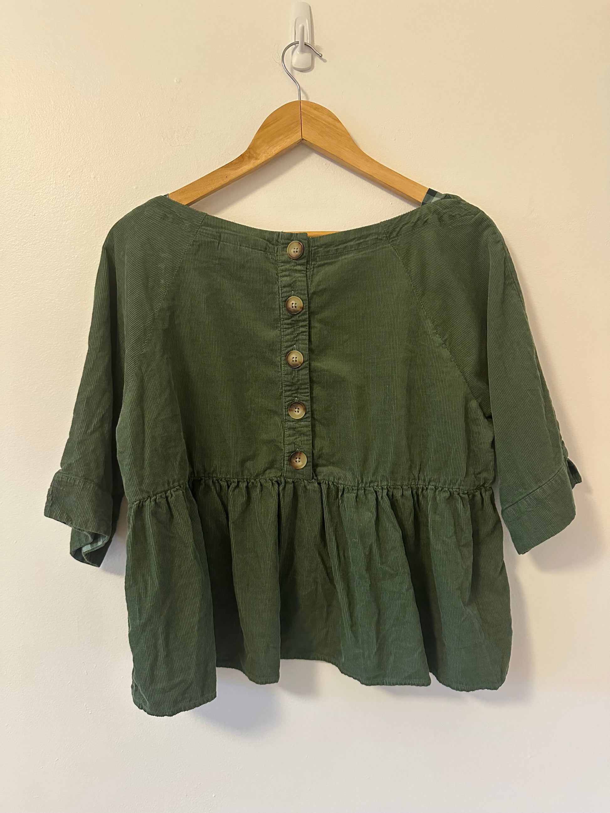 Maeve Anthropologie Maria Corduroy Olive Green Babydoll Blouse | Size XSP