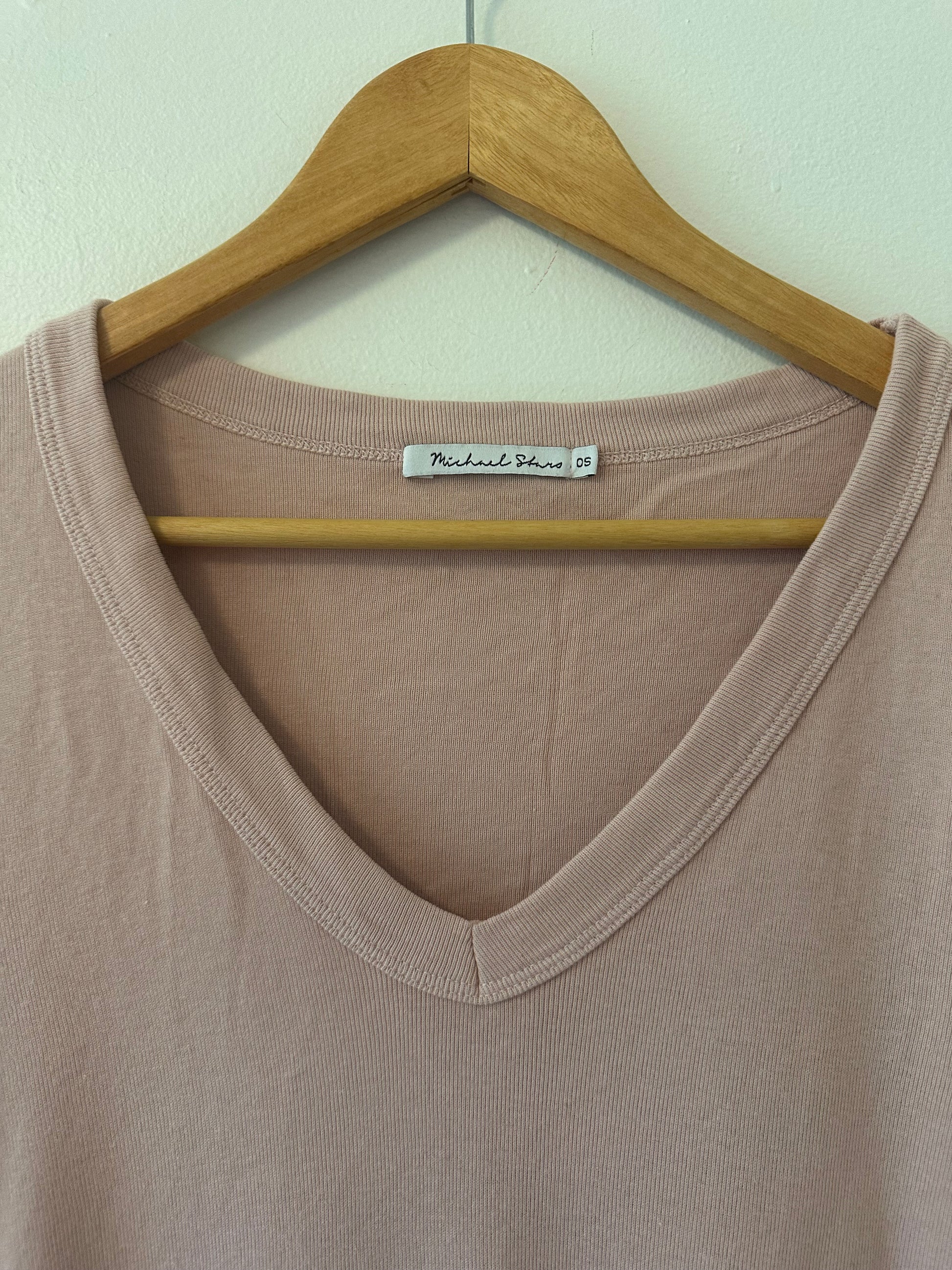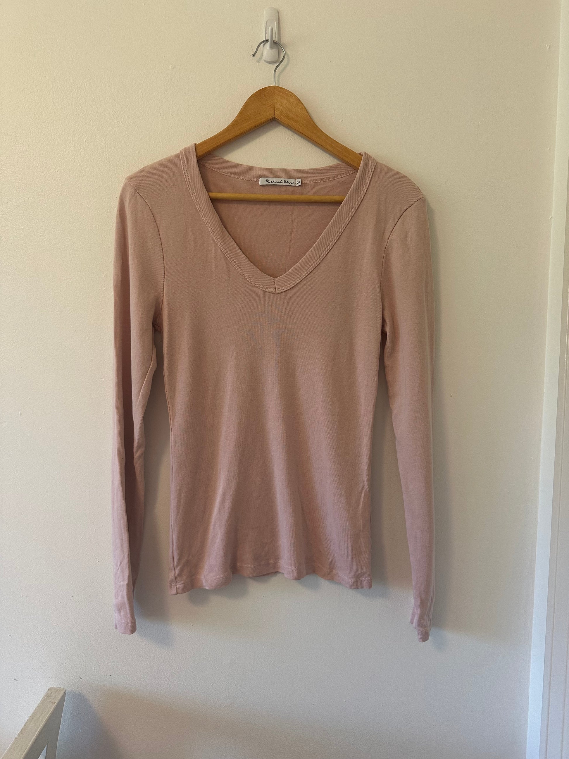 Michael Stars Pale Pink V-Neck Long Sleeve Top