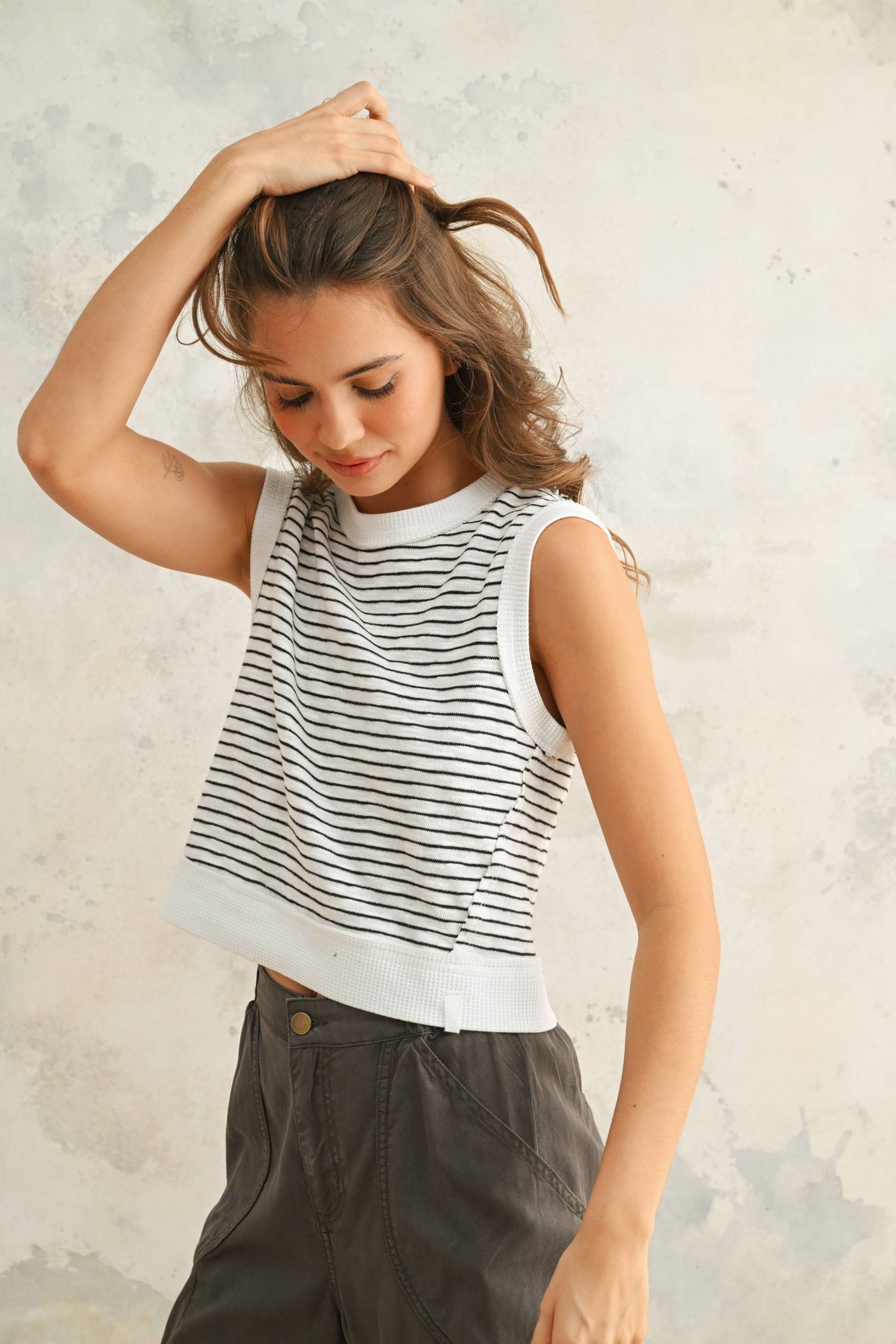 Miou Muse Striped Sleeveless Top - Black and White - Size Small