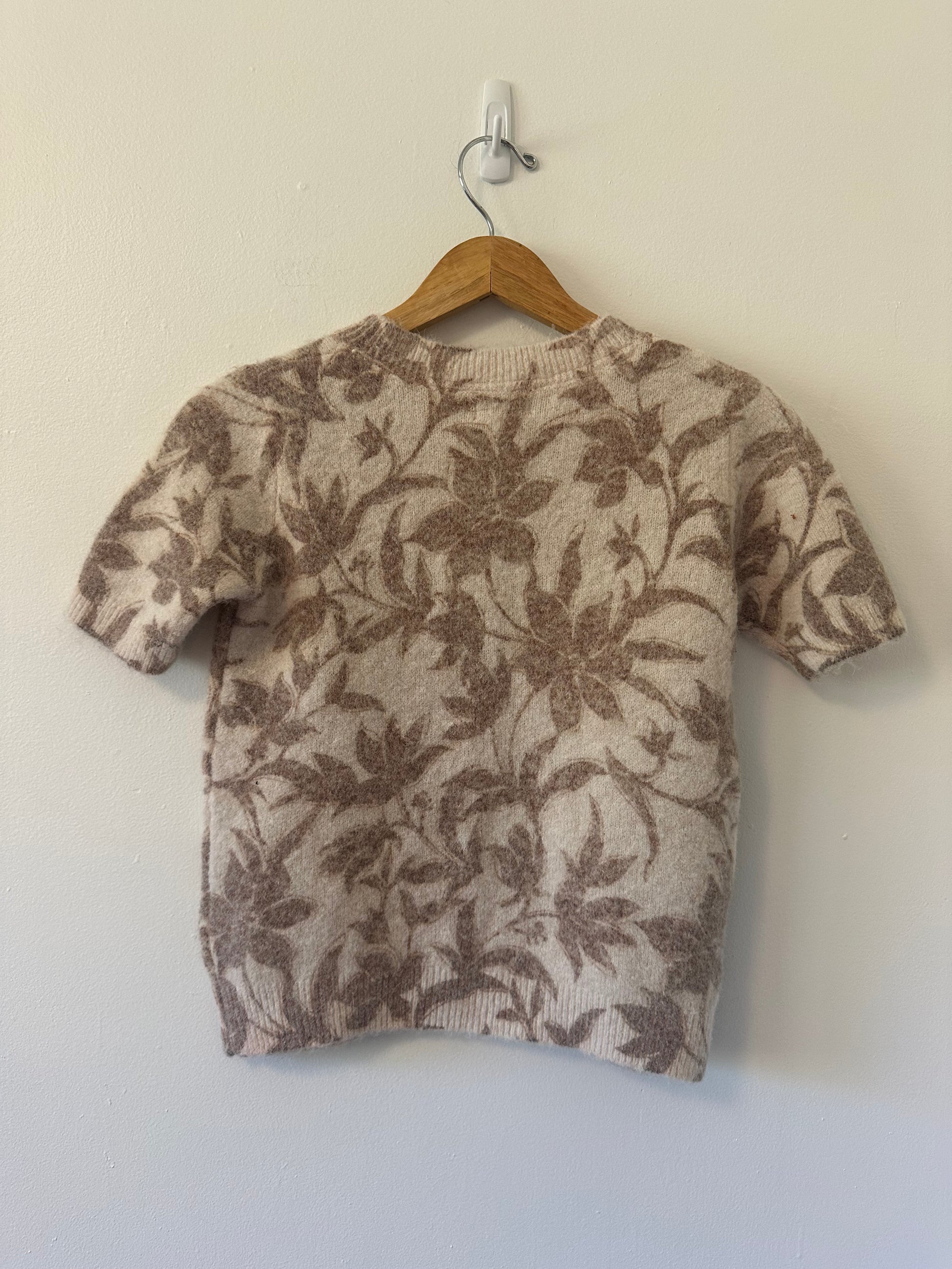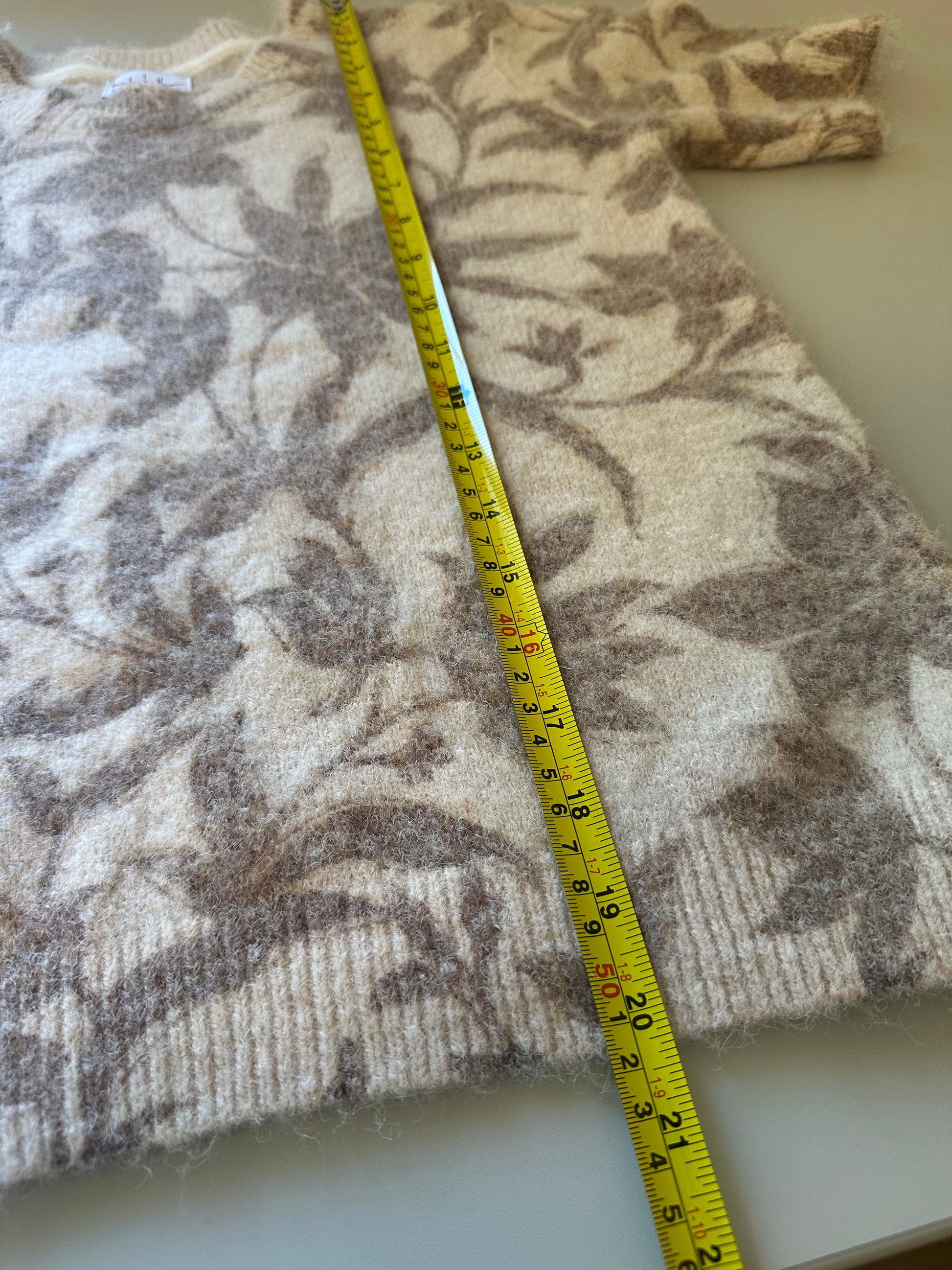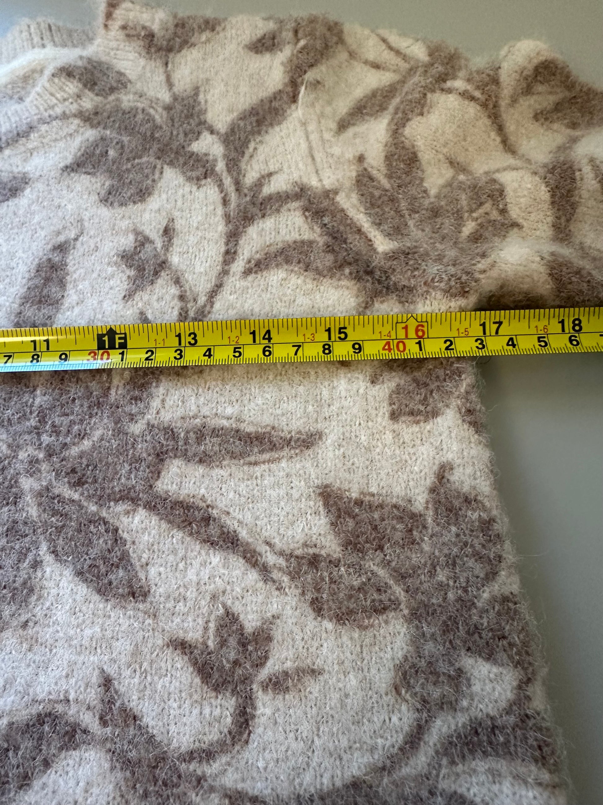 Nicole Miller Beige and Brown Floral Crewneck Sweater | Size Small