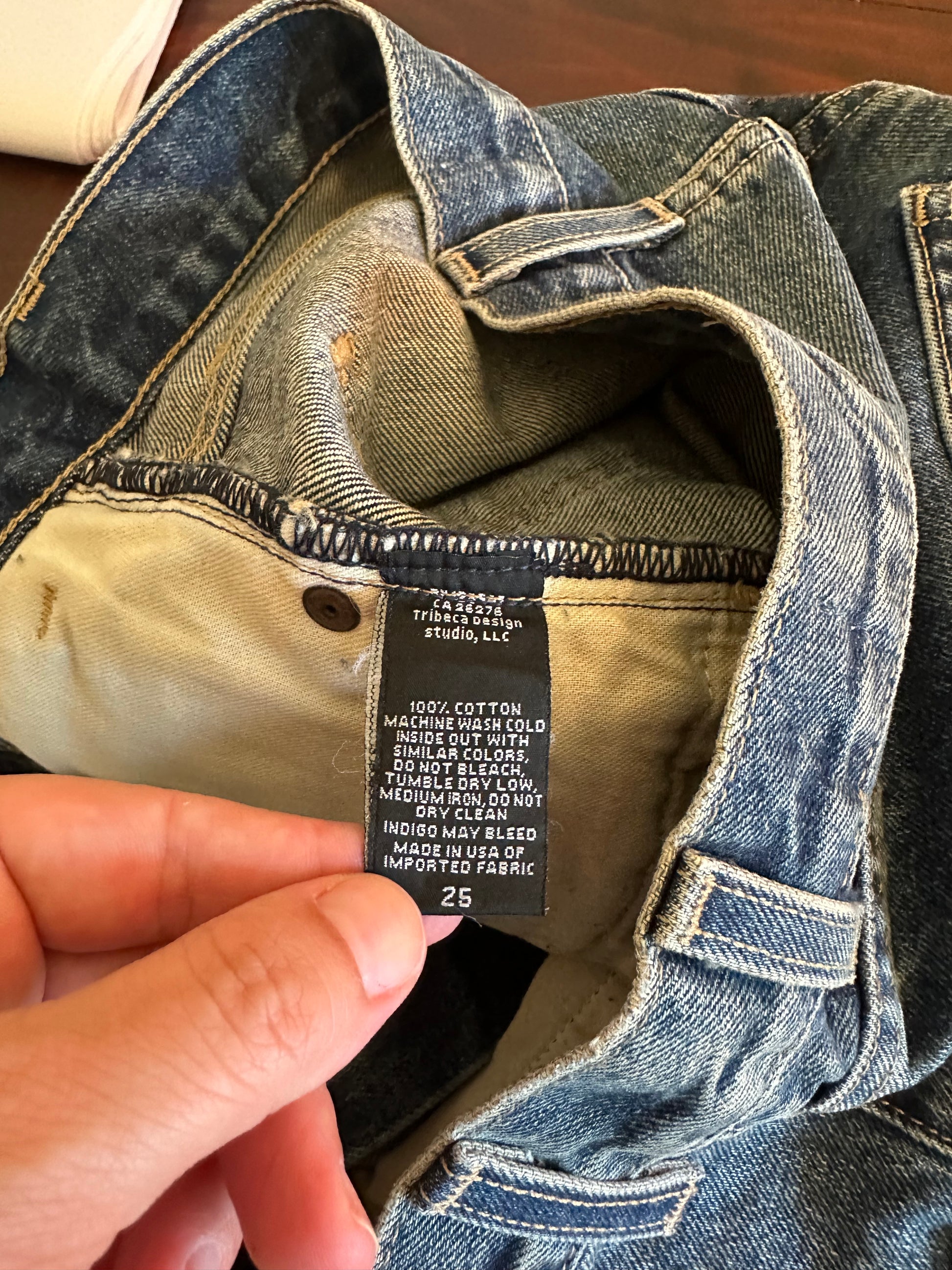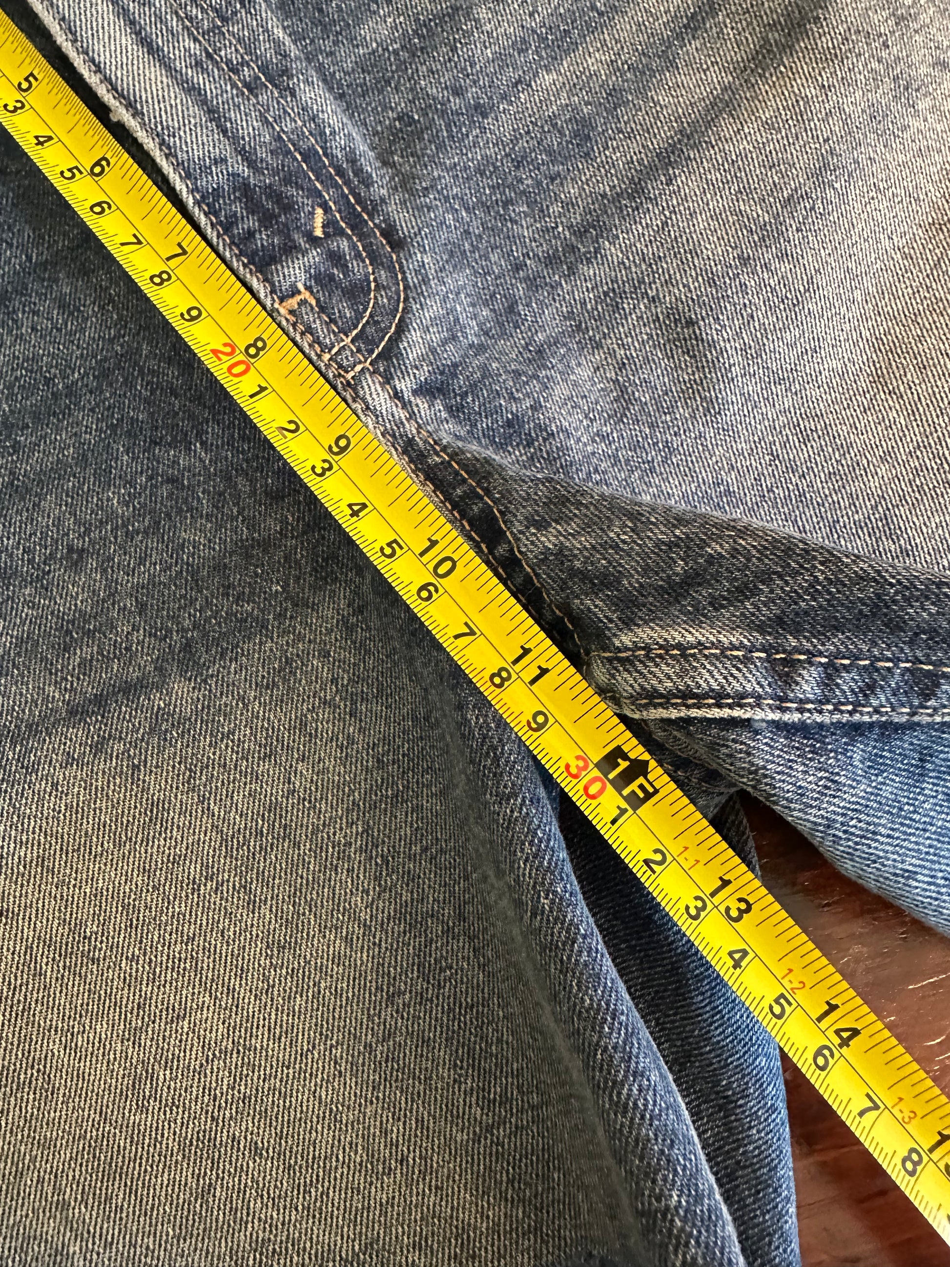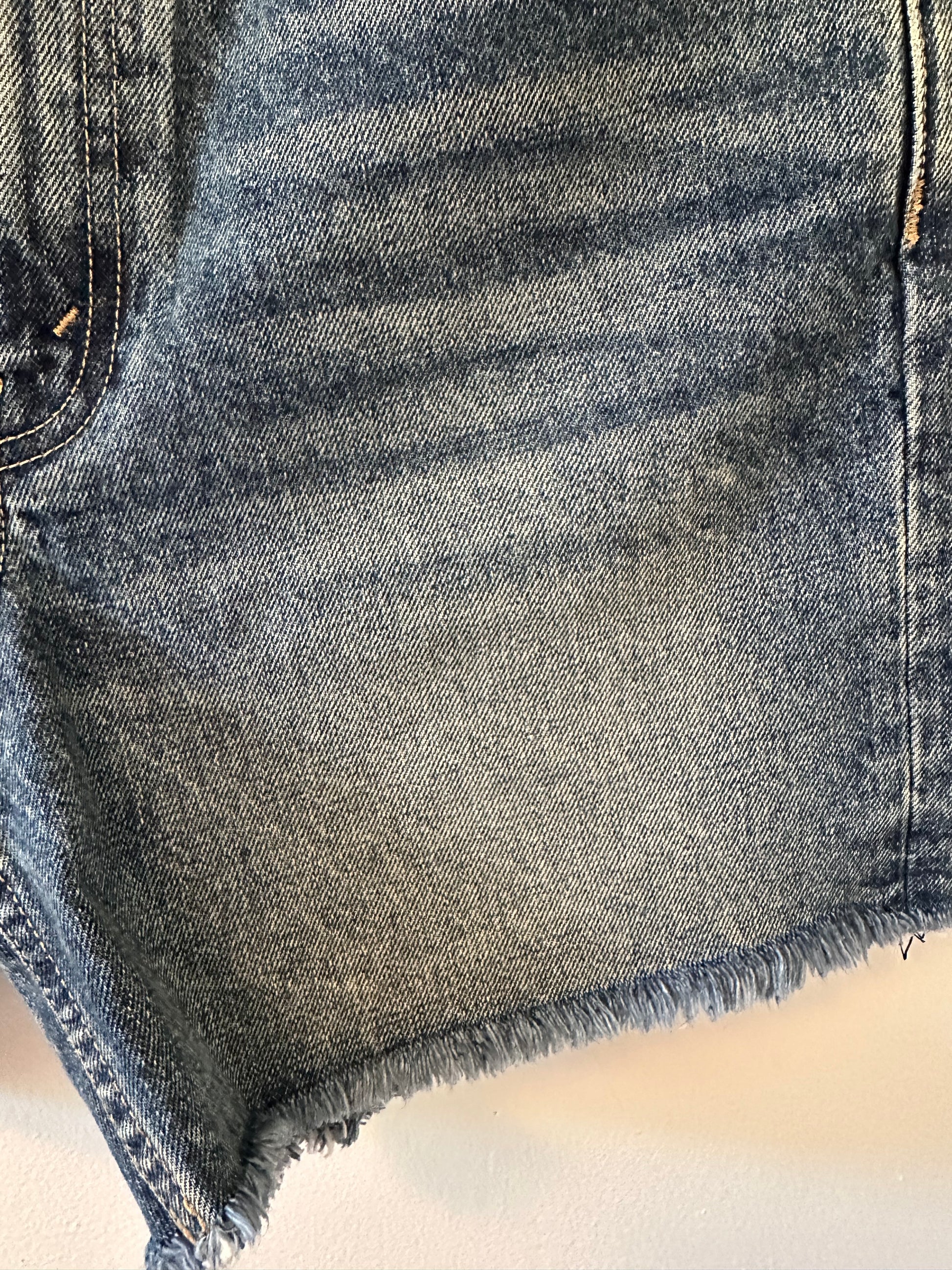 Classic jean shorts in 100% cotton. Excellent, like new condition they are size 25 but run a little bit big for a slouchy look.