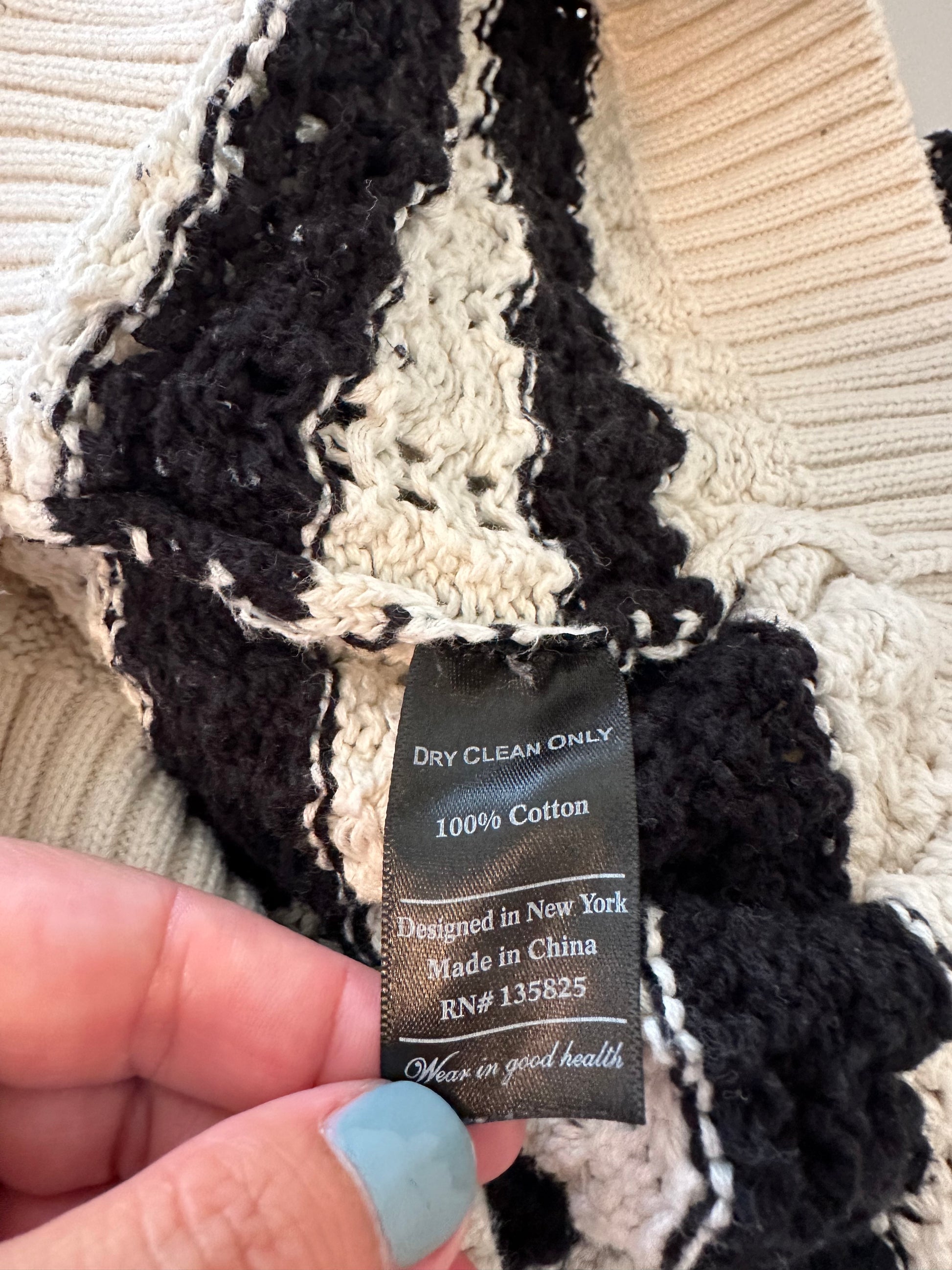 No. 6 Store Black and White Striped Cropped Polo Cotton Sweater | Size Large