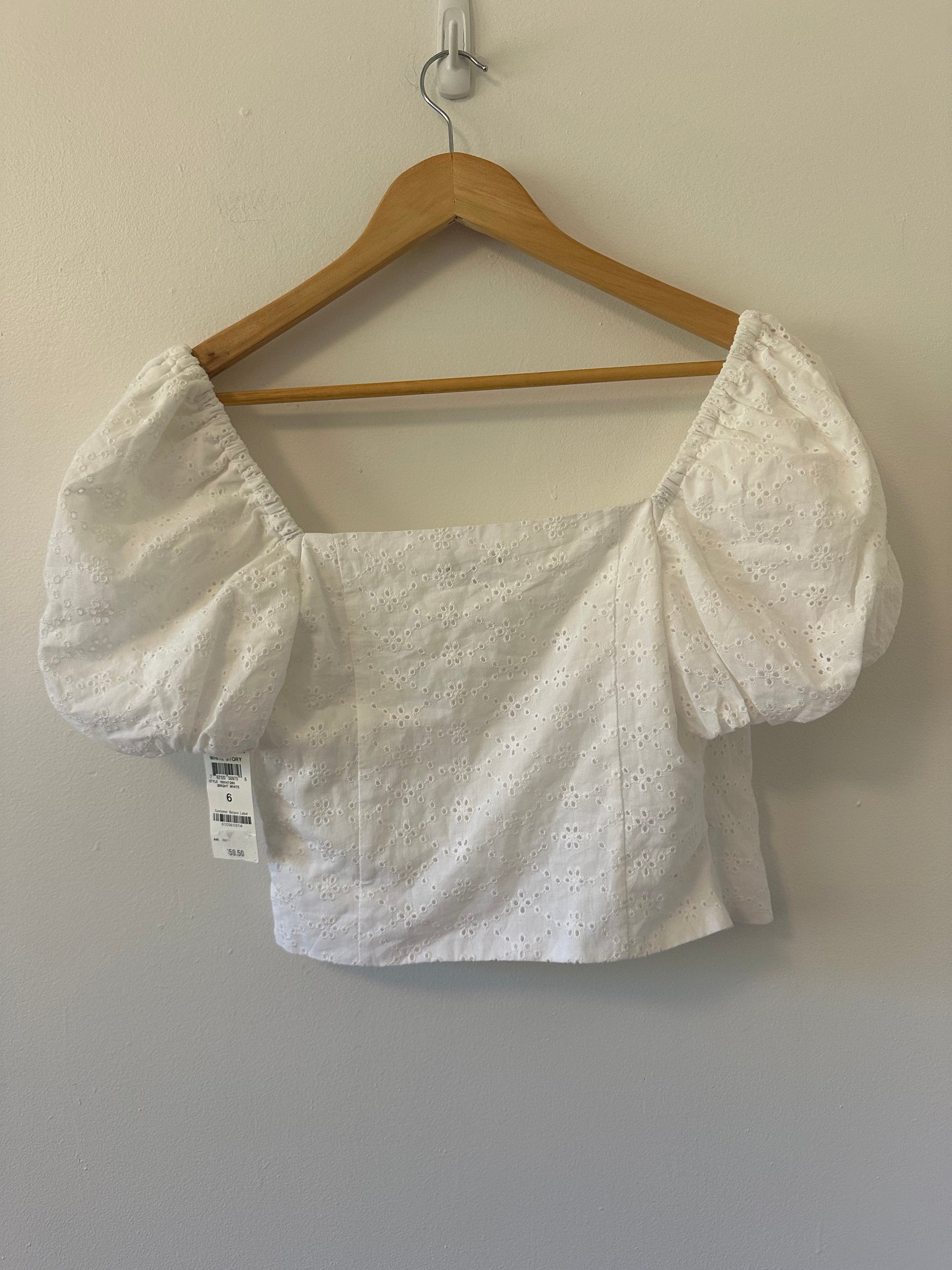 NWT Bar III White Eyelet Wrap Cropped Puff Sleeve Blouse | Size 6
