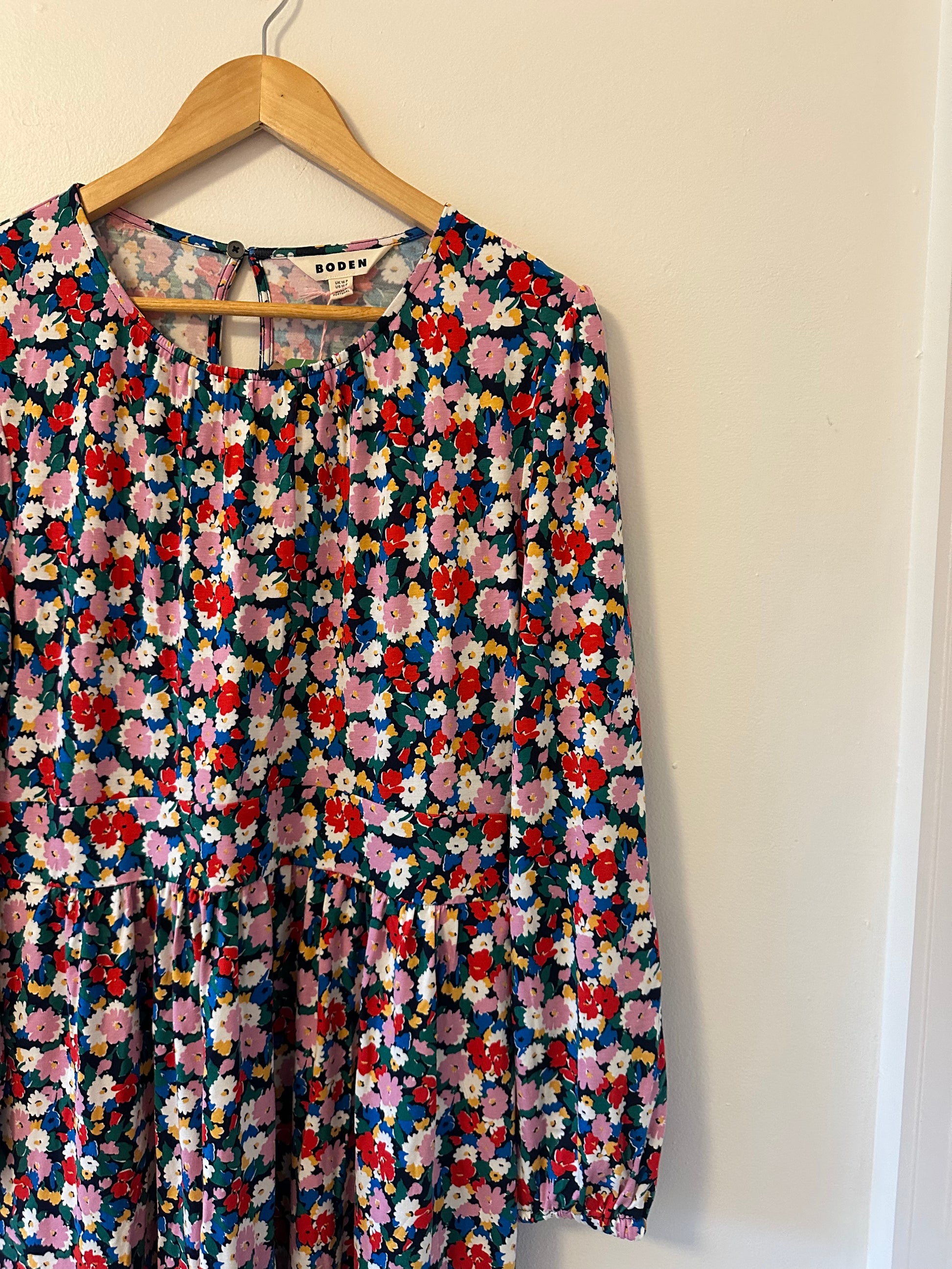 Boden Alexandra Blouson Jersey Dress in Multi, Painterly Meadow - Size 12P