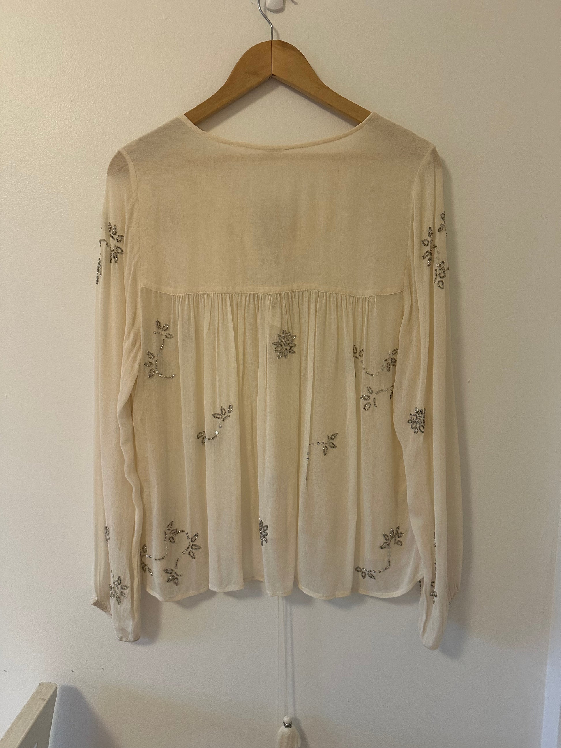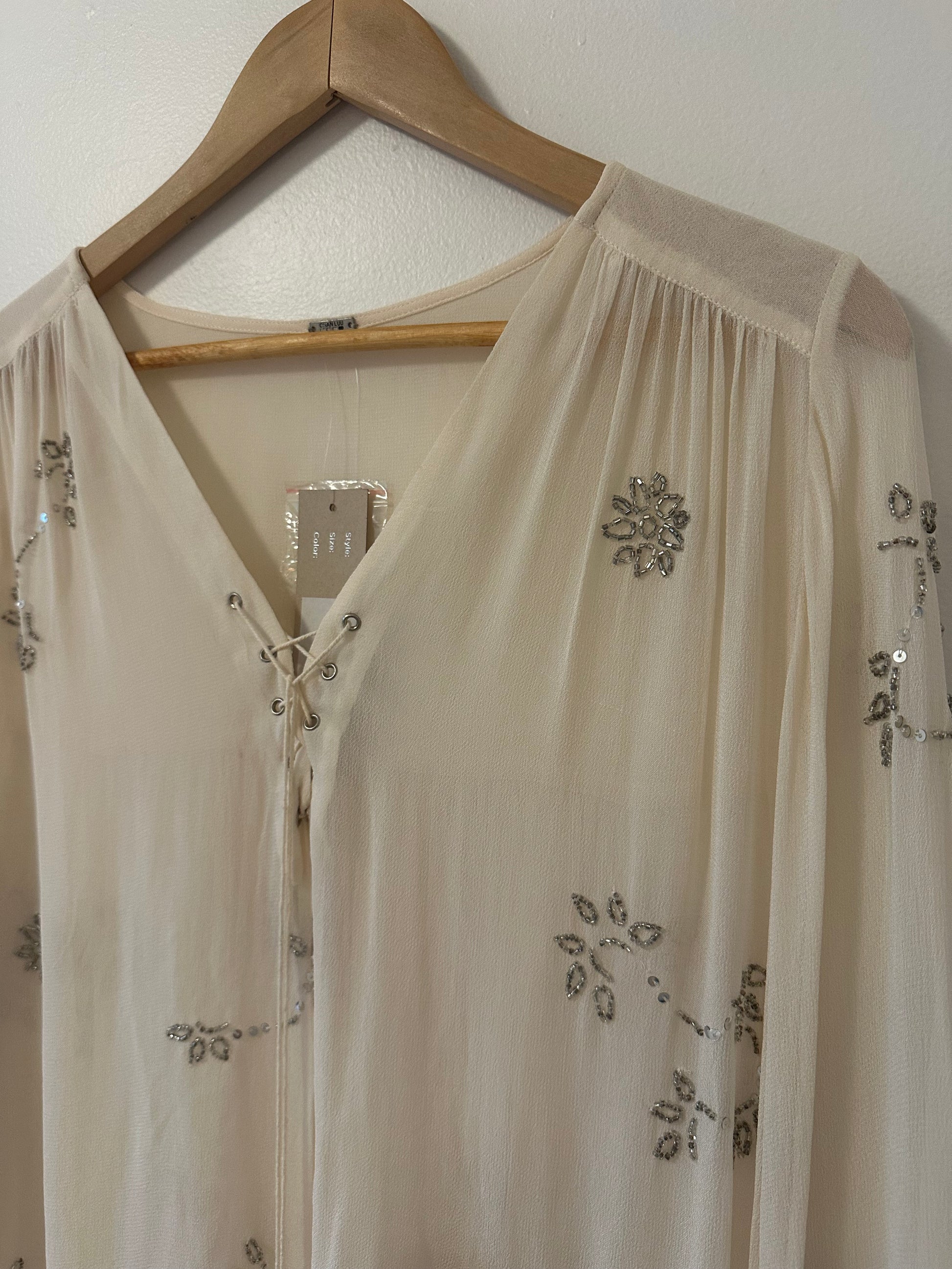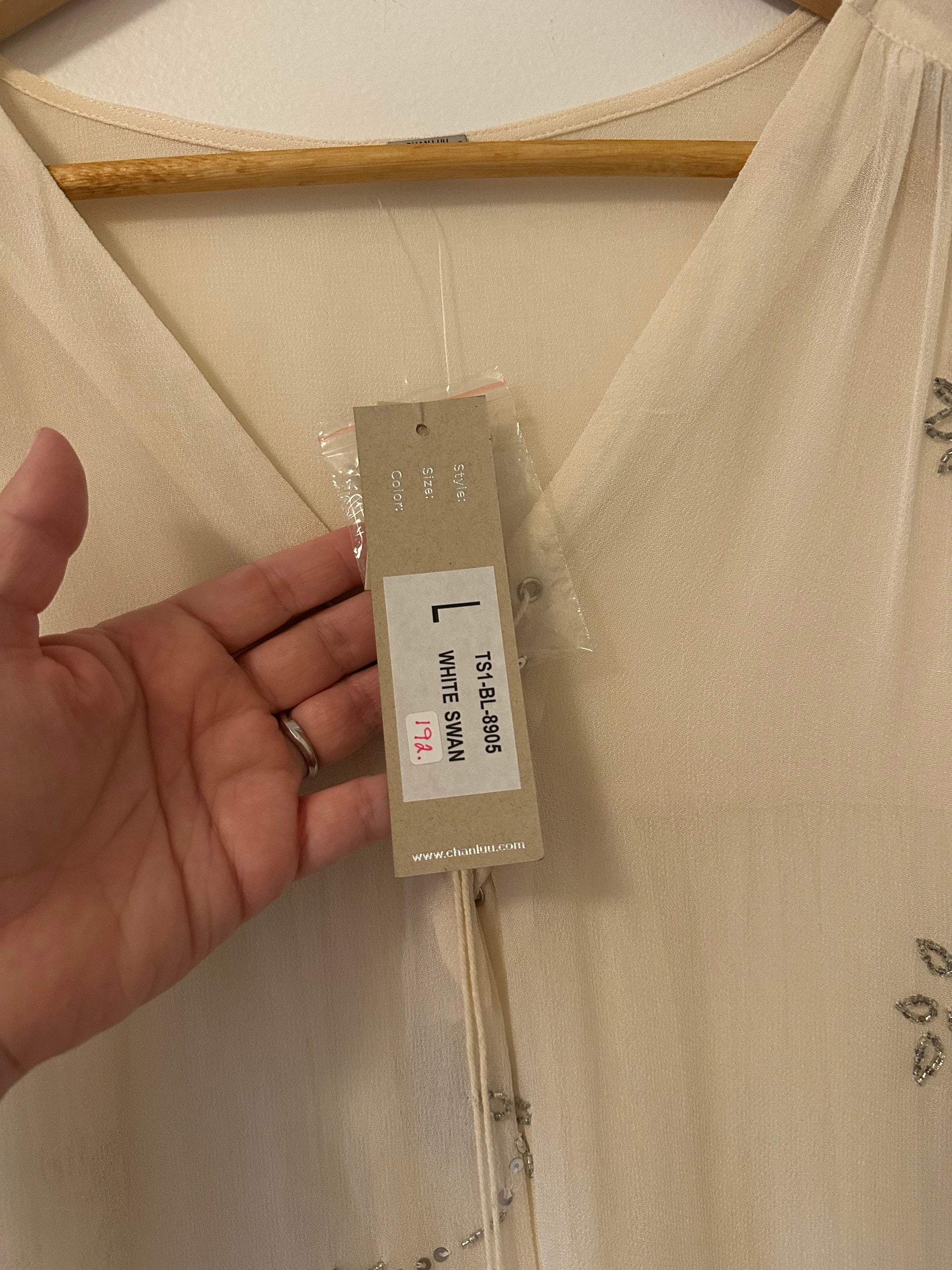 NWT Chan Luu Beaded Cream Blouse Size Large