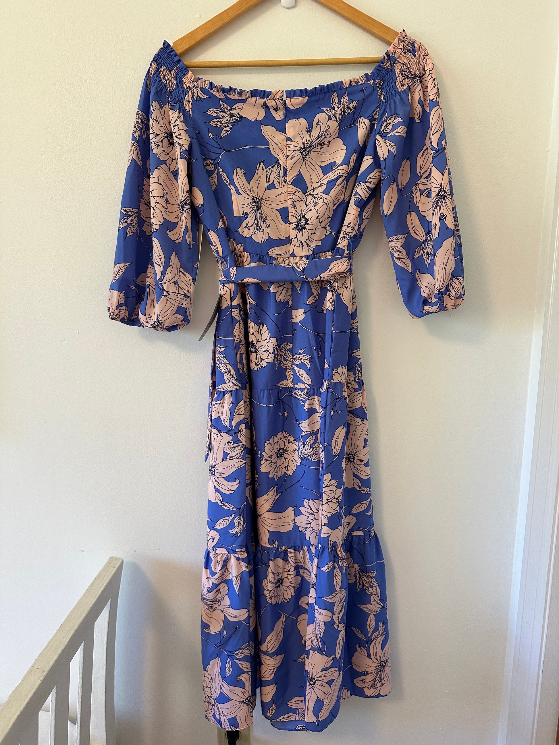 NWT Eliza J Floral Blue and Pink Midi Dress - Size 8