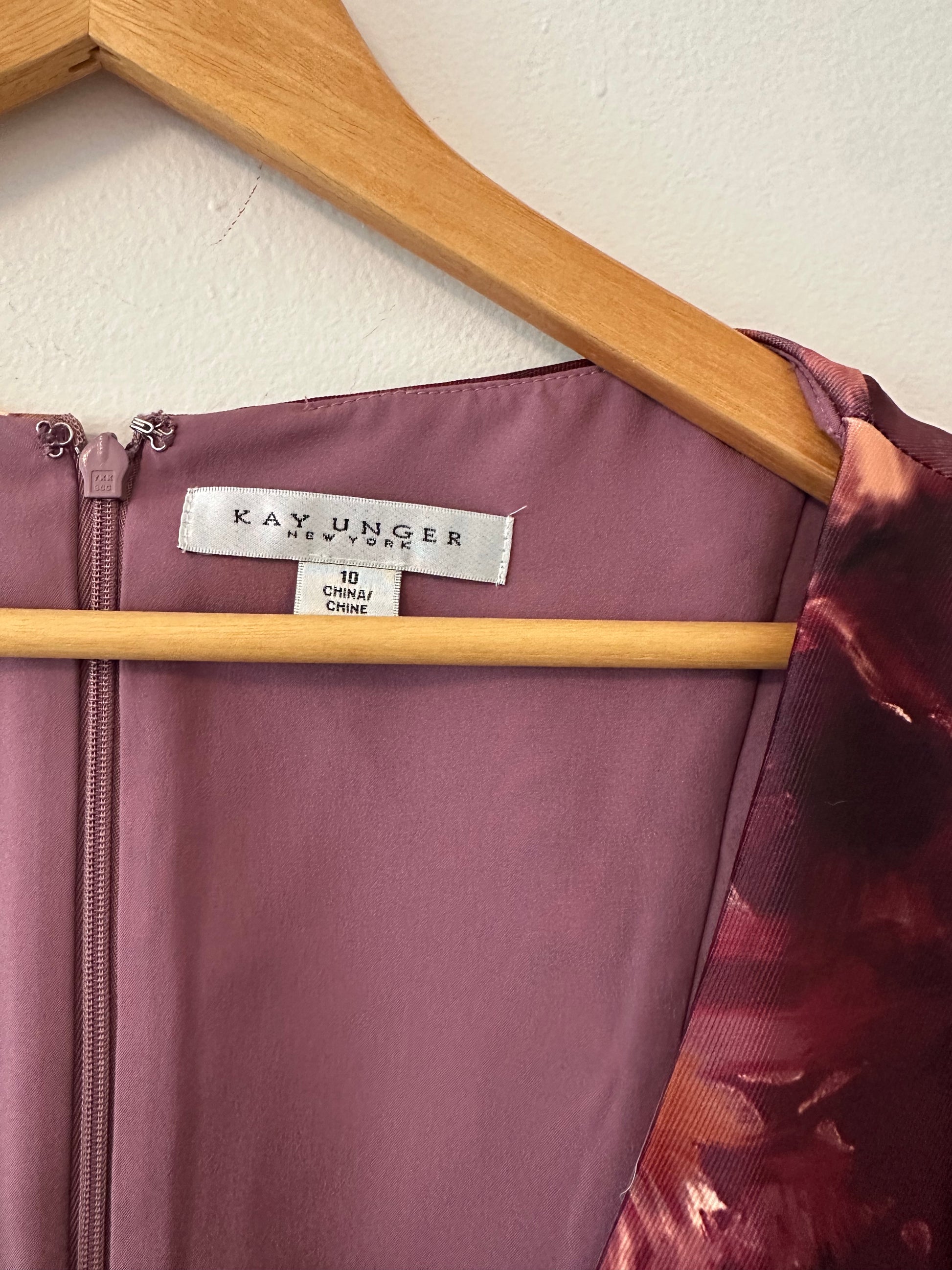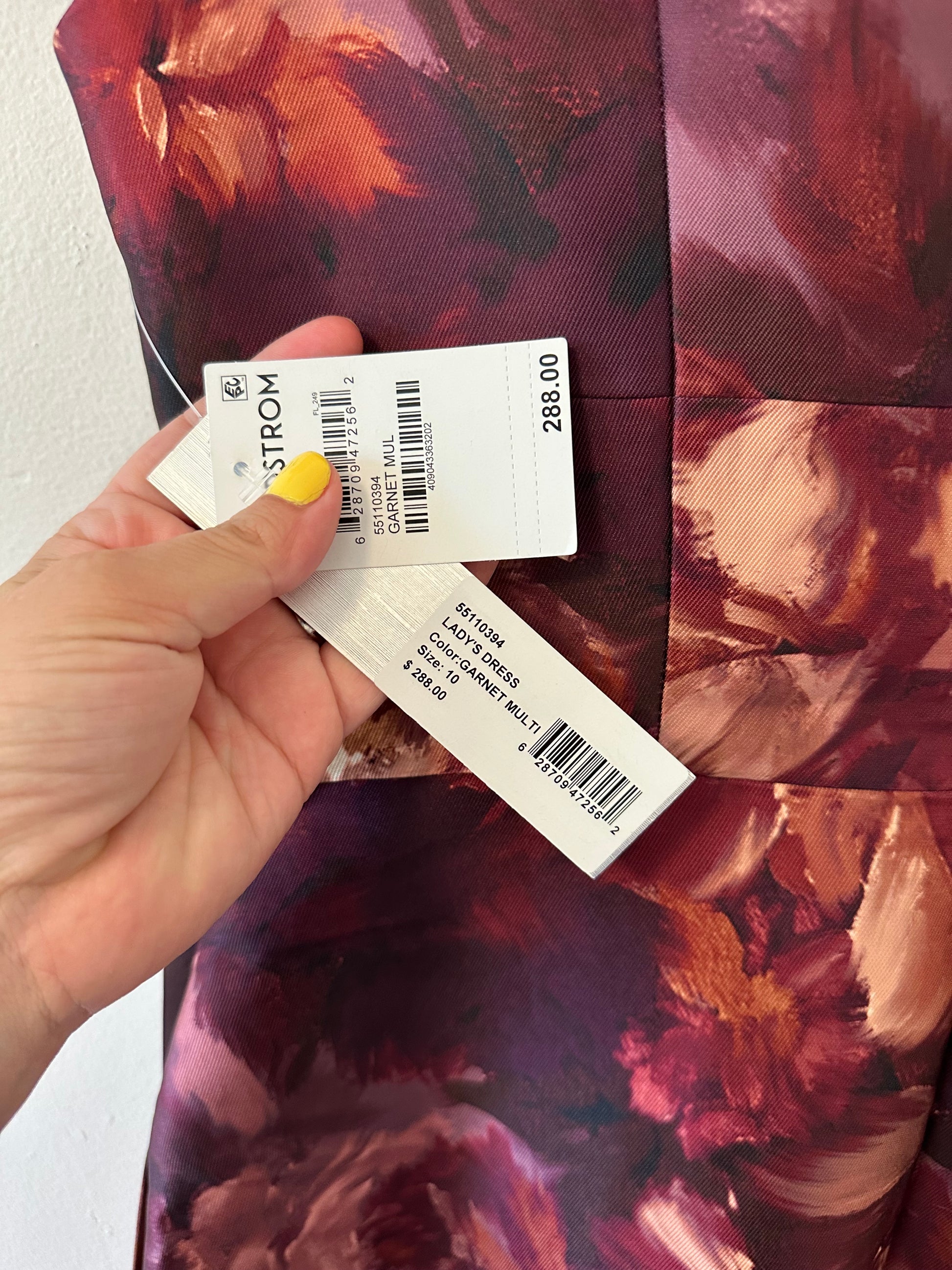 NWT Kay Unger Tierney Floral Midi Dress in Garnet Multi - Size 10
