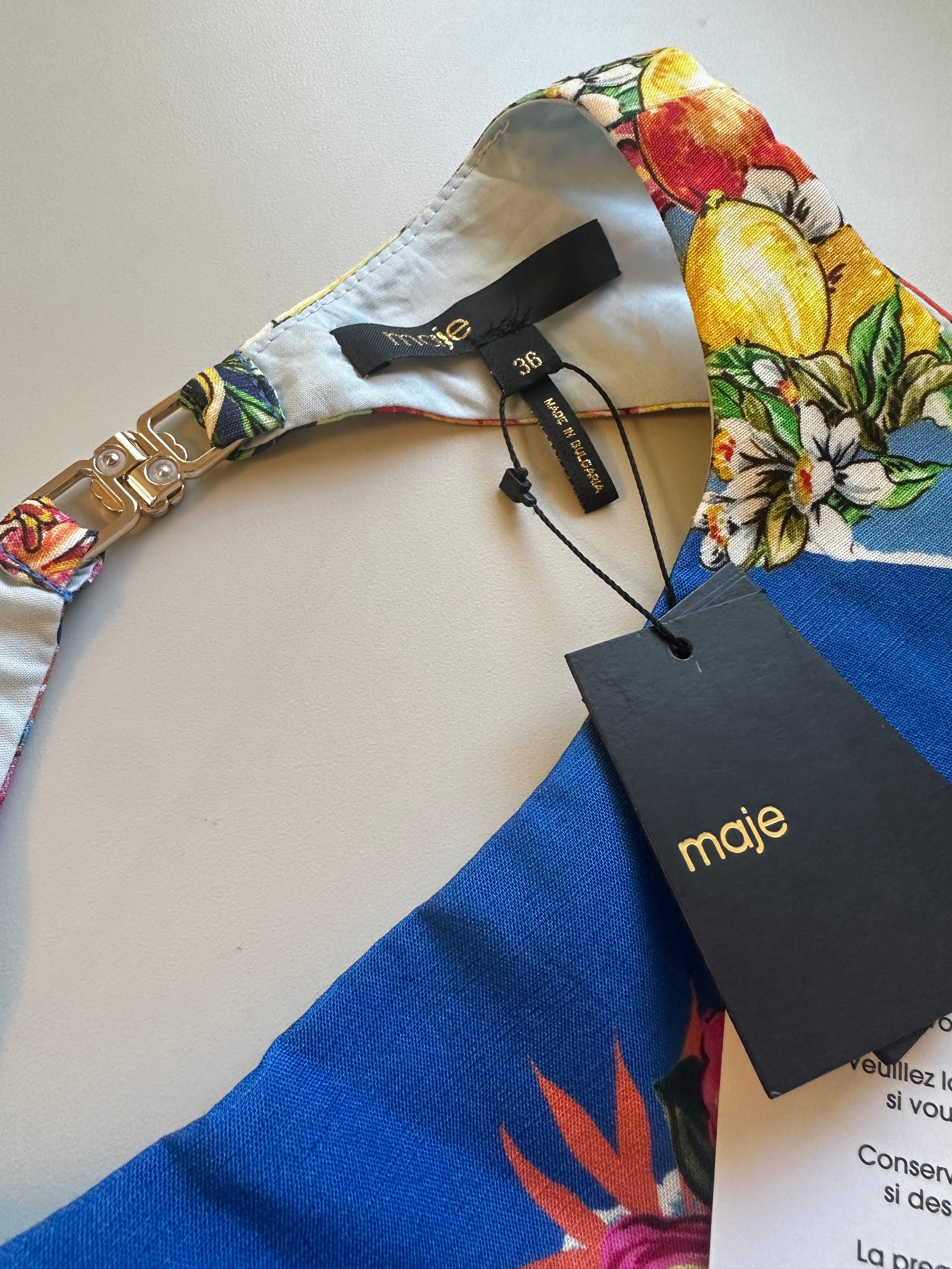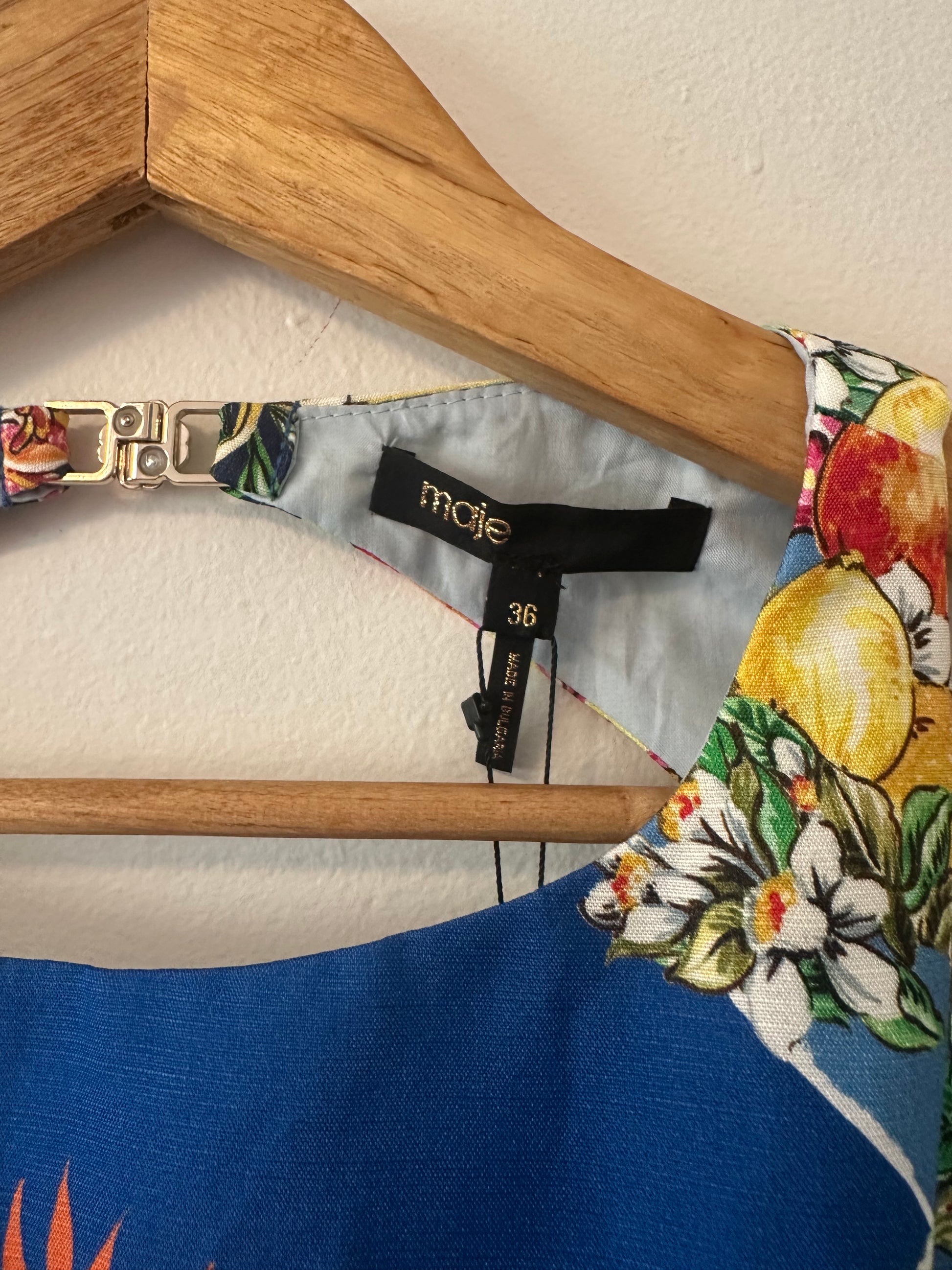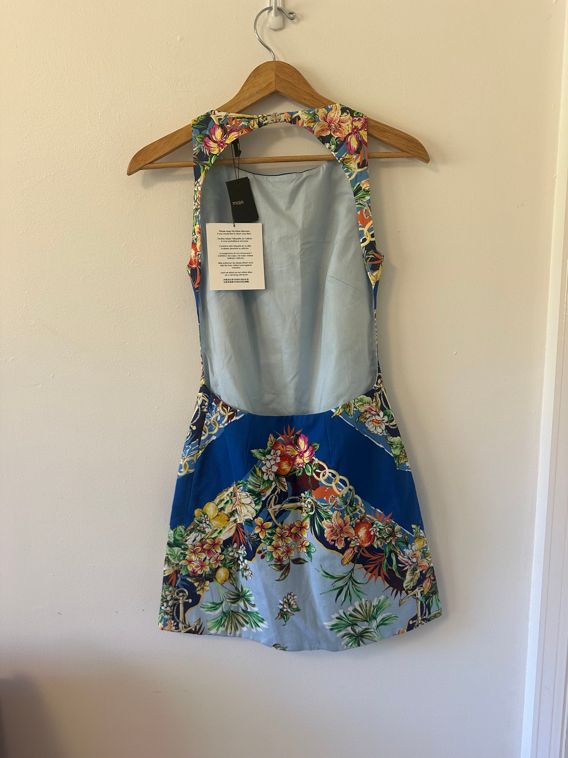 NWT Maje Floral Blue Open Back Sleeveless Dress | Size EU 36