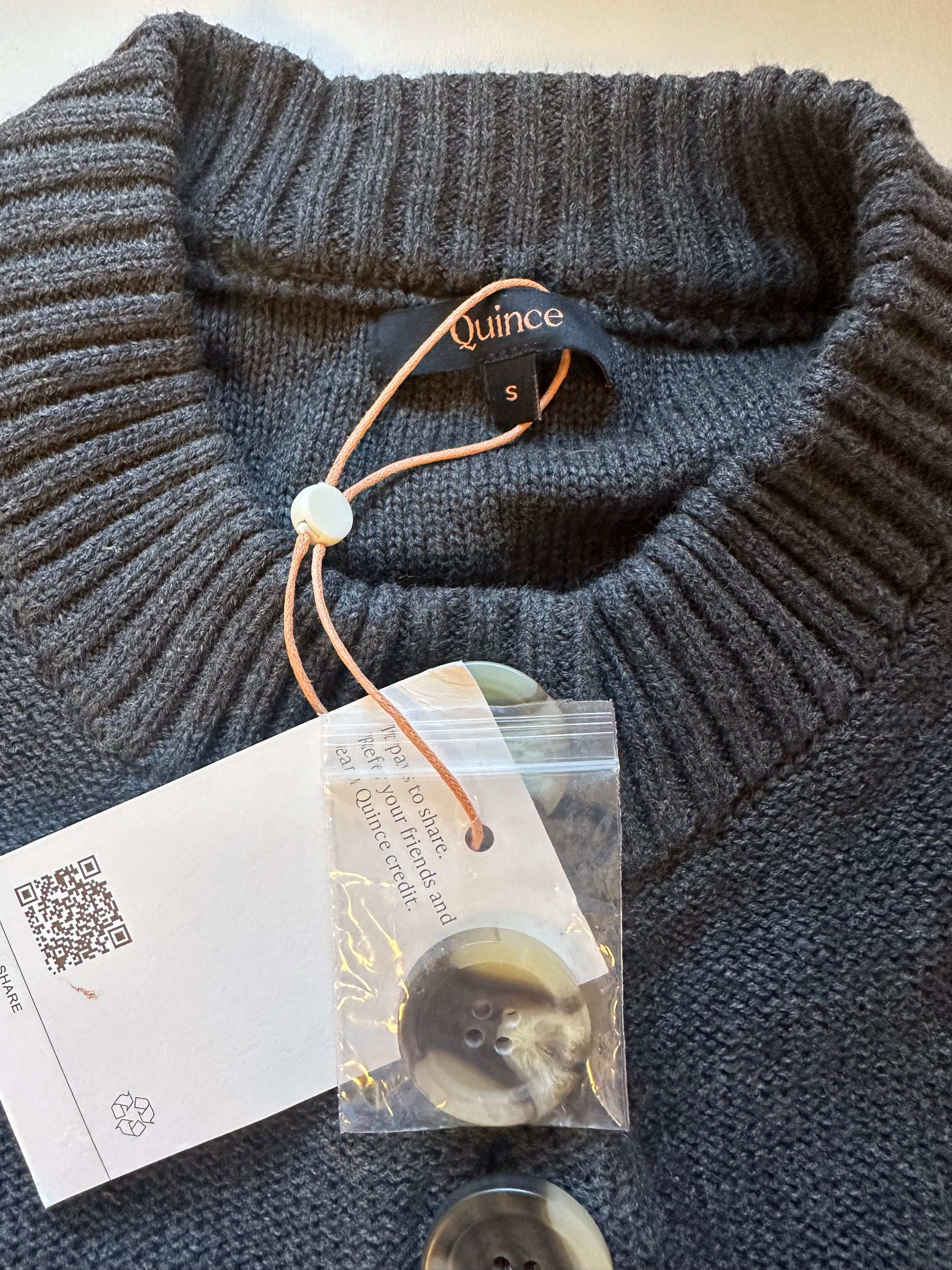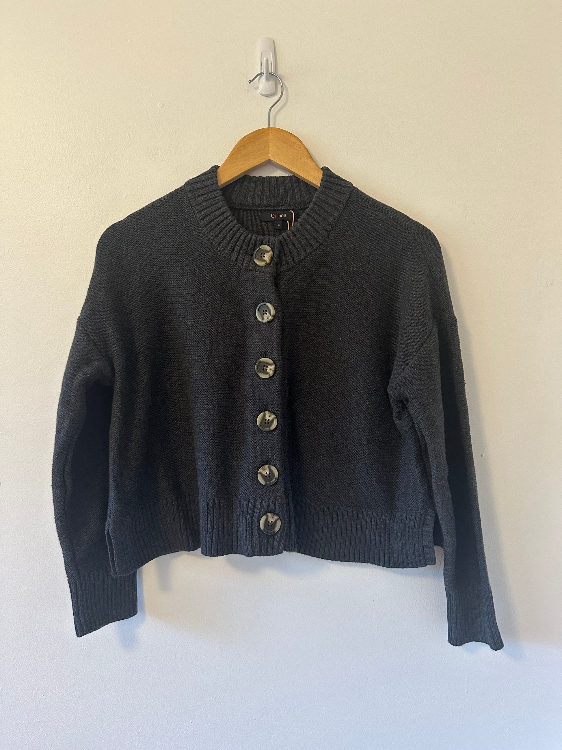 NWT Quince 100% Organic Cotton Cropped Cardigan in Charcoal Gray | Size Small