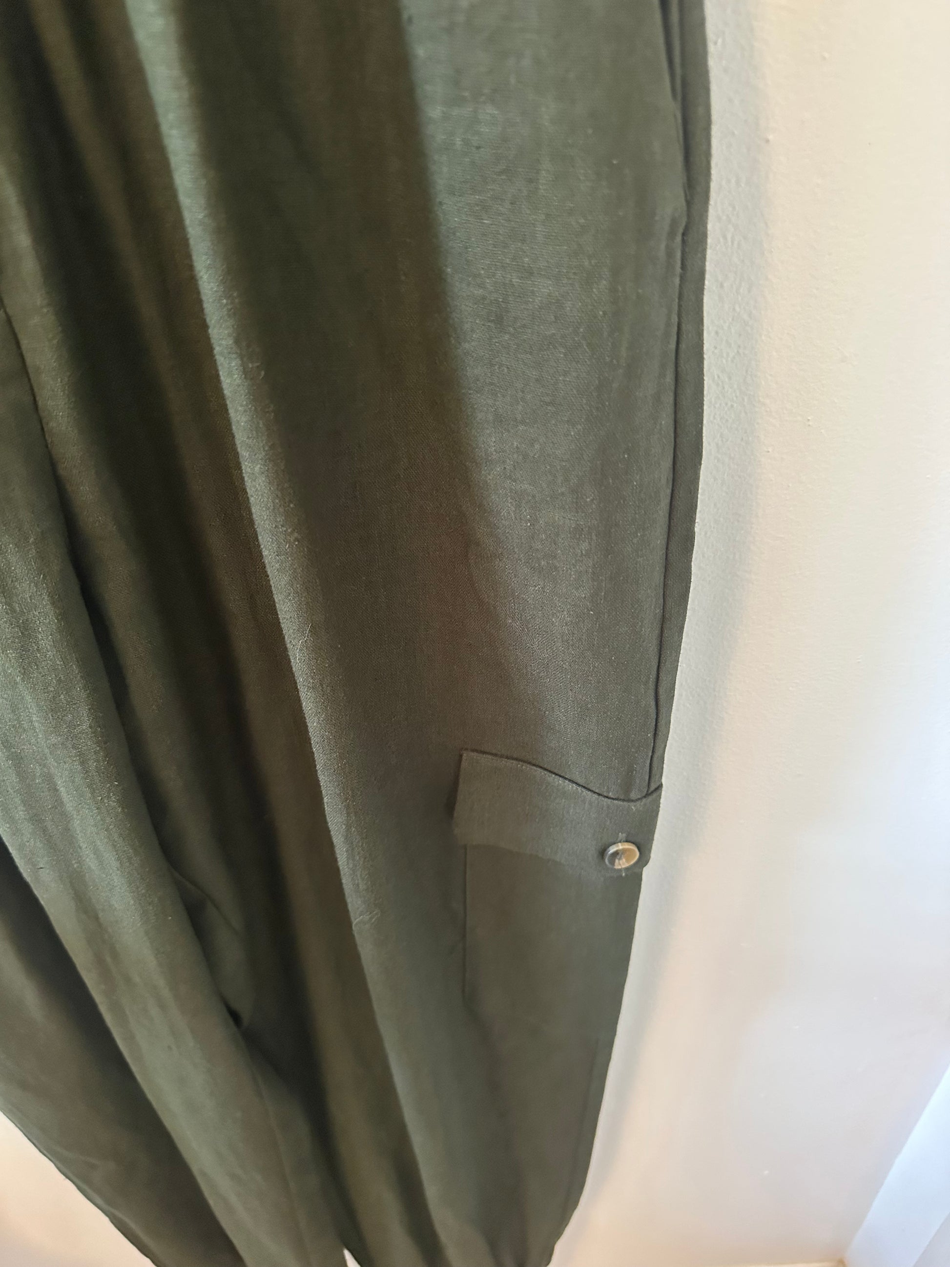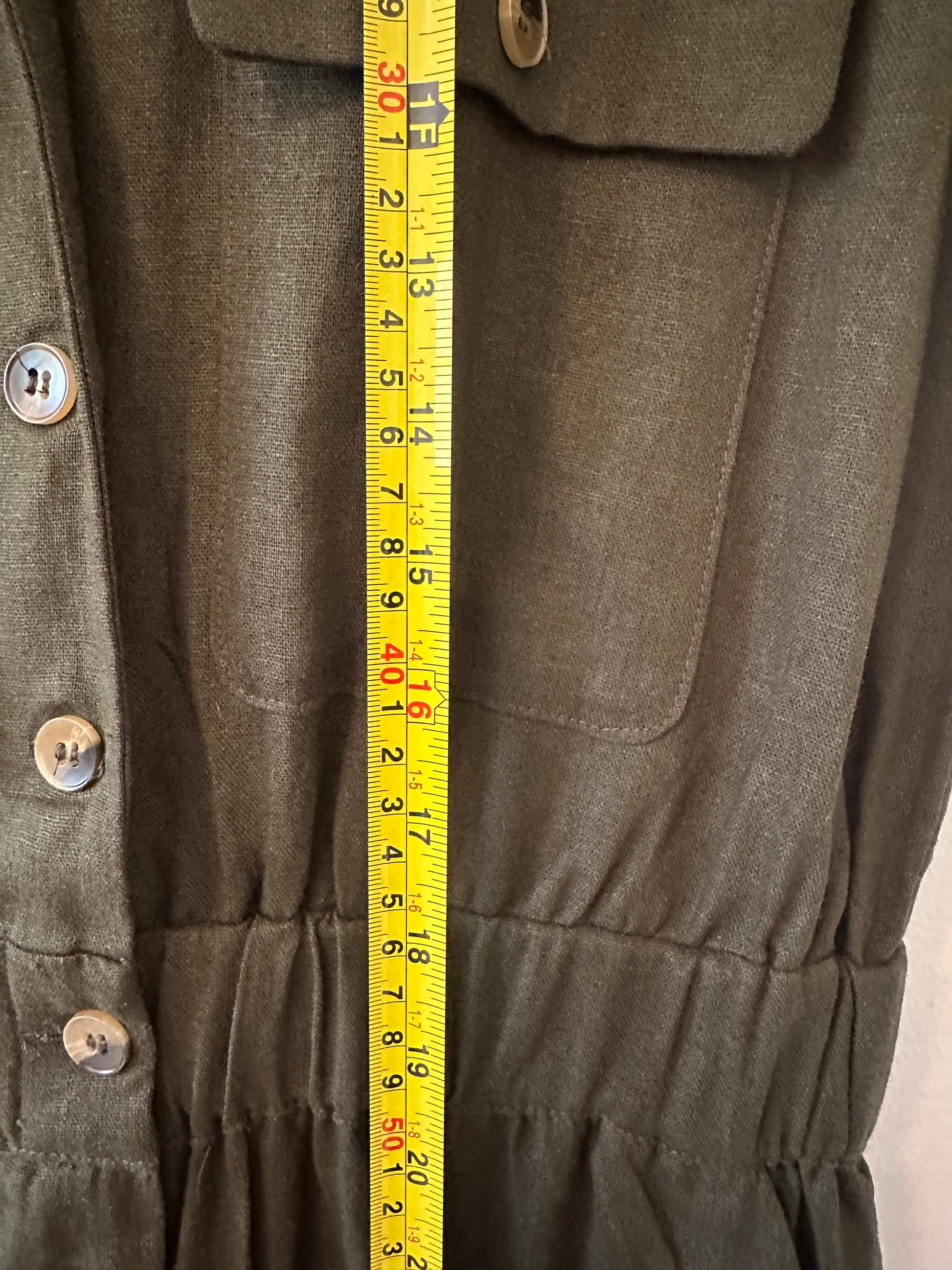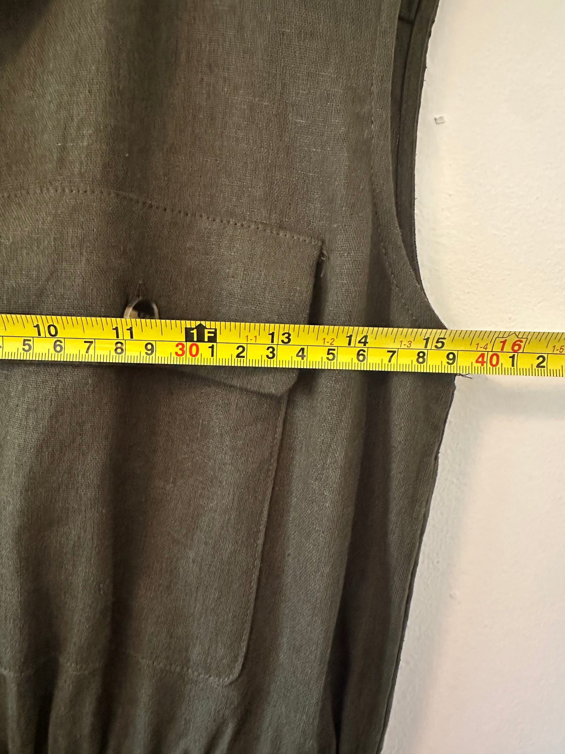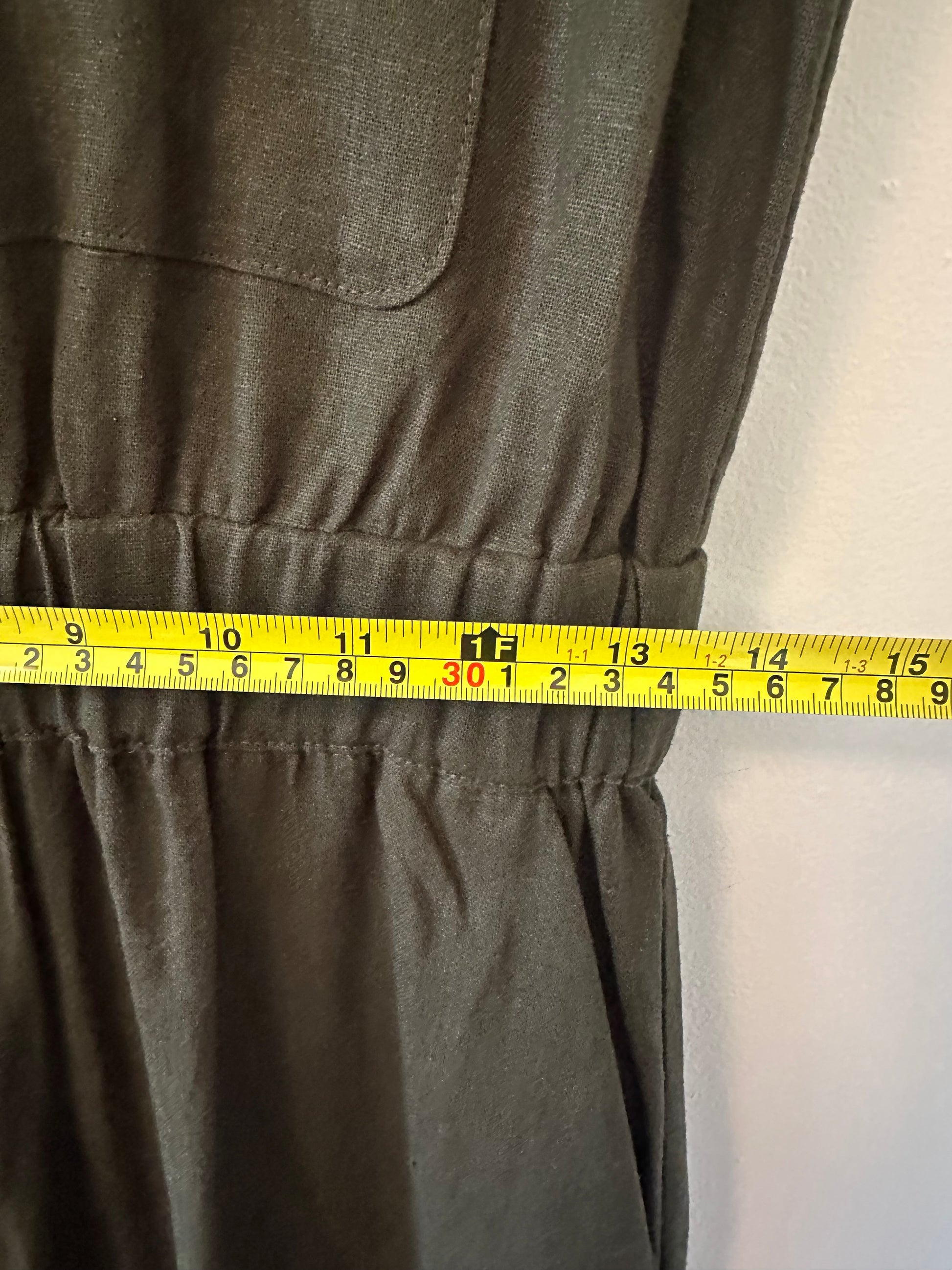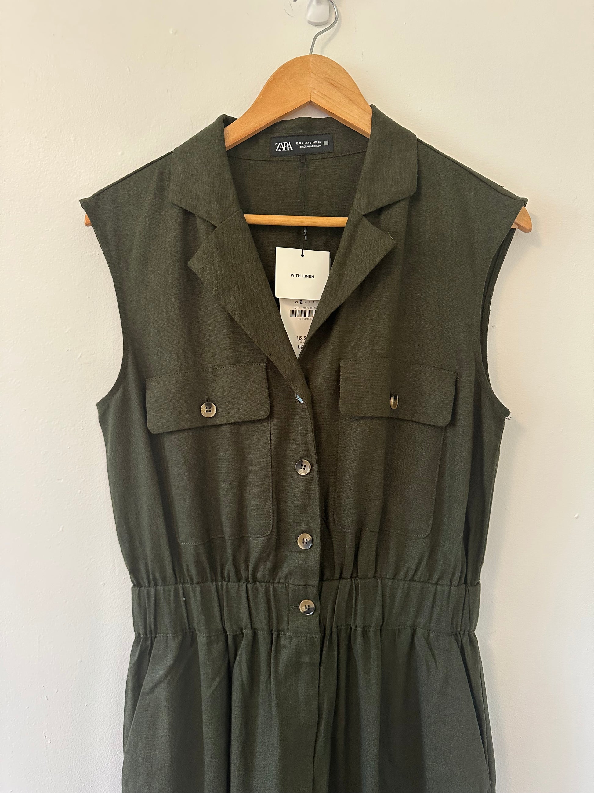 NWT Zara Olive Green Sleeveless Linen Jumpsuit Size Small