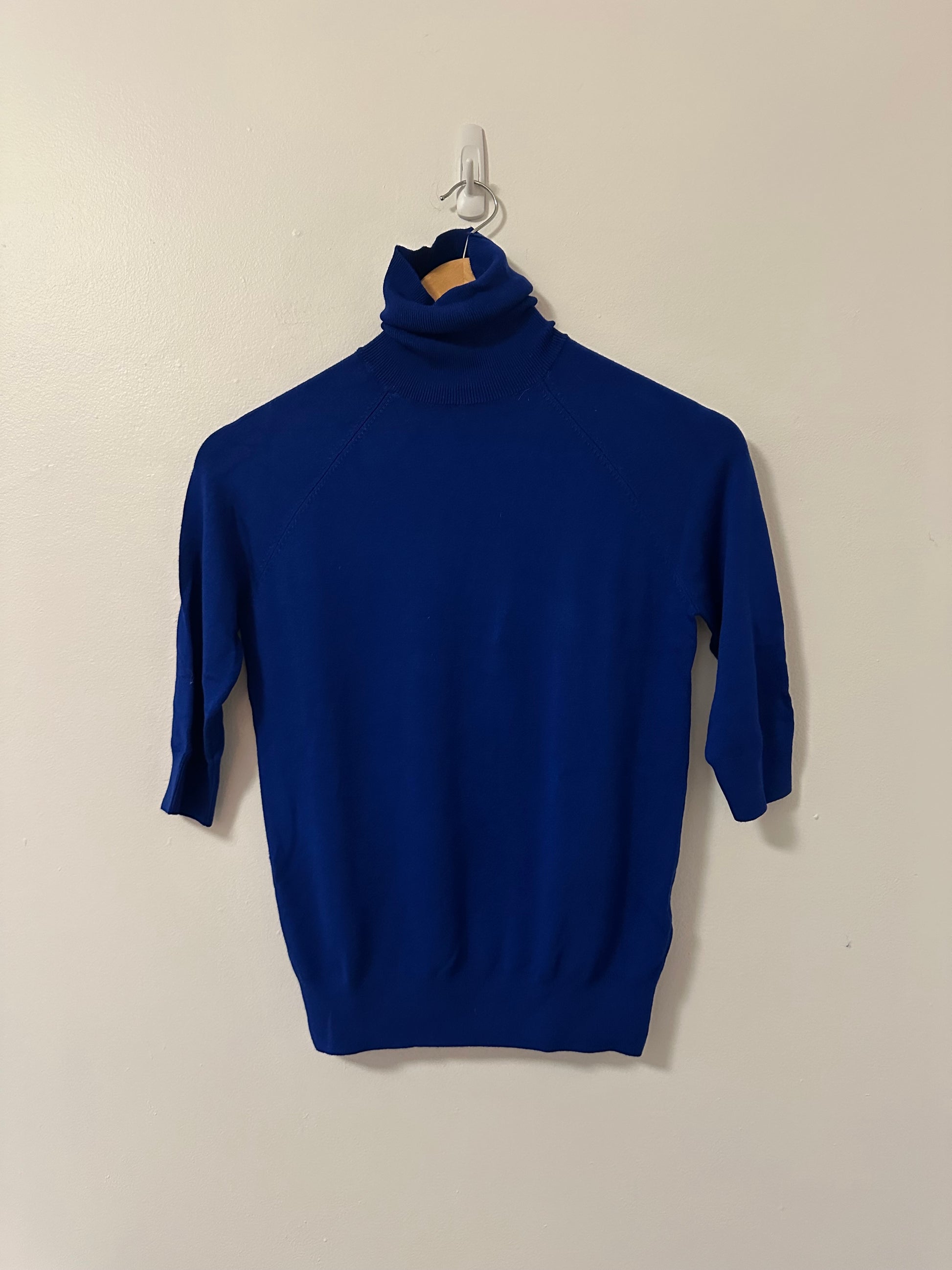 NWT Zara Royal Blue Turtleneck Lightweight Short Sleeve Sweater - Size Small