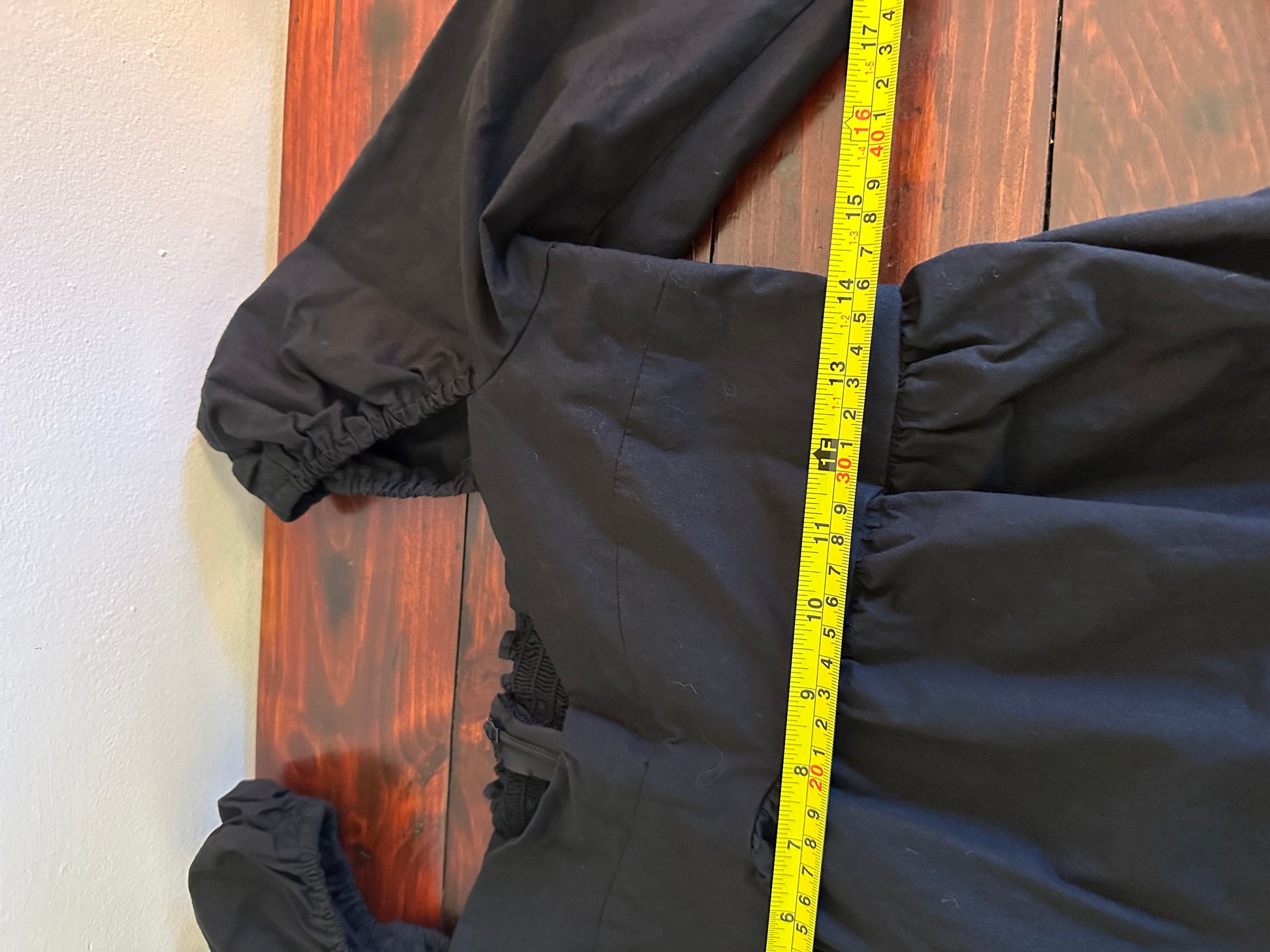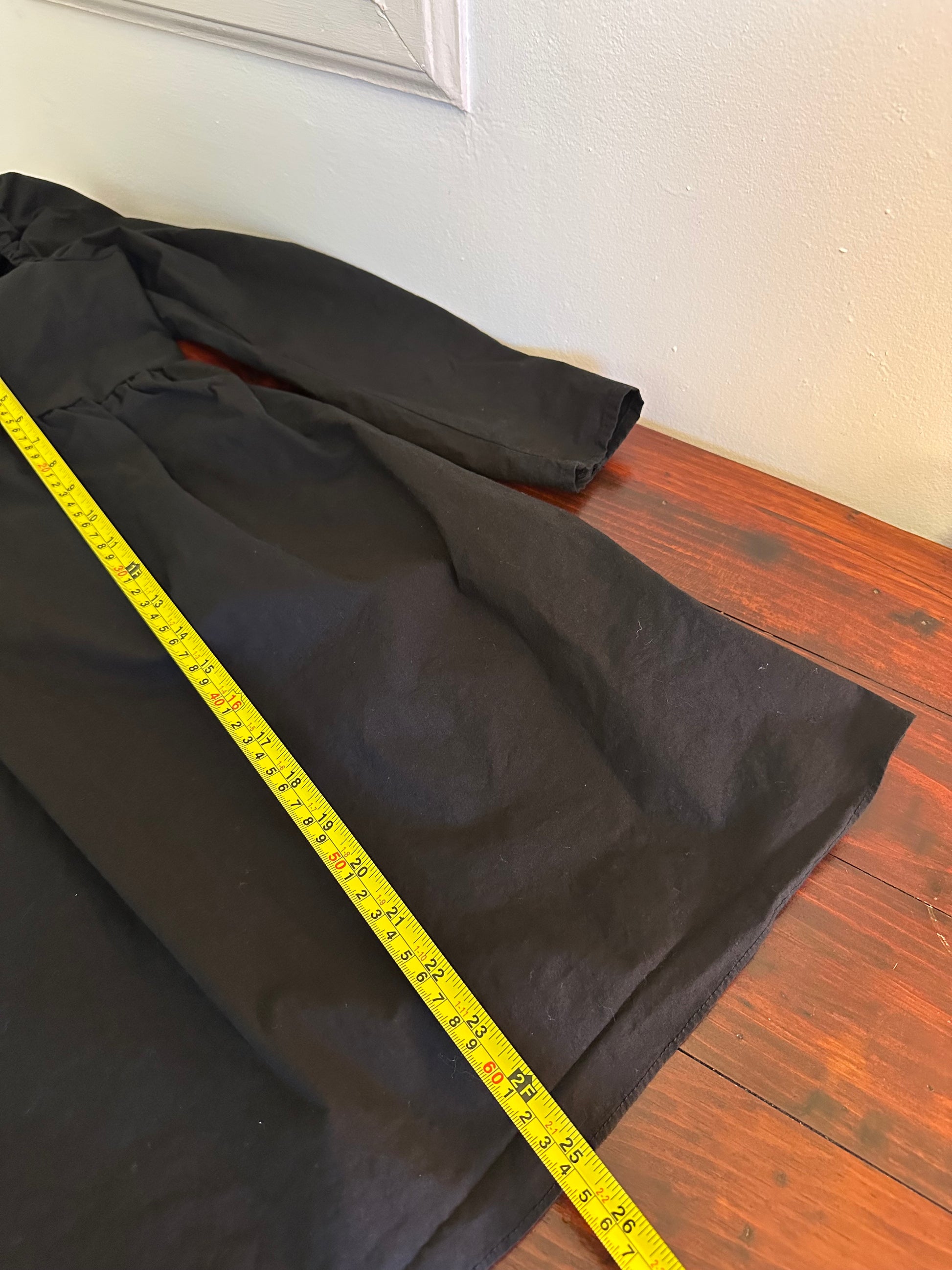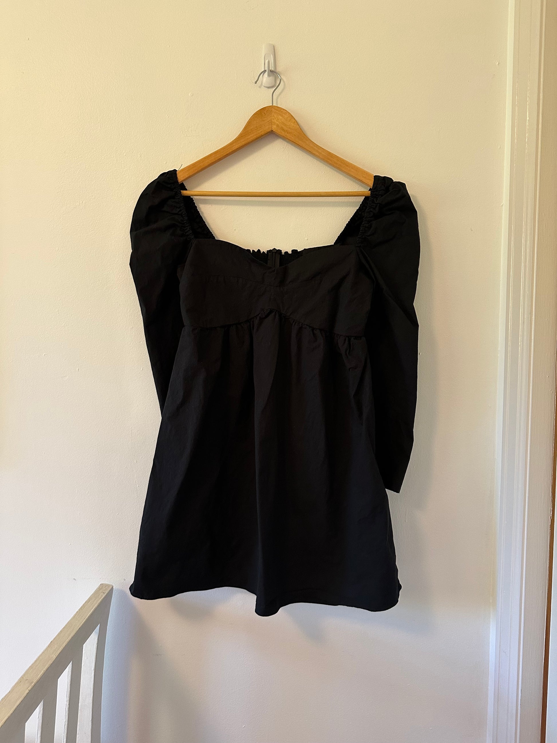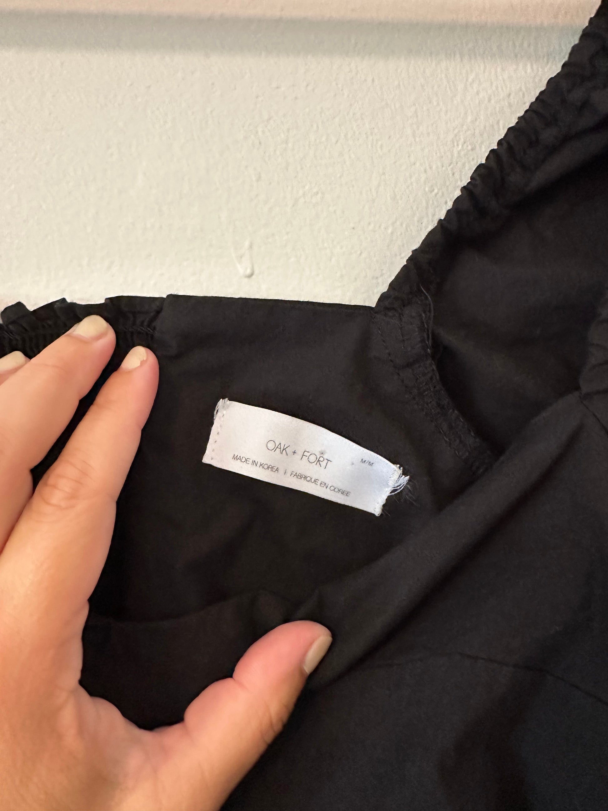 OAK + FORT - Black Sweetheart Puff Sleeve Mini Dress in Cotton Poplin | Size Medium