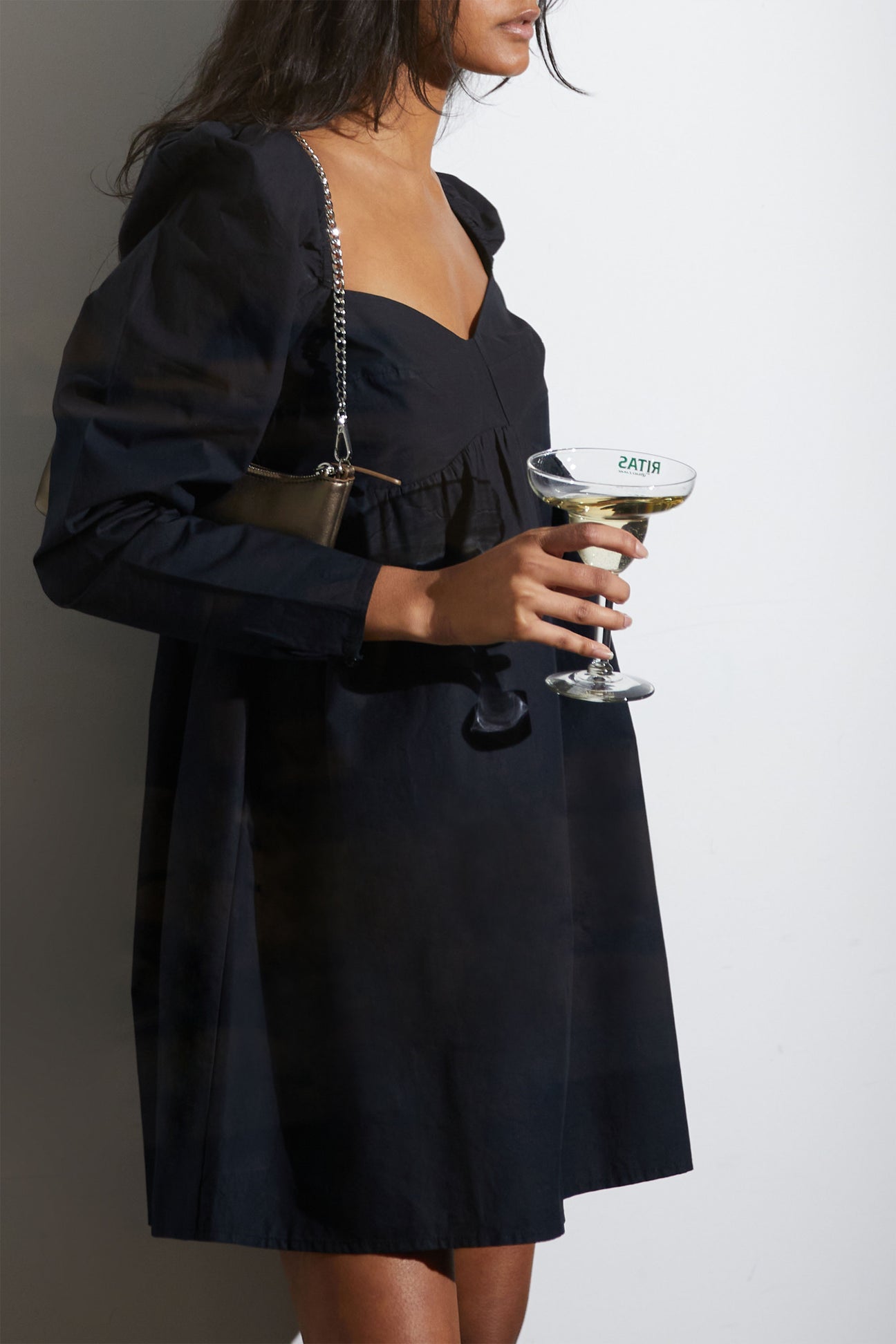 This sweetheart puff sleeve mini dress is made from a midweight cotton poplin in a relaxed silhouette. It has elasticated shoulders, a smocked back and a gathered, empire waist. Wear yours with platform heels and your favourite mini bag.