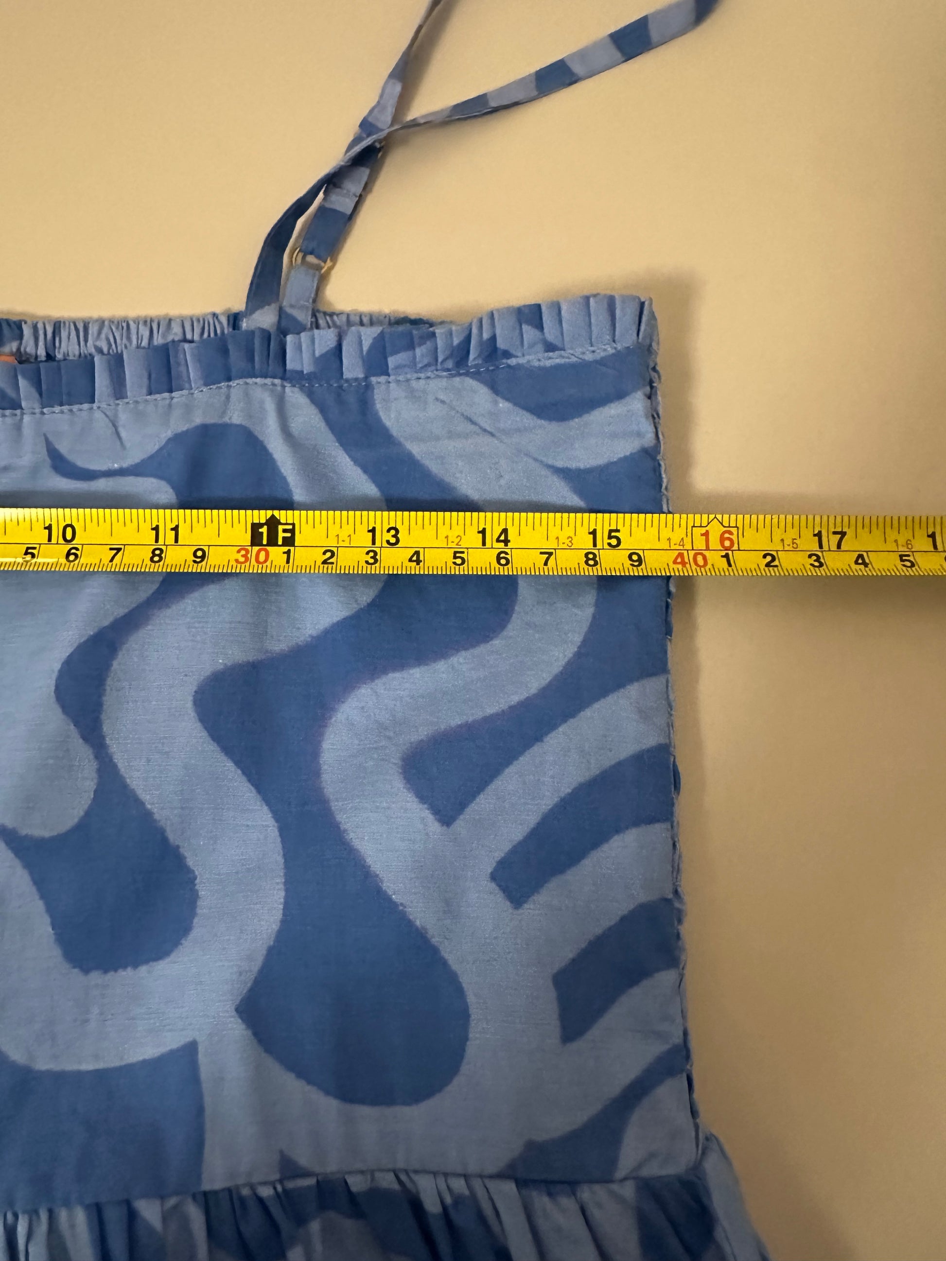 Oliphant Ashbury Smocked Back Cotton Maxi Dress in Blue | Size Medium
