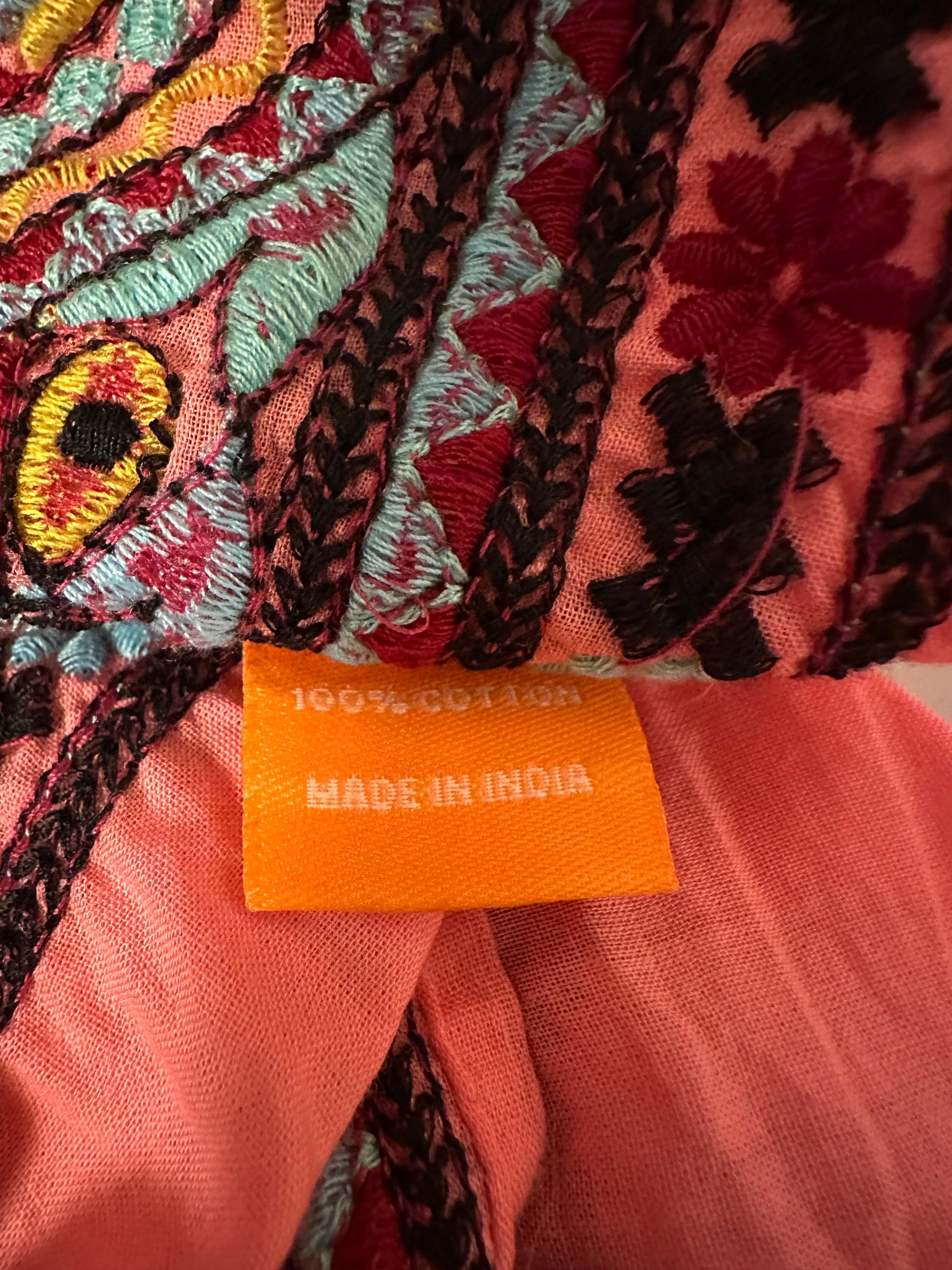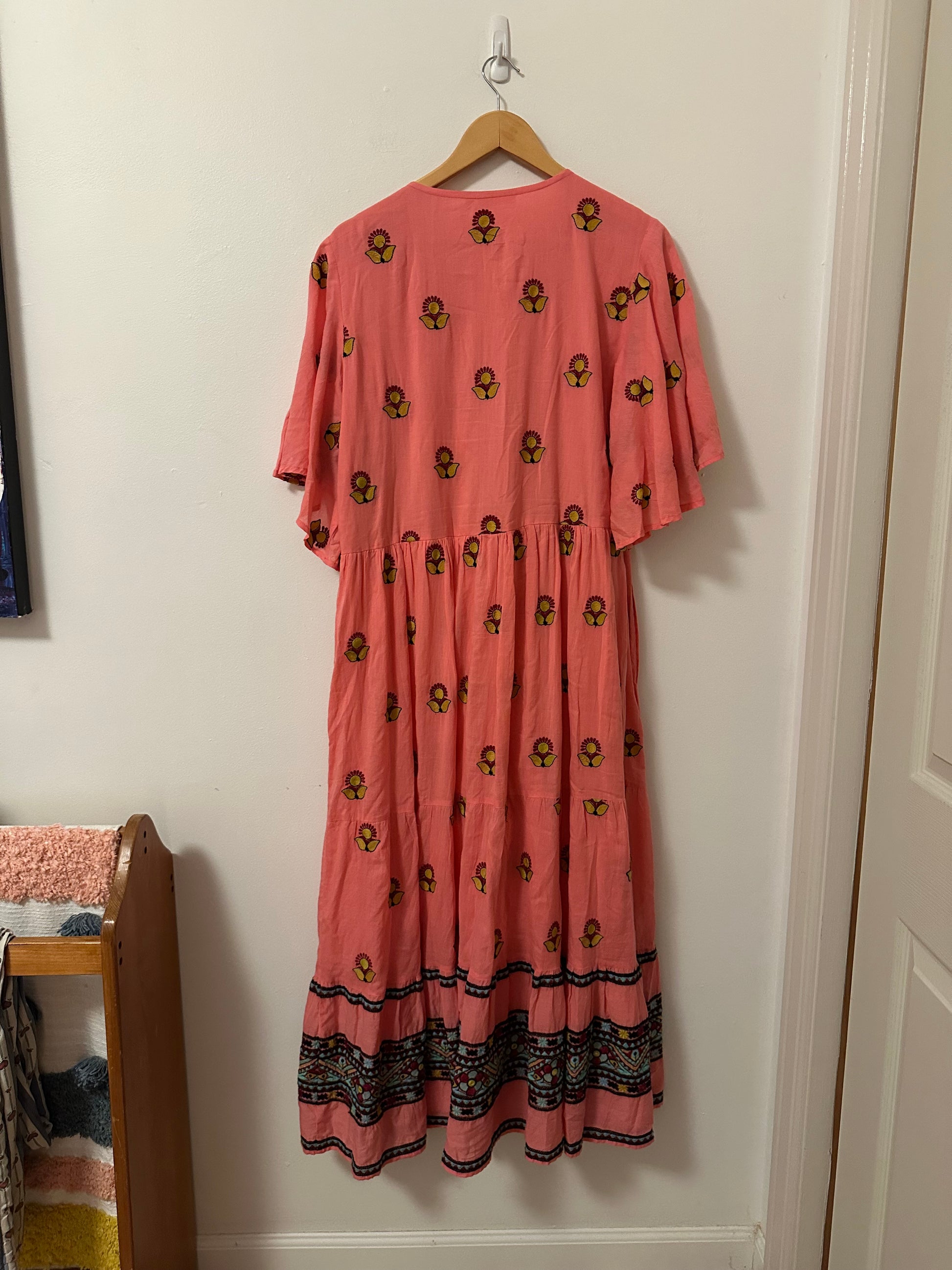Oliphant Flirty V-Neck Embroidered Maxi Dress in Santa Fe Pink | Size XL
