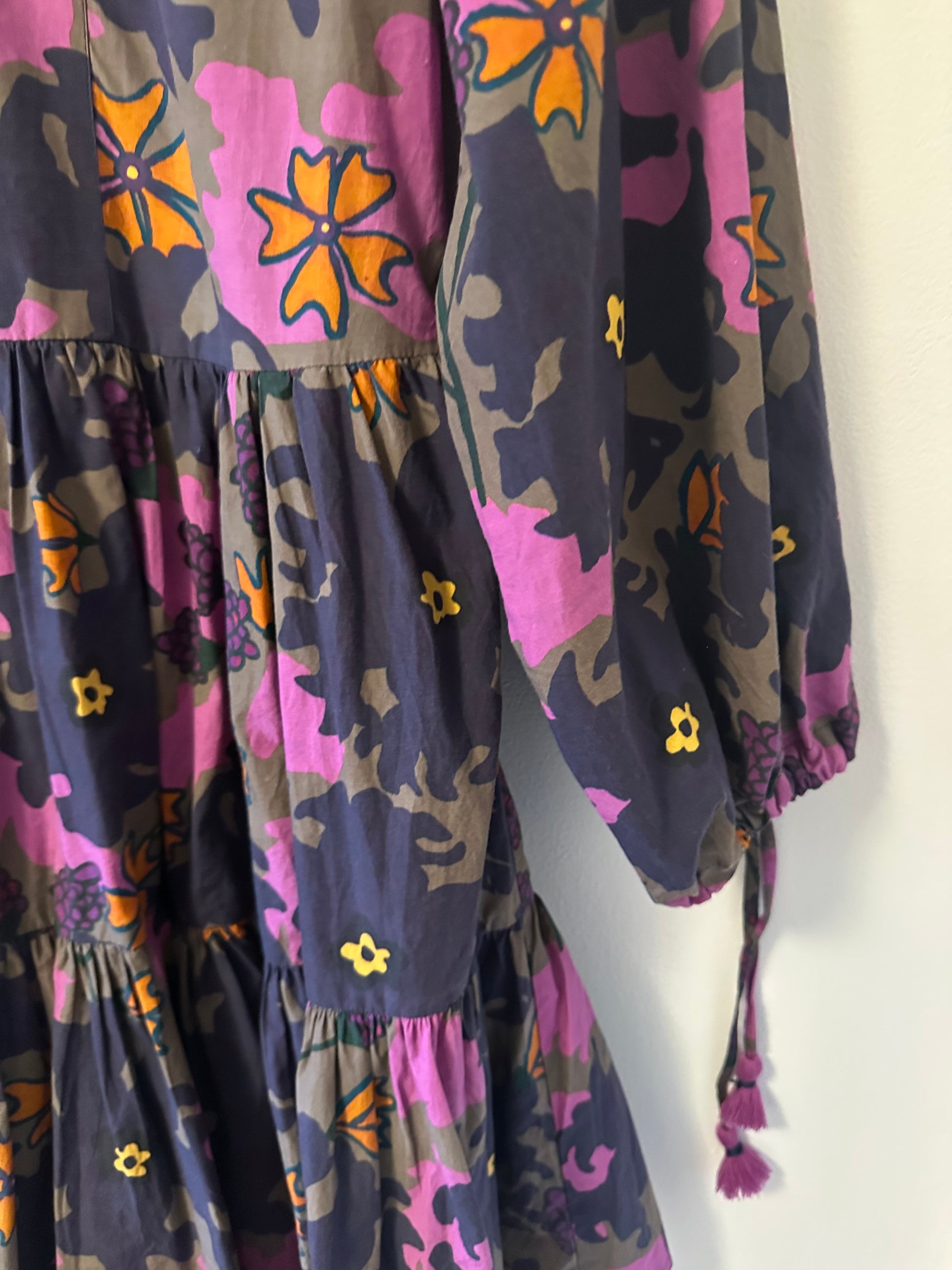 Oliphant Suzani Long Sleeve Purple Floral Yoke Mini Dress | Size Small