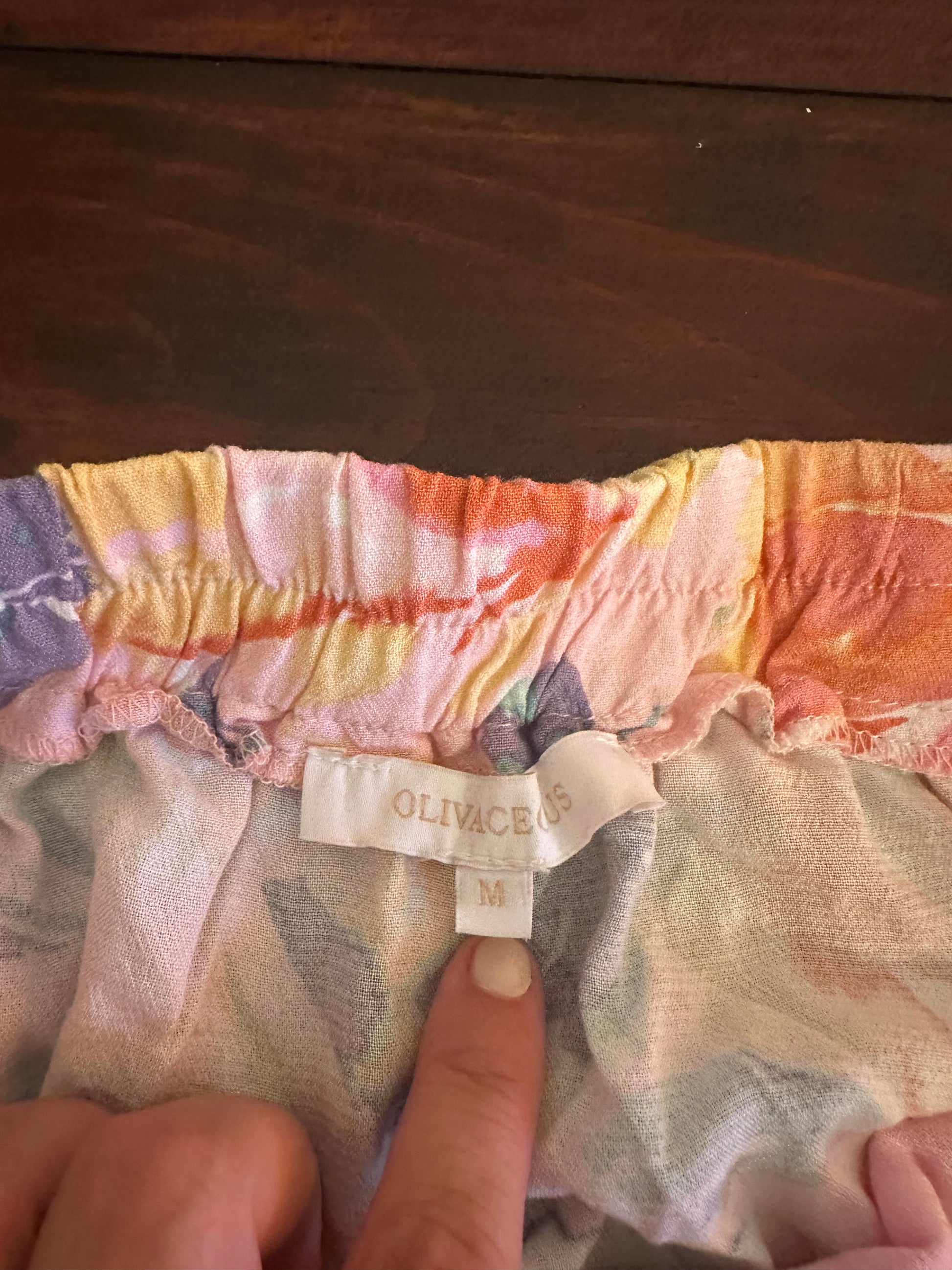 Olivaceous Pink Multicolor Floral Ruffle Mini Skirt - Size Medium