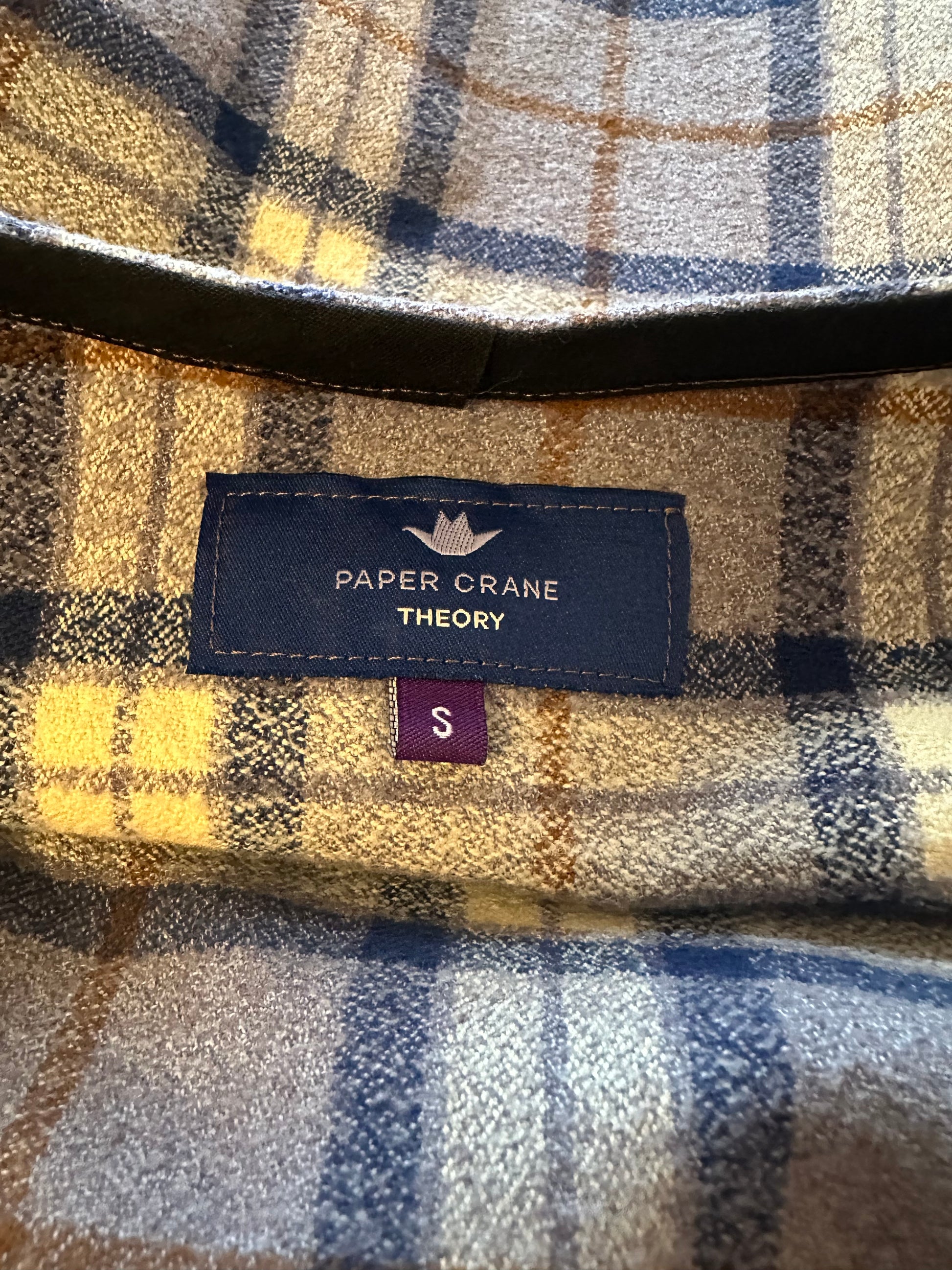 Paper Crane Plaid Boxy Cropped Long Sleeve Top with Solid Brown Sleeves | Small