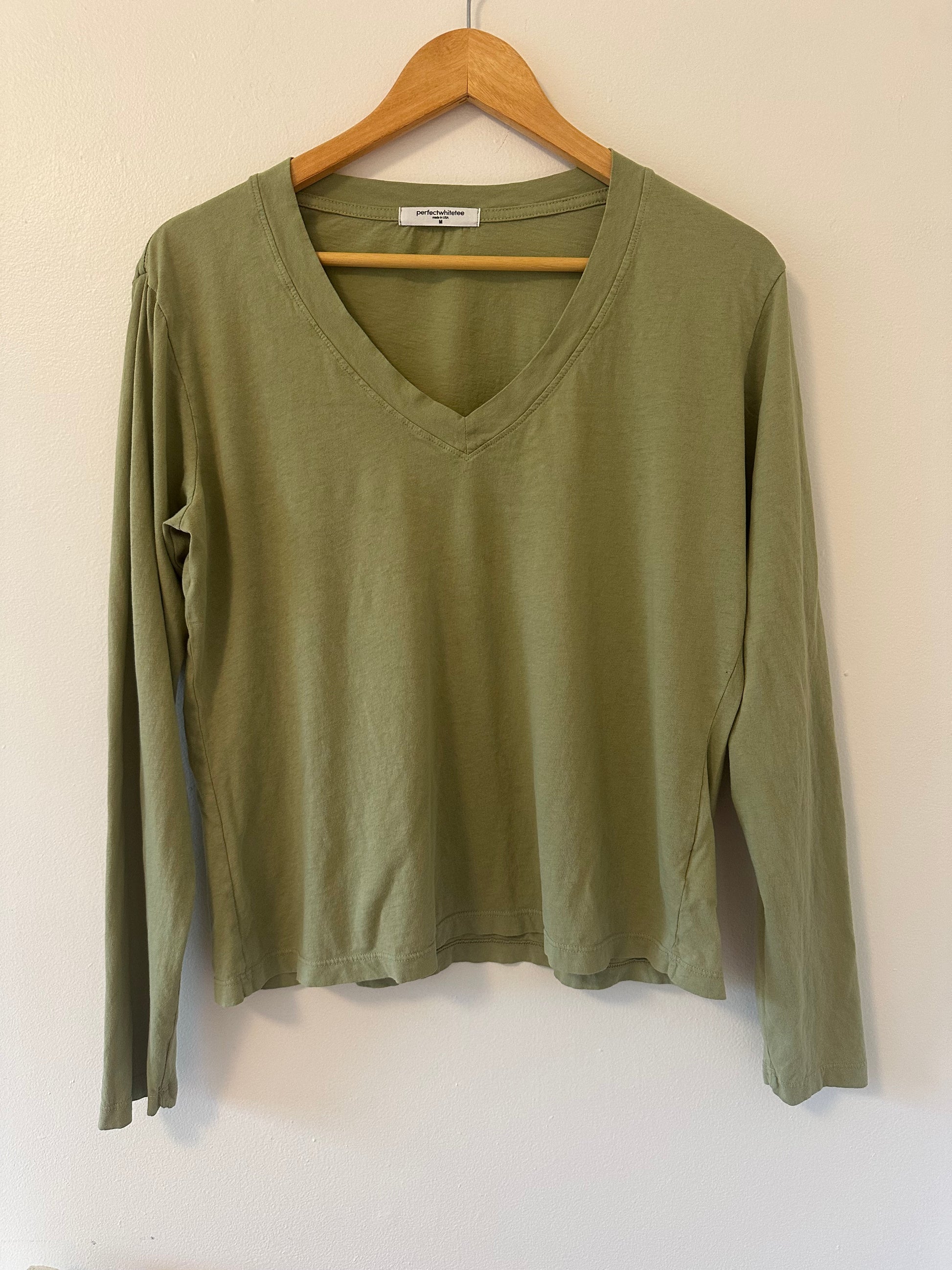 Sage green long sleeve V-neck T-shirt