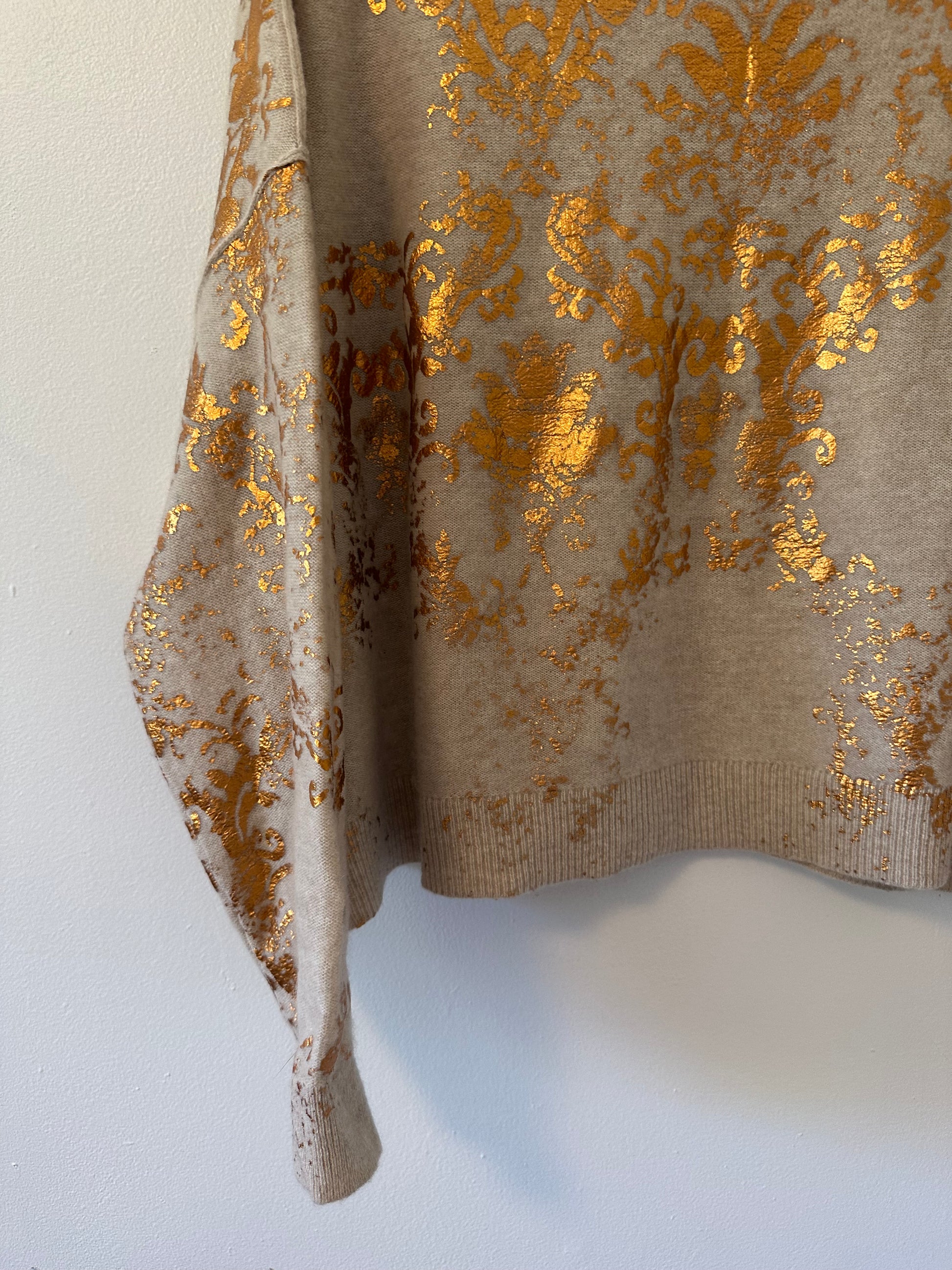 Pilcro The Alani Cashmere Mock Neck Sweater with Gold Print | Size Medium