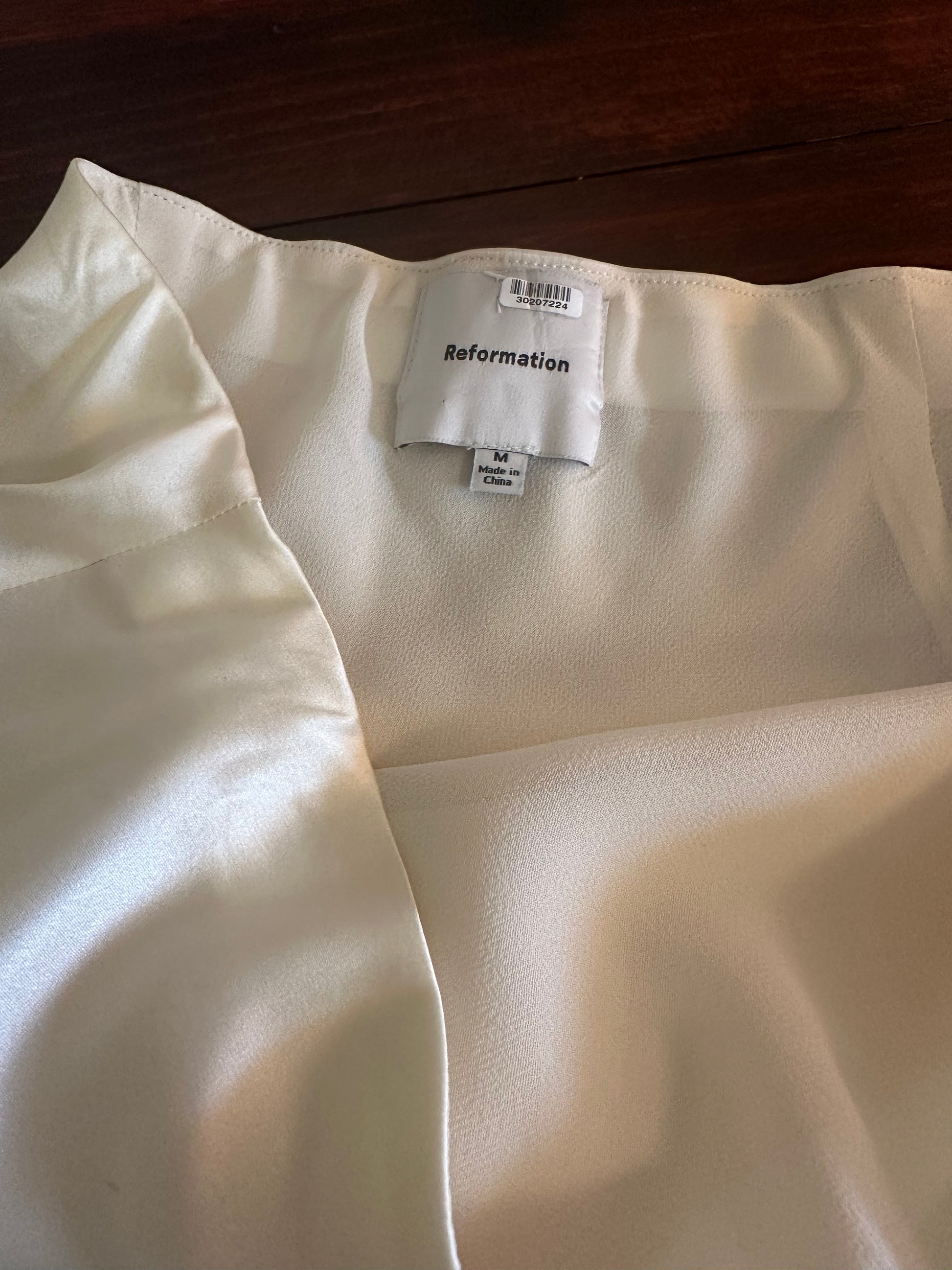 Gorgeous floaty maxi skirt in the color “sugar” from Reformation. 100% silk and fully lined, this skirt is in great condition.